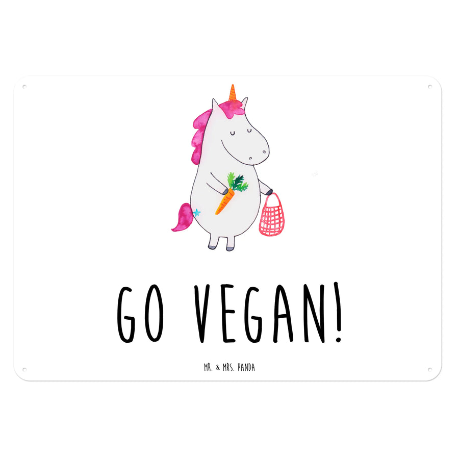 Das wunderschöne Blechschild "Einhorn Vegan" von Mr. & Mrs. Panda ist das perfekte Geschenk für all diejenigen, die eine Leidenschaft für vegane Ernährung und zauberhafte Einhörner teilen.