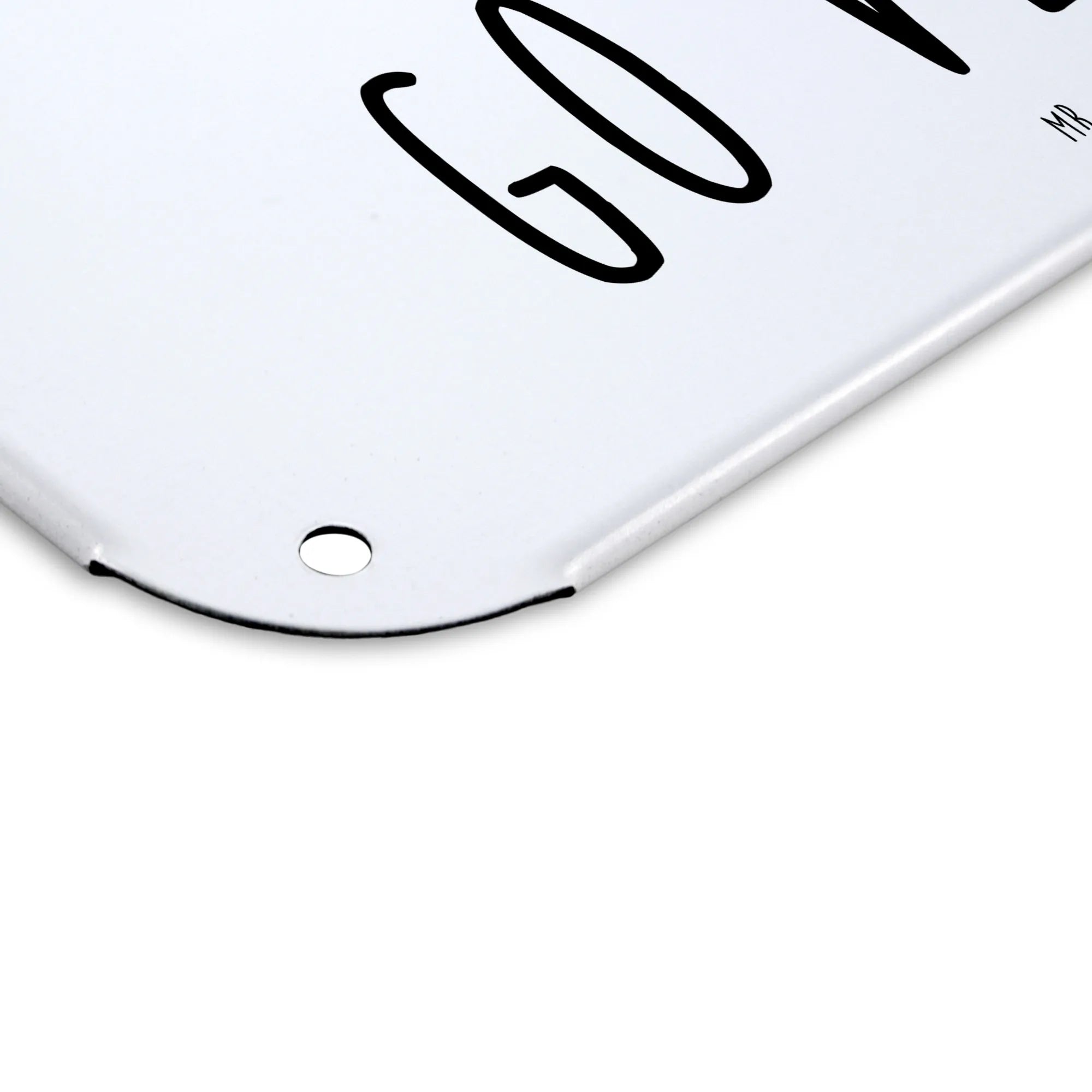 Das perfekte Stück für deine Wohnung: unser hochwertiges Blechschild von Mr. & Mrs. Panda! Mit den eindrucksvollen Maßen 146 mm x 148 mm x 105 mm, strahlt dieses Schild eine besondere Eleganz aus. Das edle Stahlblech ist doppelt beschichtet, sodass es langlebig und resistent gegen Verfärbungen bleibt. Der kreative Druck mit süßen Motiven und griffigen Sprüchen bringt Freude in jeden Raum und eignet sich hervorragend als Geschenkoption. Die seidenmatte Oberfläche wertet nicht nur das Schild selbst auf, sondern macht es auch zu einem zeitlosen Accessoire. Ob an der Wand oder der Tür - die Anbringung ist dank der 4 bereits vorgebohrten Löcher besonders einfach. Kanten und Ecken sind abgerundet und bilden somit ein sicheres Design für dein Zuhause. Dieses Blechschild passt perfekt in jeden Innenraum und lässt sich mühelos mit einem feuchten Tuch reinigen. Verfügbar in verschiedenen Größen, um sich harmonisch in dein Ambiente einzufügen.