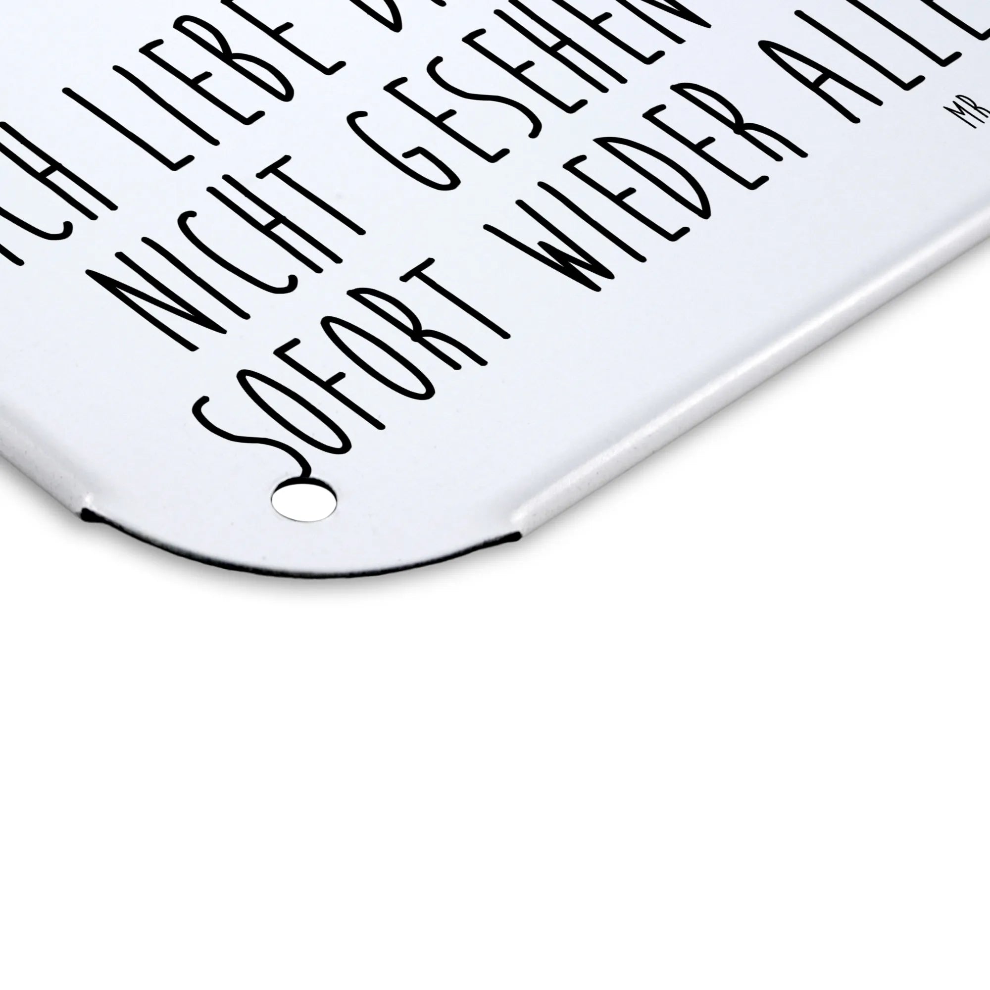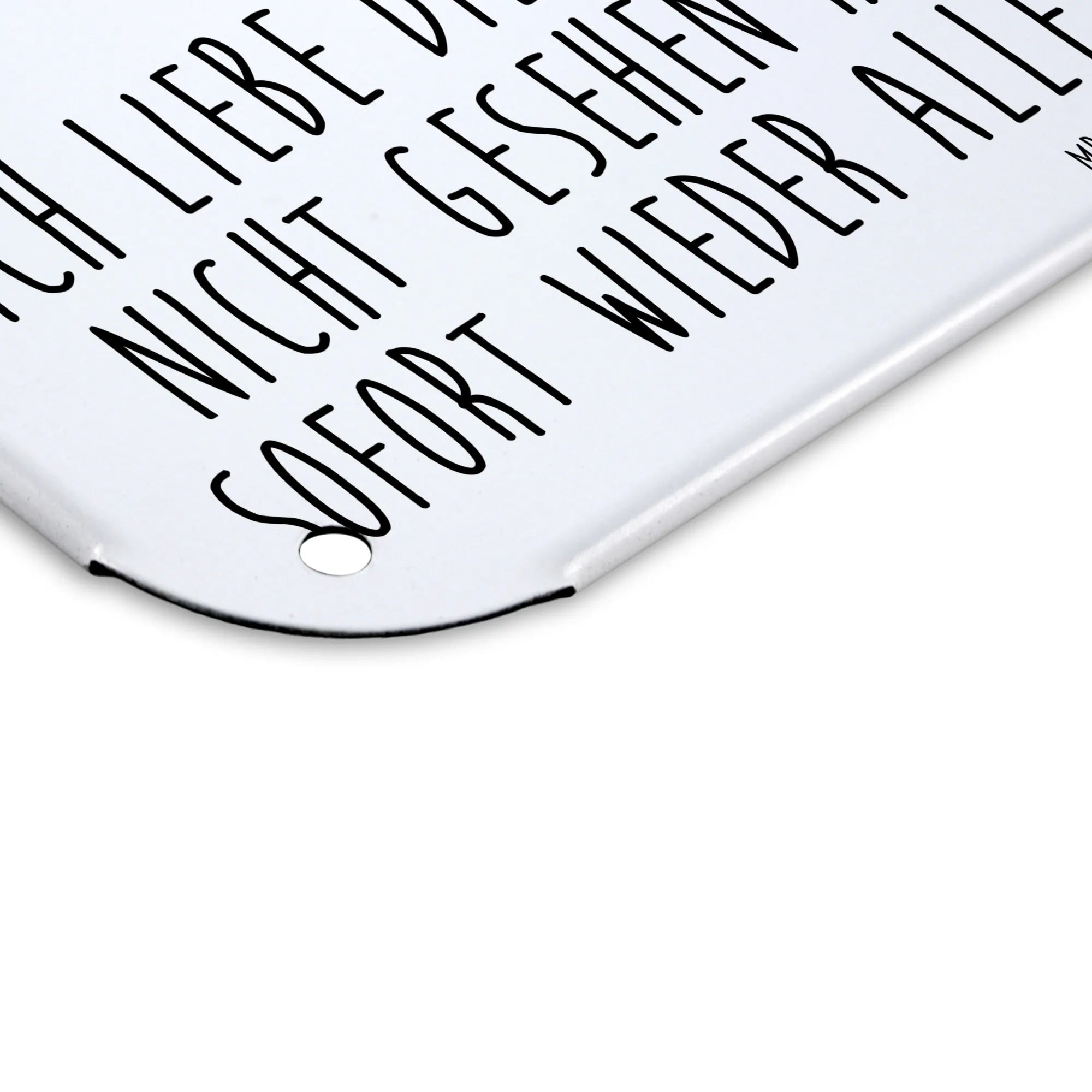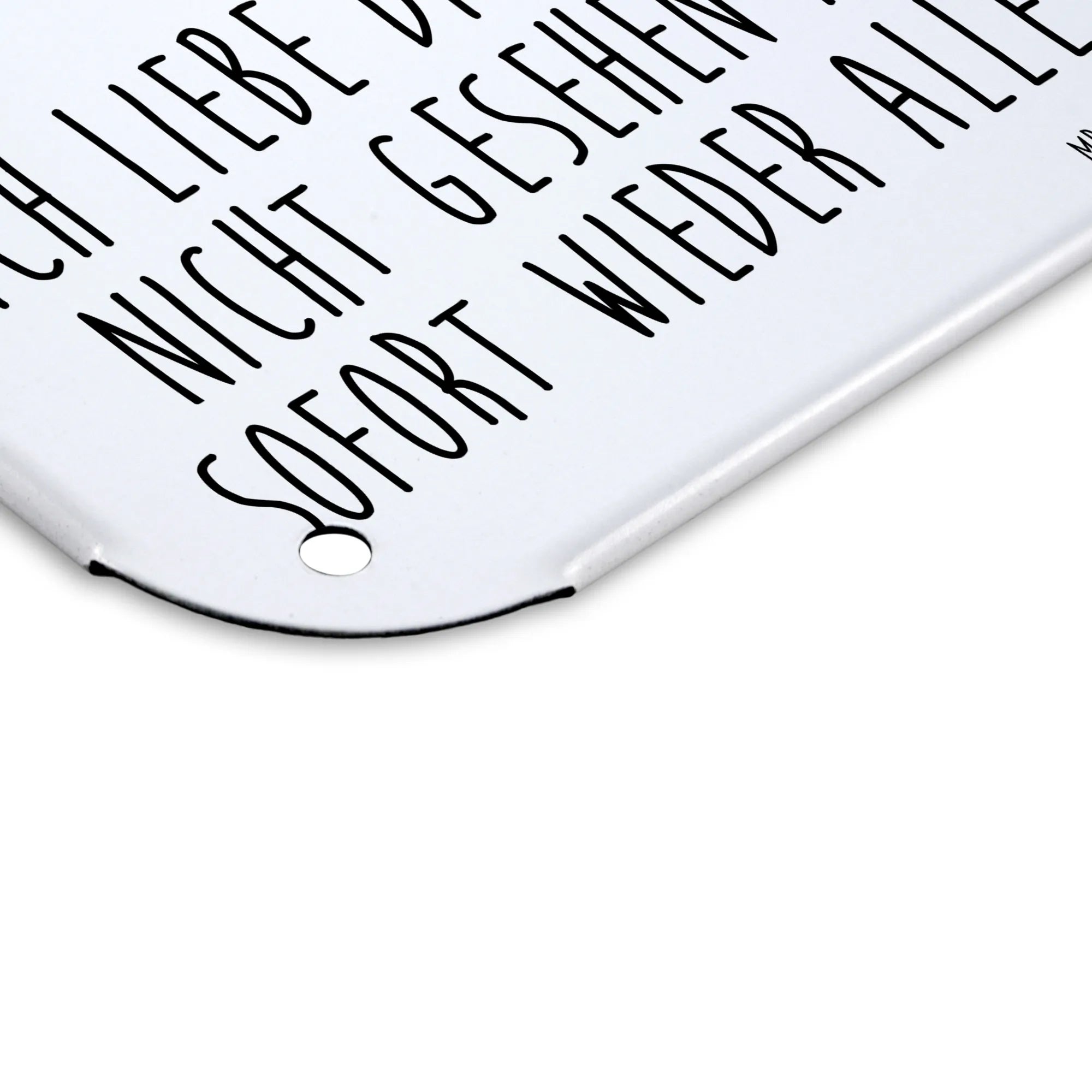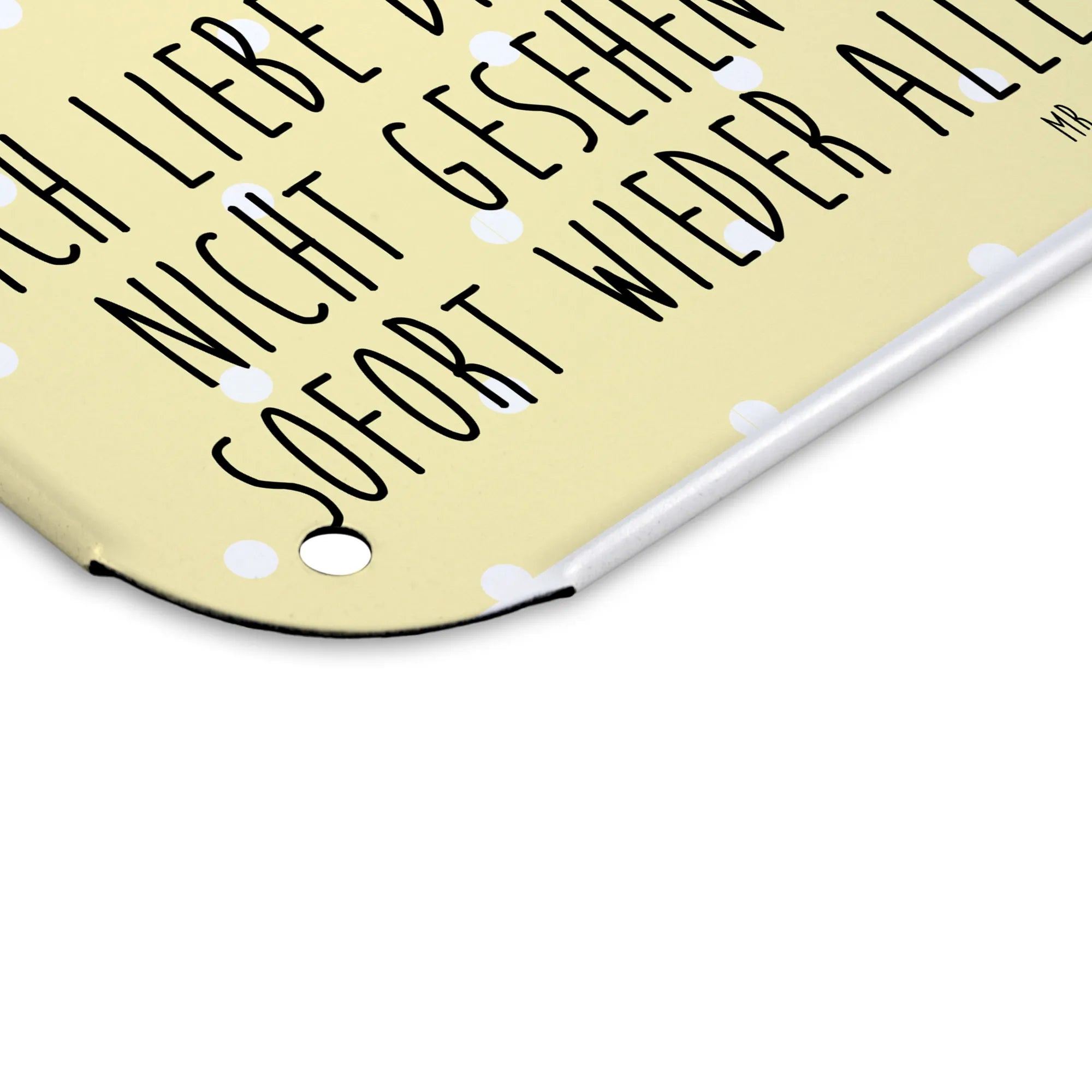 Verleihen Sie Ihrem Zuhause einen Hauch von Stil mit unserem Blechschild von Mr. & Mrs. Panda! Diese edle Kreation misst 146 mm x 148 mm x 105 mm und ist aus hochwertigem Stahlblech gefertigt, das nicht nur strapazierfähig, sondern auch elegant ist. Das Schild ist mit ansprechenden Sprüchen und liebevollen Motiven bedruckt, die zur positiven Stimmung beitragen. Mit seiner seidenmatten Oberfläche kommt es in jeder Umgebung bestens zur Geltung und eignet sich hervorragend als Wand- oder Türdekoration. Es ist mit 4 praktischen Bohrlöchern versehen, die die Montage ganz einfach machen. Alle Kanten sind umgefalzt und die Ecken abgerundet, sodass das Schild nicht nur schön aussieht, sondern auch sicher in Ihrem Zuhause ist. Außerdem lässt sich das Schild leicht mit einem feuchten Tuch reinigen und ist nur für den Innenbereich gedacht. Dieses Blechschild ist in verschiedenen Größen erhältlich und ist die ideale Geschenkidee für jeden Anlass.