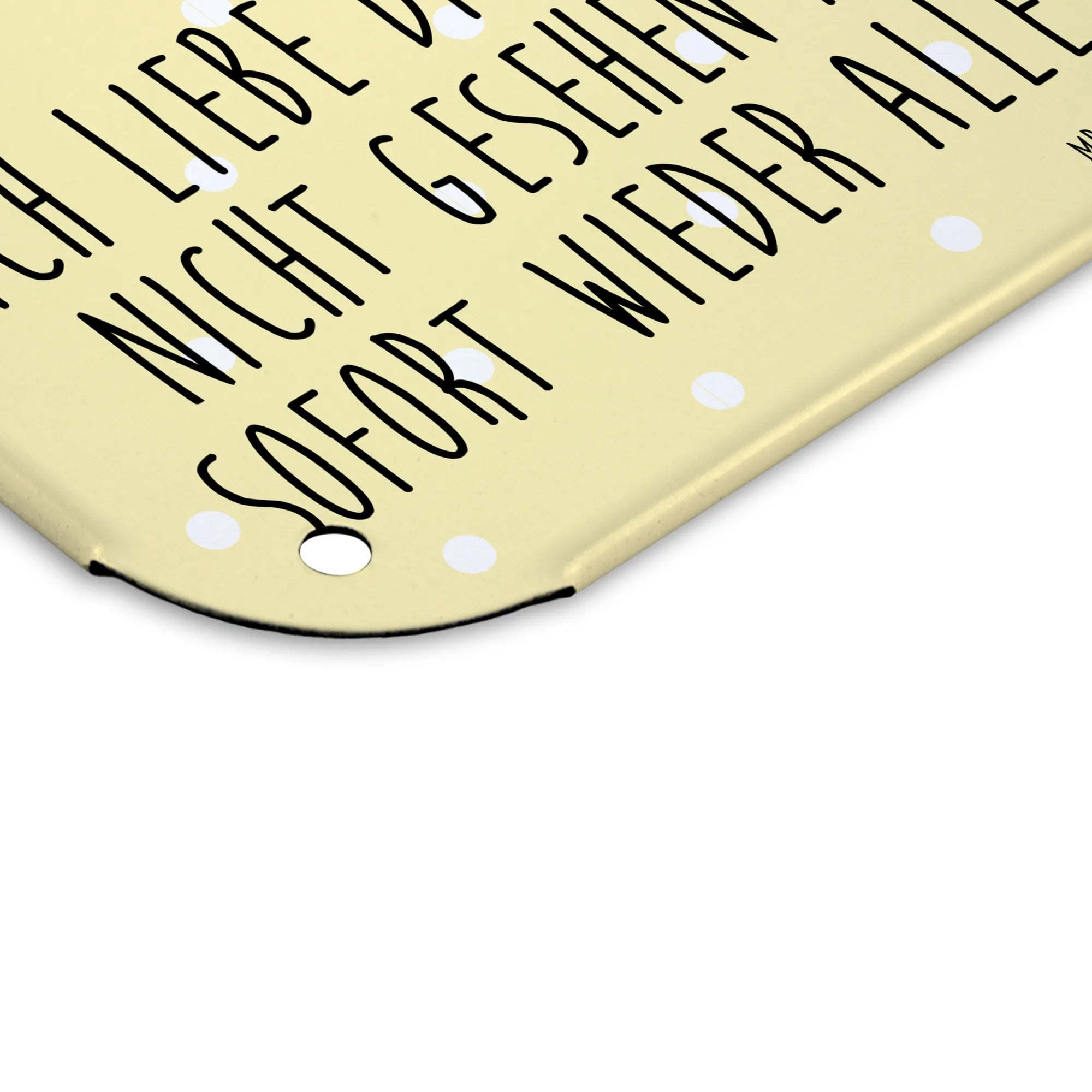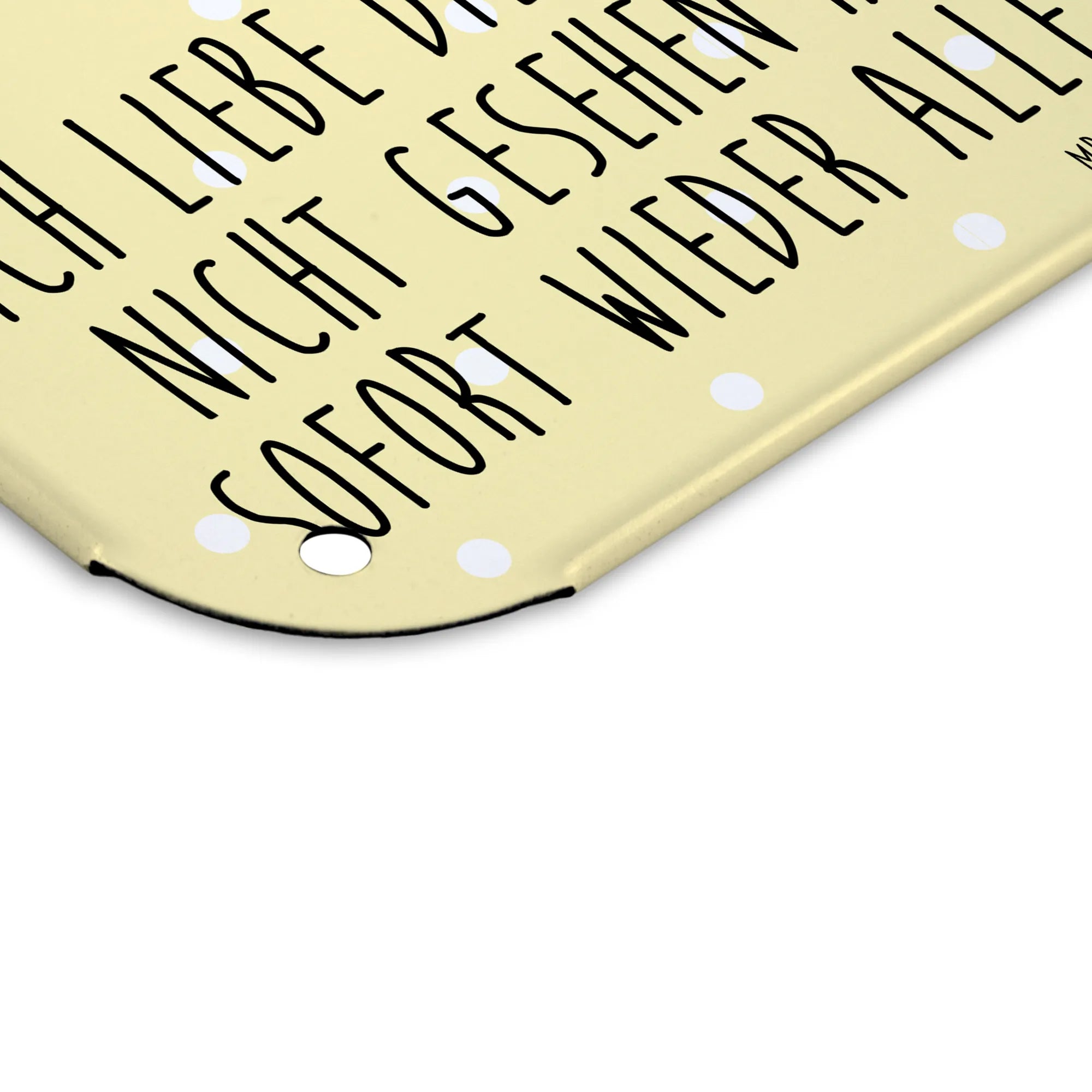 Das Blechschild von Mr. & Mrs. Panda ist die perfekte Kombination aus Stil und Funktionalität für dein Zuhause. Mit einer Größe von 146 mm x 420 mm x 297 mm bietet es ausreichend Platz für den süßen Spruch, der in edlem und langlebigem Druck auf hochwertigem Stahlblech zur Geltung kommt. Mit seinem fröhlichen Design ist dieses Schild ideal für Türen oder Wände und eignet sich zudem hervorragend als Präsentidee für besondere Anlässe. Die seidenmatte Oberfläche sorgt nicht nur für einen modernen Look, sondern ist auch äußerst pflegeleicht; einfach mit einem feuchten Tuch abwischbar! Es enthält 4 praktische Bohrungen, die eine einfache Befestigung ermöglichen, und ist perfekt für den Innenbereich. Dank der abgerundeten Ecken und umgefalzten Kanten ist es nicht nur stilvoll, sondern auch sicher. Verwandle deine Wände mit diesem einzigartigen Blechschild und erfreue dich an seiner charmanten Ausstrahlung!