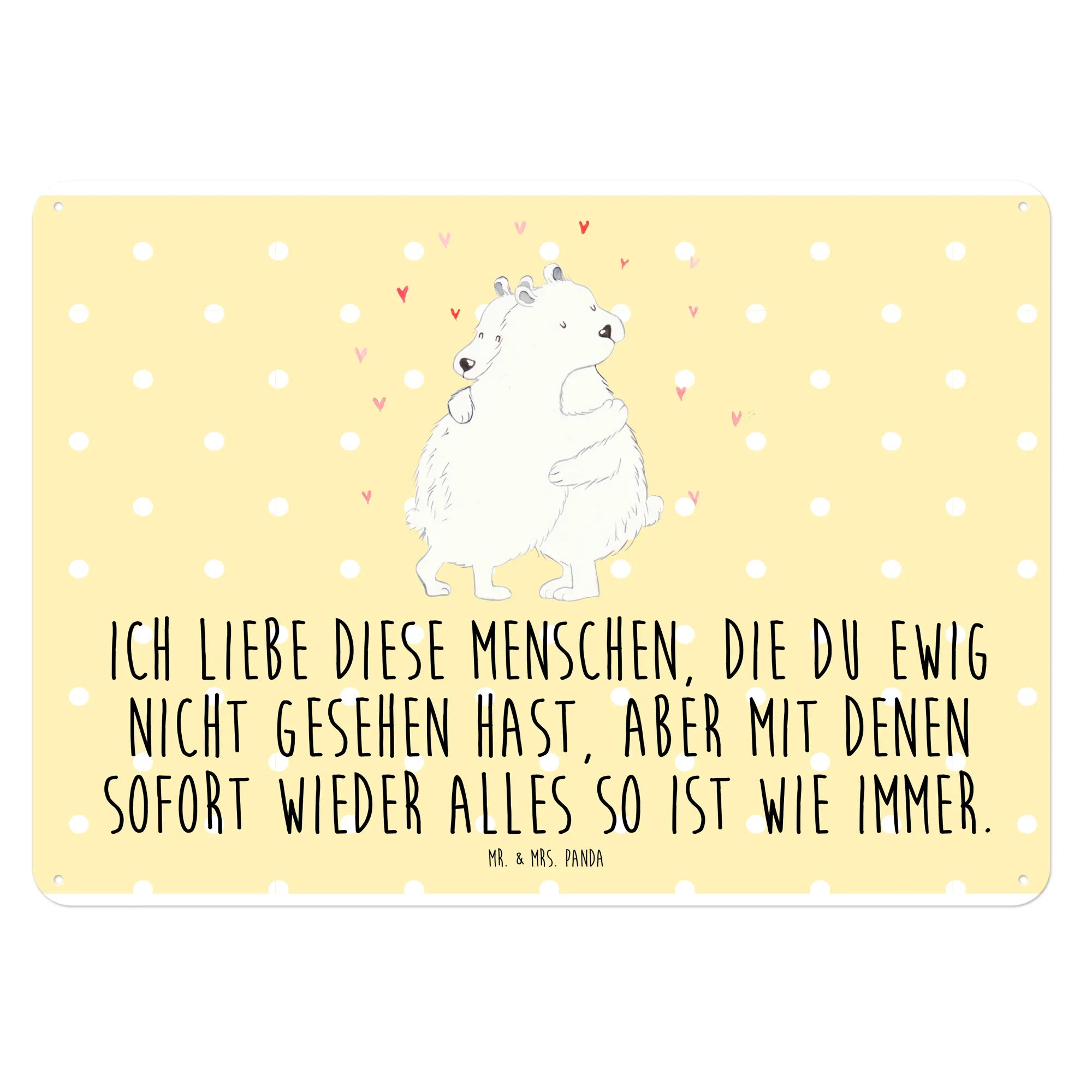 Das wunderschöne Blechschild mit dem Thema "Eisbär Umarmen" aus der kleinen, aber feinen Sammlung "Small World" von Mr. & Mrs. Panda ist nicht nur eine praktische Wand- oder Türdekoration, sondern auch ein wahres Kunstwerk!