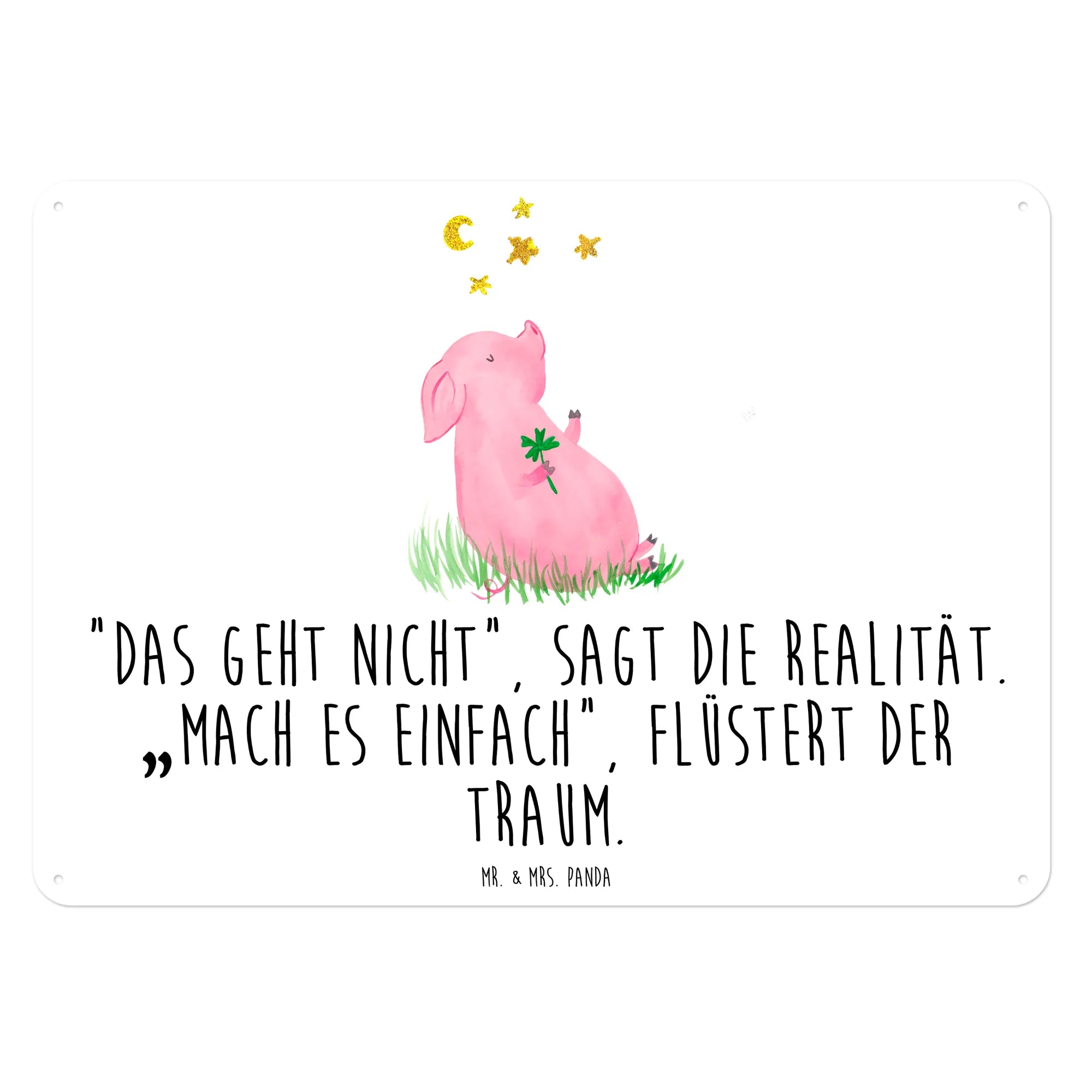Du bist auf der Suche nach einem perfekten Geschenk, das jedem ein Lächeln ins Gesicht zaubert? Dann haben wir genau das Richtige für dich: Das wunderschöne Blechschild mit dem süßen Glücksschwein von Mr. & Mrs. Panda.