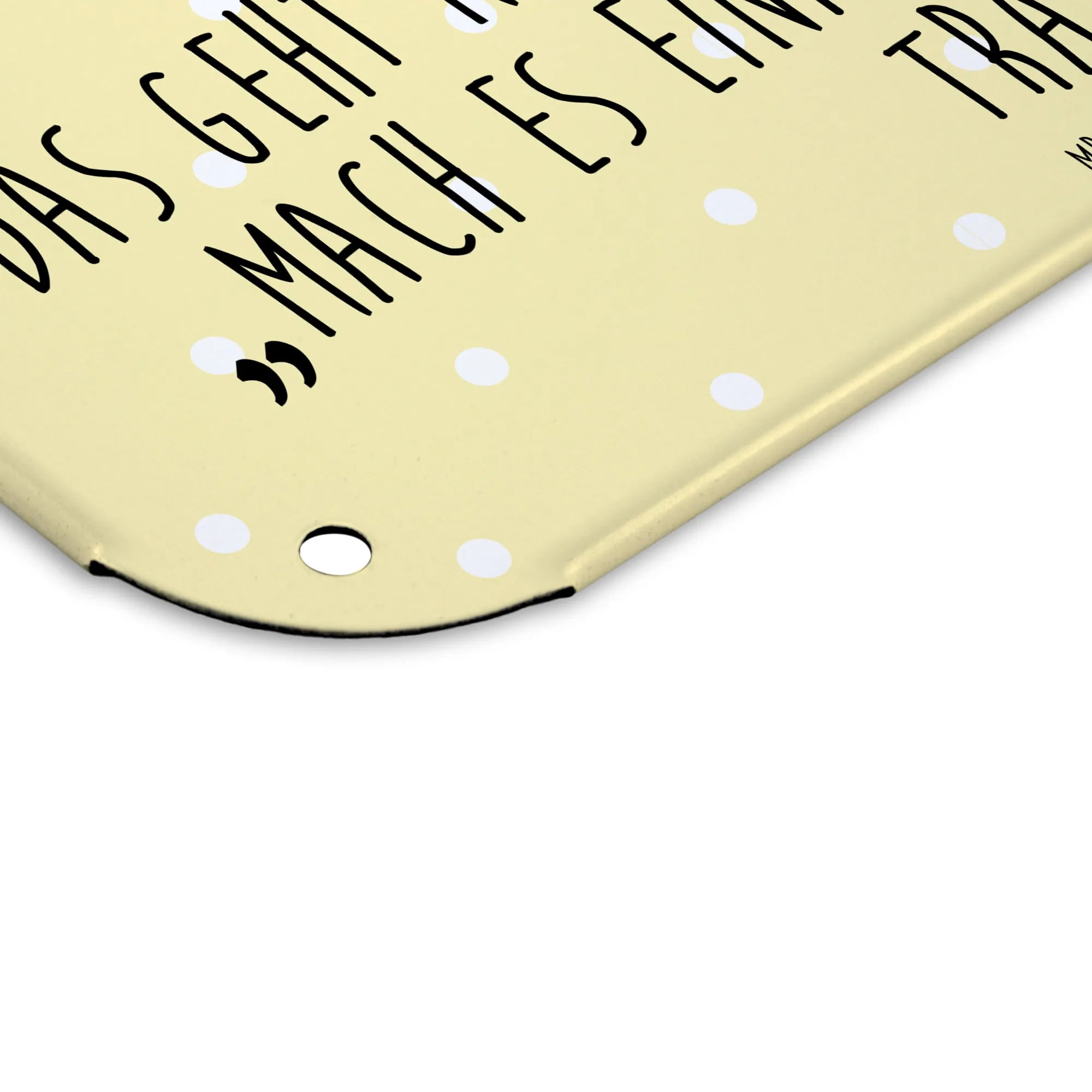 Verleihen Sie Ihrem Zuhause einen Hauch von Stil mit unserem Blechschild von Mr. & Mrs. Panda! Diese edle Kreation misst 146 mm x 148 mm x 105 mm und ist aus hochwertigem Stahlblech gefertigt, das nicht nur strapazierfähig, sondern auch elegant ist. Das Schild ist mit ansprechenden Sprüchen und liebevollen Motiven bedruckt, die zur positiven Stimmung beitragen. Mit seiner seidenmatten Oberfläche kommt es in jeder Umgebung bestens zur Geltung und eignet sich hervorragend als Wand- oder Türdekoration. Es ist mit 4 praktischen Bohrlöchern versehen, die die Montage ganz einfach machen. Alle Kanten sind umgefalzt und die Ecken abgerundet, sodass das Schild nicht nur schön aussieht, sondern auch sicher in Ihrem Zuhause ist. Außerdem lässt sich das Schild leicht mit einem feuchten Tuch reinigen und ist nur für den Innenbereich gedacht. Dieses Blechschild ist in verschiedenen Größen erhältlich und ist die ideale Geschenkidee für jeden Anlass.