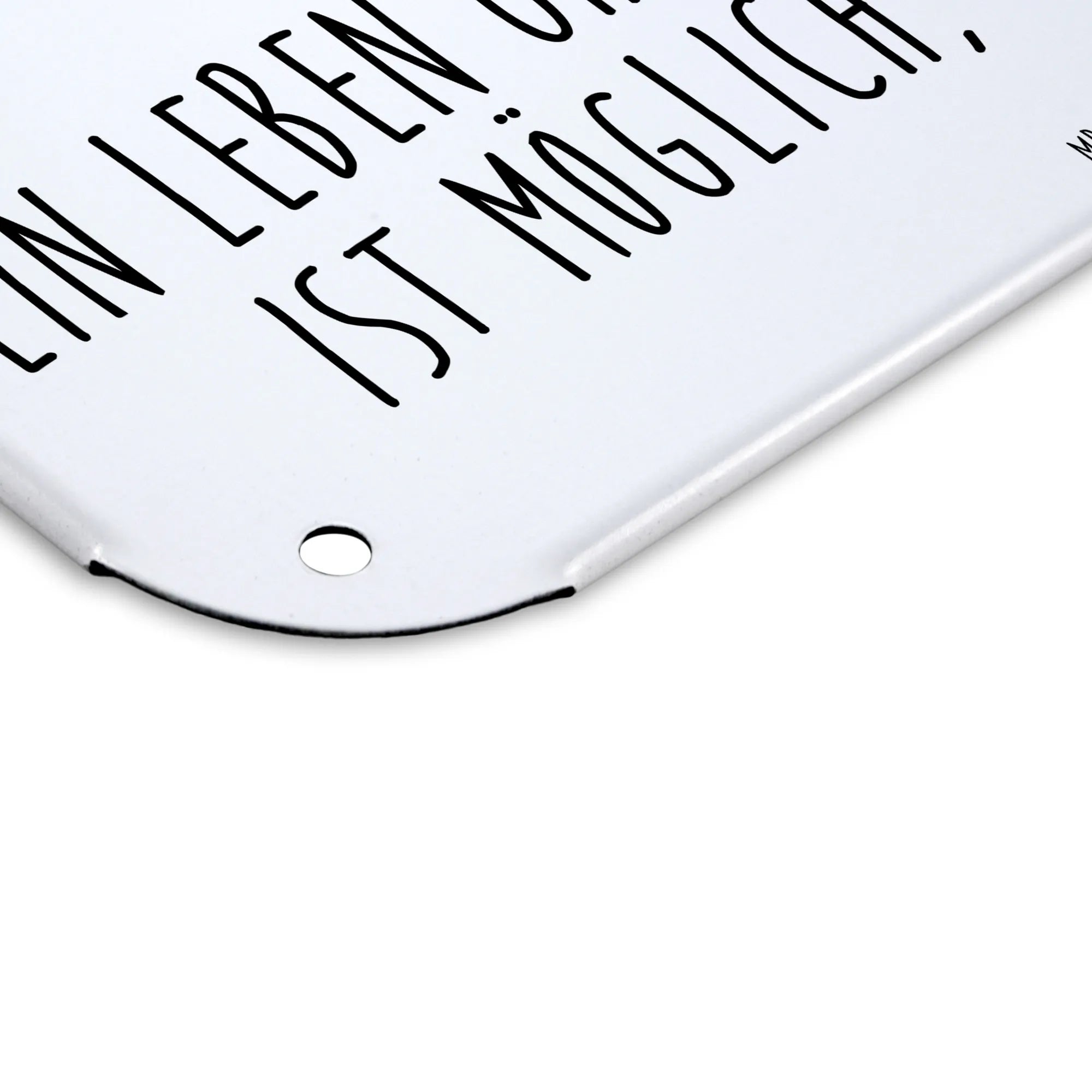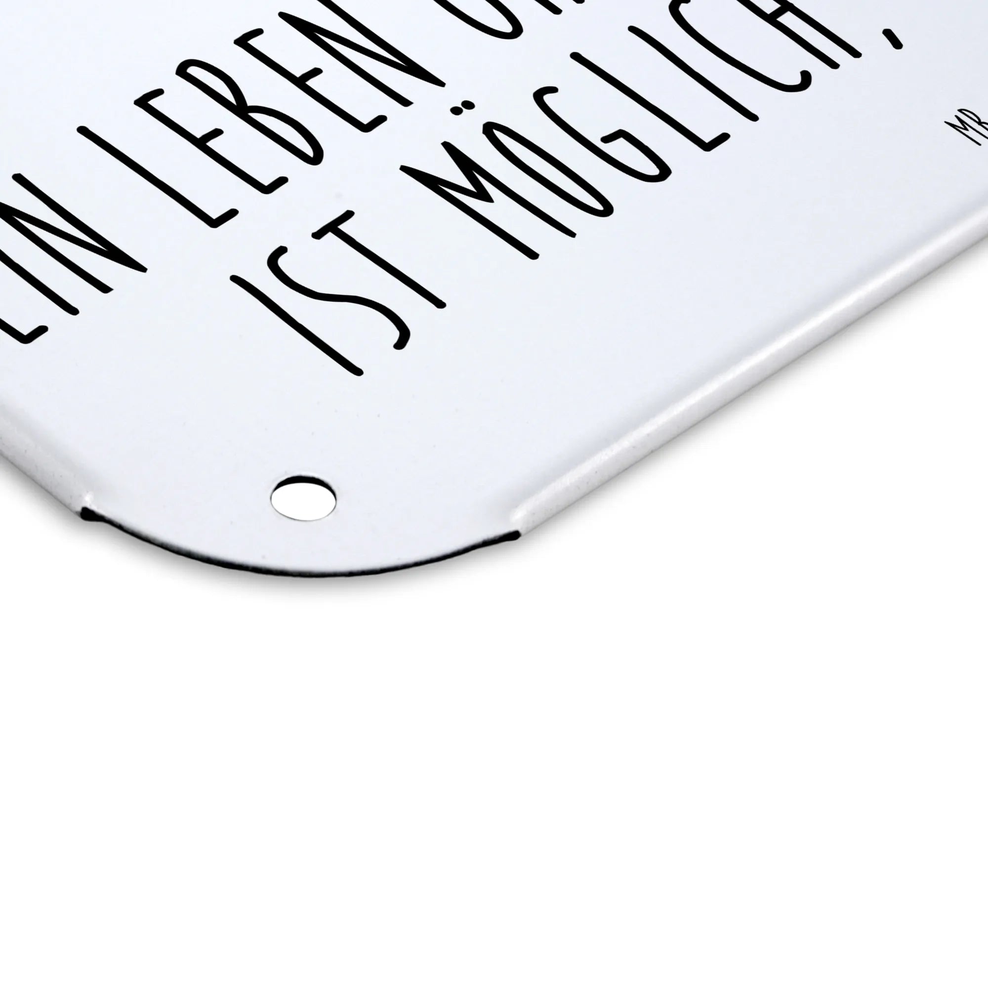 Das perfekte Stück für deine Wohnung: unser hochwertiges Blechschild von Mr. & Mrs. Panda! Mit den eindrucksvollen Maßen 146 mm x 148 mm x 105 mm, strahlt dieses Schild eine besondere Eleganz aus. Das edle Stahlblech ist doppelt beschichtet, sodass es langlebig und resistent gegen Verfärbungen bleibt. Der kreative Druck mit süßen Motiven und griffigen Sprüchen bringt Freude in jeden Raum und eignet sich hervorragend als Geschenkoption. Die seidenmatte Oberfläche wertet nicht nur das Schild selbst auf, sondern macht es auch zu einem zeitlosen Accessoire. Ob an der Wand oder der Tür - die Anbringung ist dank der 4 bereits vorgebohrten Löcher besonders einfach. Kanten und Ecken sind abgerundet und bilden somit ein sicheres Design für dein Zuhause. Dieses Blechschild passt perfekt in jeden Innenraum und lässt sich mühelos mit einem feuchten Tuch reinigen. Verfügbar in verschiedenen Größen, um sich harmonisch in dein Ambiente einzufügen.