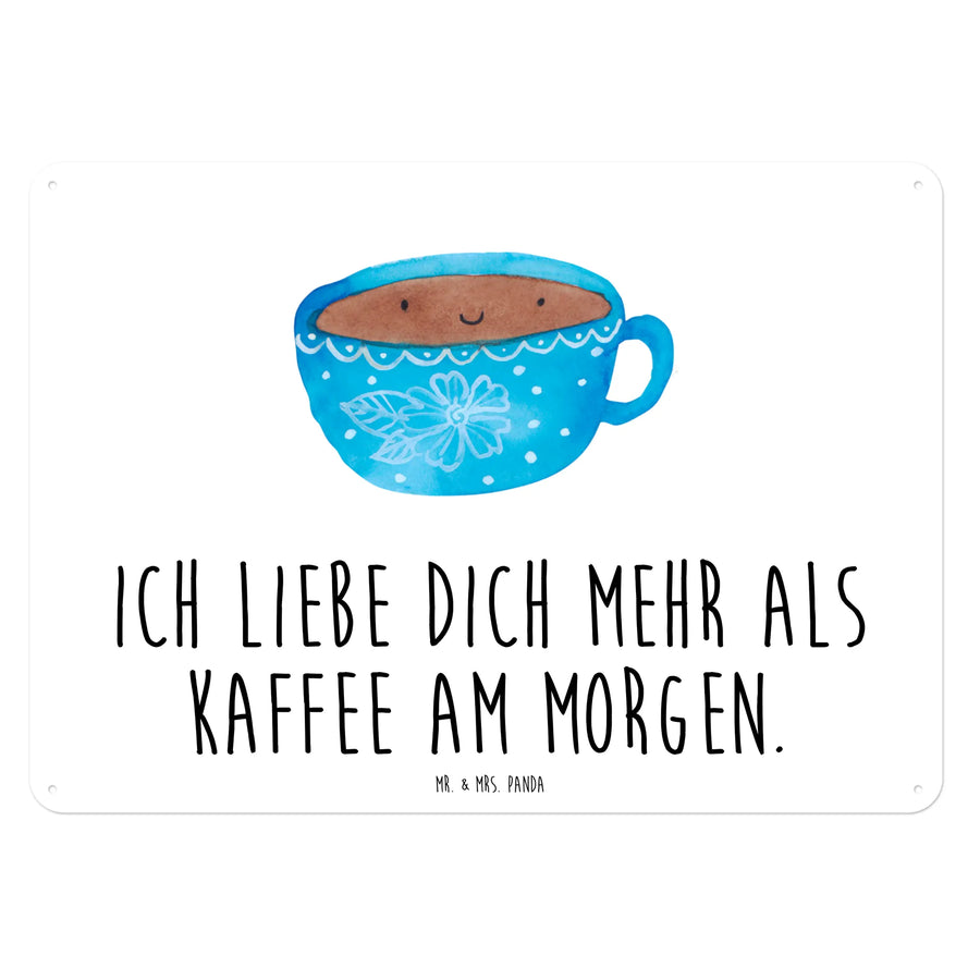 Entdecke das perfekte Geschenk für alle Kaffee-Liebhaber! Das wunderschöne Blechschild von Mr. & Mrs. Panda zeigt eine fröhlich gestaltete Kaffeetasse mit dem liebevollen Spruch "Ich liebe dich mehr als Kaffee am Morgen."