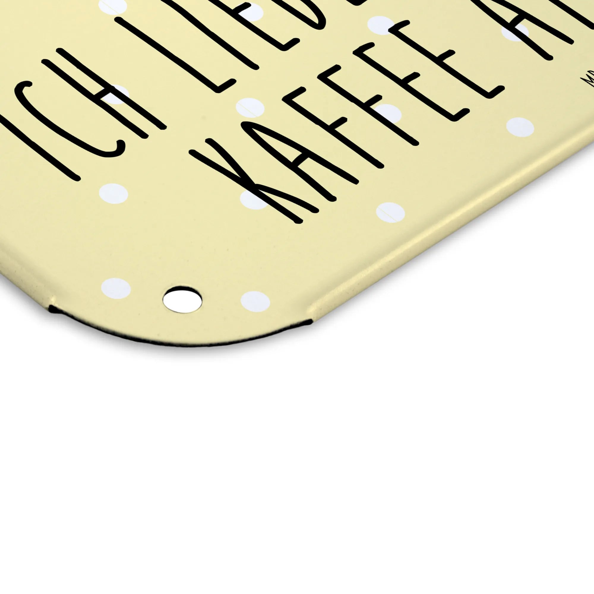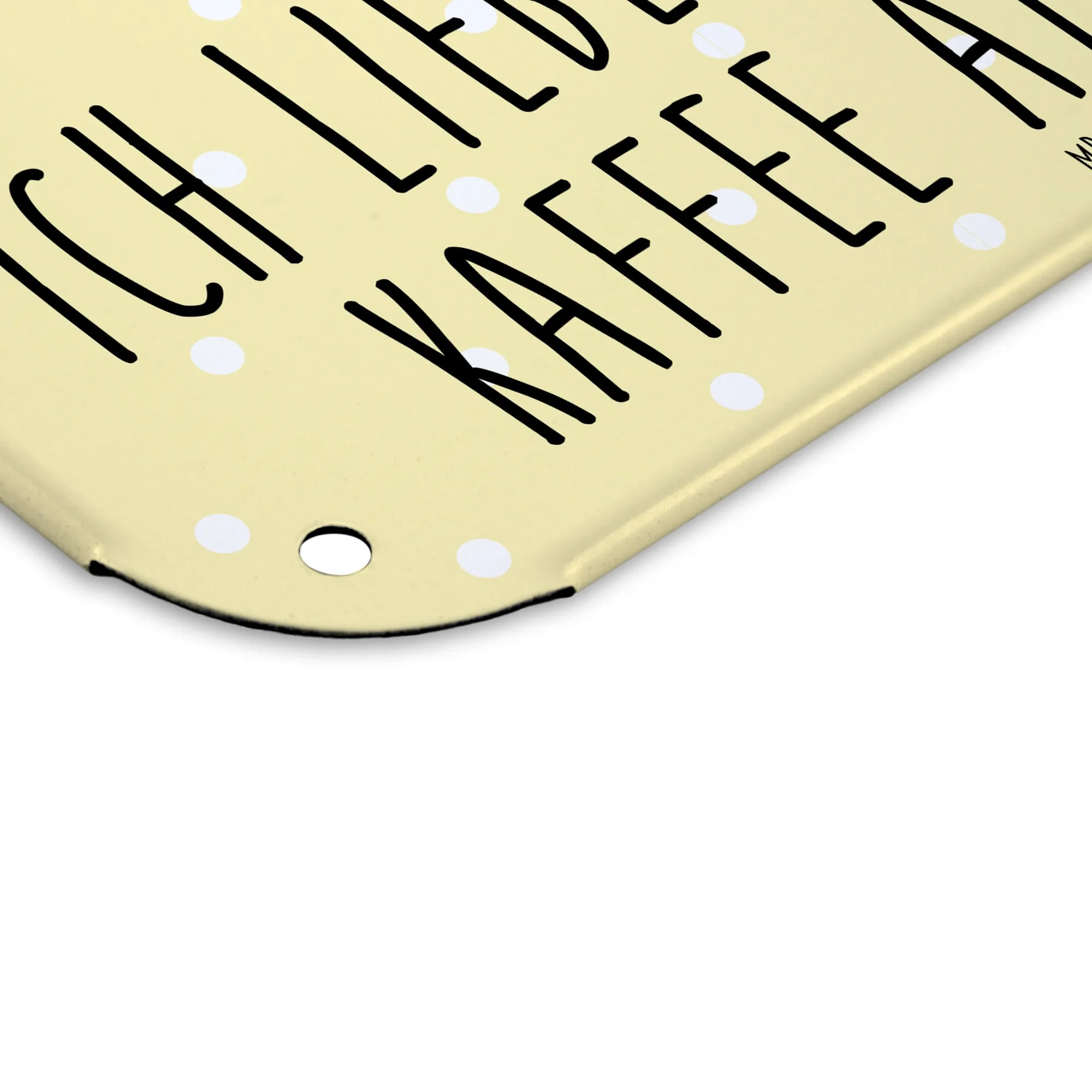 Das wunderschöne Blechschild von Mr. & Mrs. Panda mit der Aufschrift "Ich liebe dich mehr als Kaffee am Morgen" ist das perfekte Geschenk für alle Kaffeeliebhaber und Freunde des guten Geschmacks. In einem stimmungsvollen Gelb gehalten, bringt dieses Metallschild gute Laune in jedes Zuhause. Egal, ob für die Küche, das Café oder als fröhliche Wanddekoration – dieses Schild ist ein absoluter Blickfang und sorgt für ein Lächeln im Alltag.