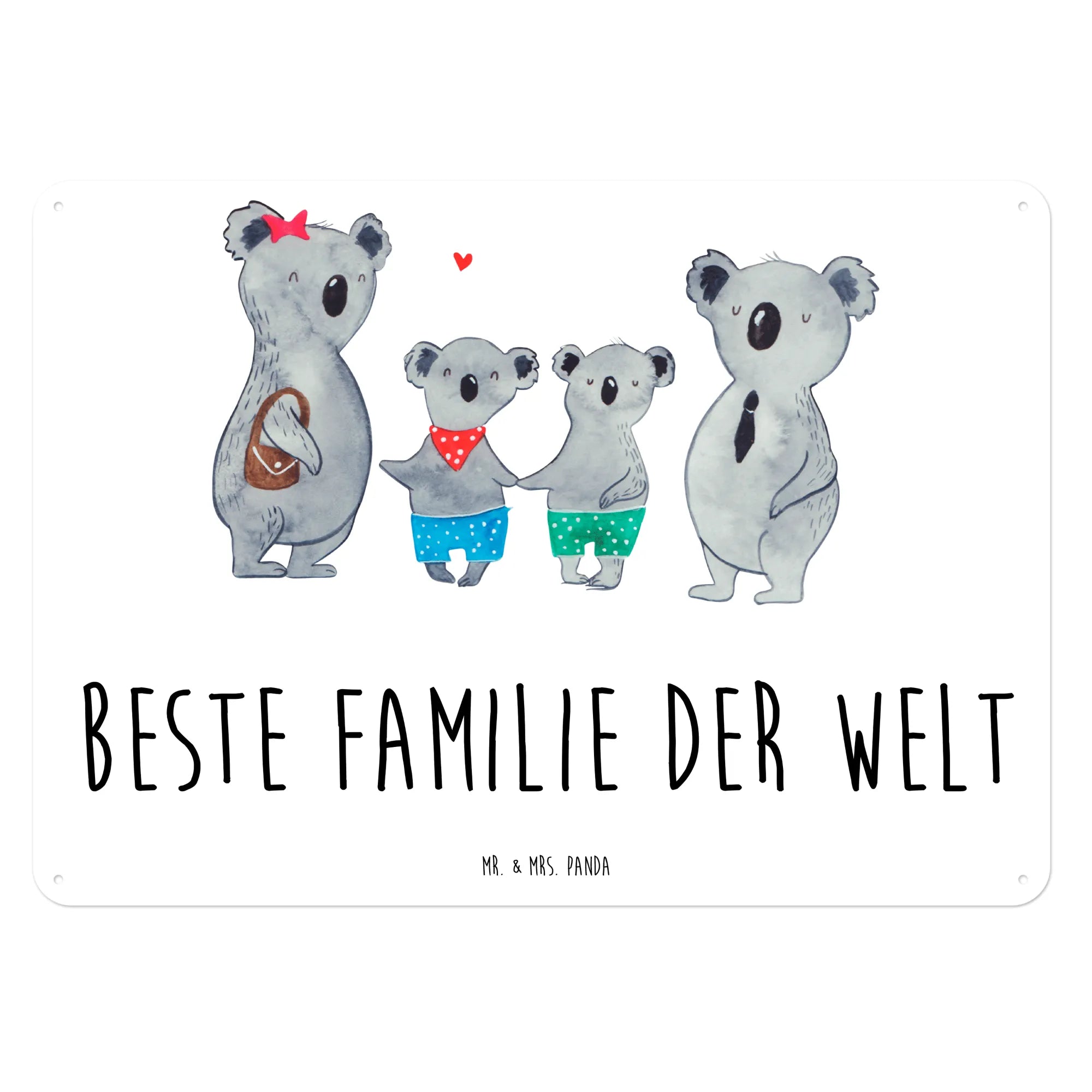 Auf dem Schild siehst Du eine liebevolle Darstellung von vier Koalabären, die zusammen ihre Zeit genießen. Die größte Koala wie eine Mutterfigur strahlt Herzlichkeit aus und wird dabei von einem fröhlichen Vater-Koala begleitet, der in einem schicken Anzug mit Krawatte auftaucht. Und die beiden kleinen Koalas, die Kinder darstellen könnten, bringen mit ihrem verspielten Outfit in blauen und grünen Shorts noch mehr Freude ins Bild. Es ist ein echtes Statement über die beste Familie der Welt!