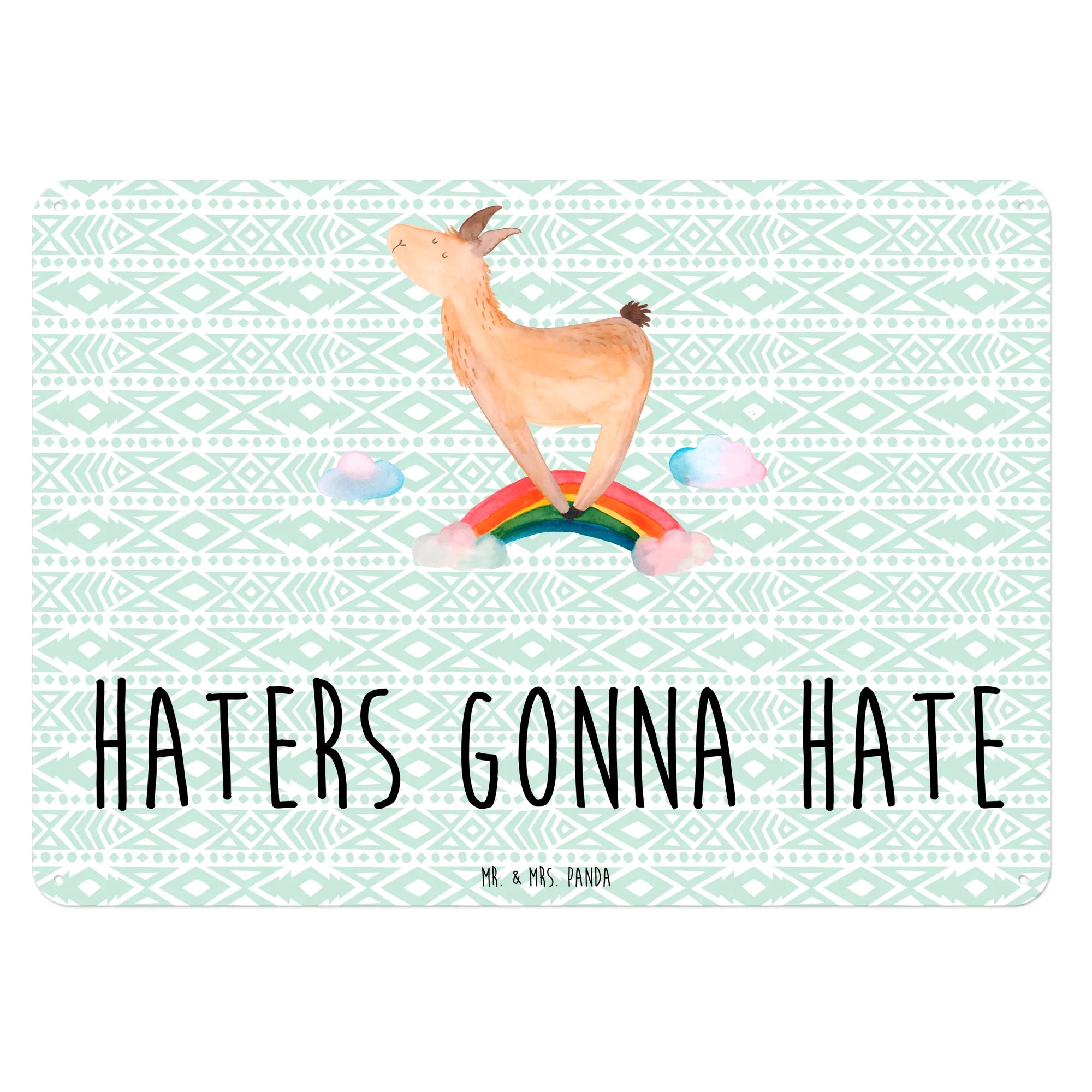 Das wunderschöne Blechschild "Lama Regenbogen" aus der Lama-Kollektion von Mr. & Mrs. Panda ist das perfekte Geschenk für jeden Lama-Liebhaber! Es vereint in einem liebevoll gestalteten Design die beiden coolsten Tiere der Welt: Lamas und Regenbögen. Mit dem Spruch "Haters gonna hate" bringt es nicht nur Farbe in dein Zuhause, sondern auch eine gute Portion Humor und eine positive Einstellung.