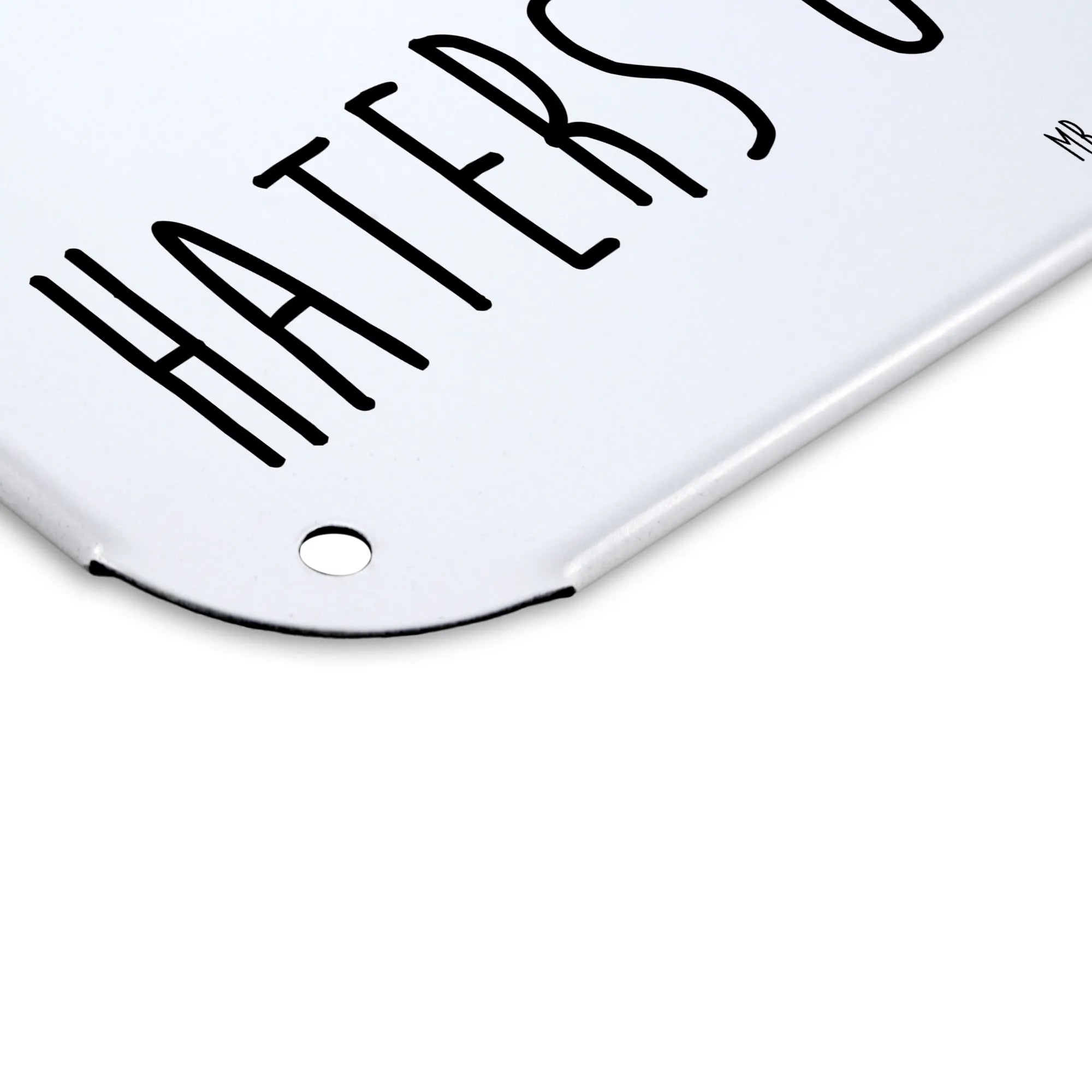 Verschenke Lebensfreude mit diesem einmaligen Blechschild und lass die Menschen in Deiner Umgebung an der coolen Ausstrahlung des Lamas teilhaben. Hol Dir ein Stück Freiheit nach Hause und zeige der Welt: Haters gonna hate! Es ist mehr als nur ein Schild; es ist eine Botschaft, die Deinem Raum Charme verleiht und jedem, der es sieht, ein Lächeln ins Gesicht zaubert. Überrasche Deine Liebsten oder Dich selbst mit diesem zeitlosen und humorvollen Deko-Element aus der Lama-Kollektion von Mr. & Mrs. Panda!