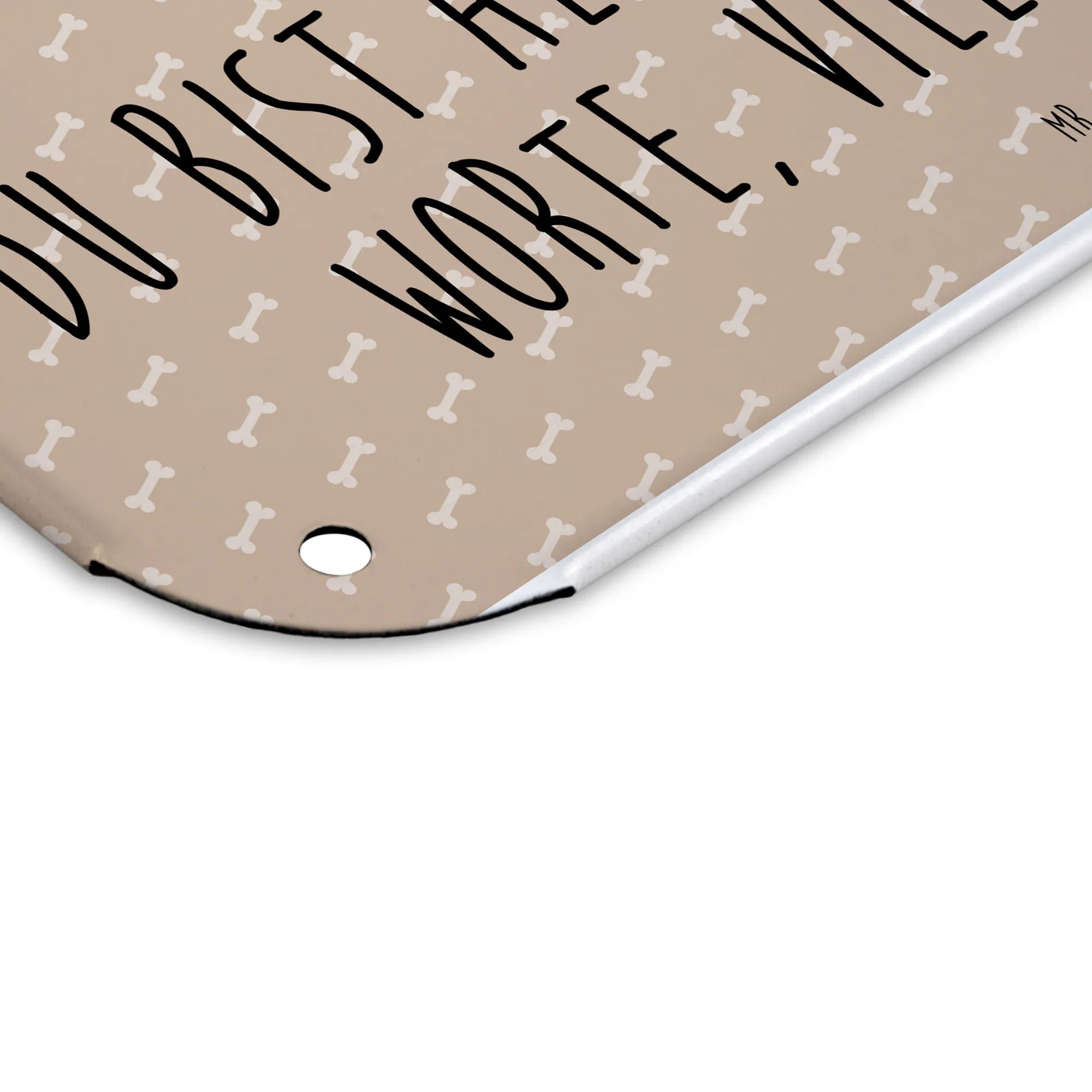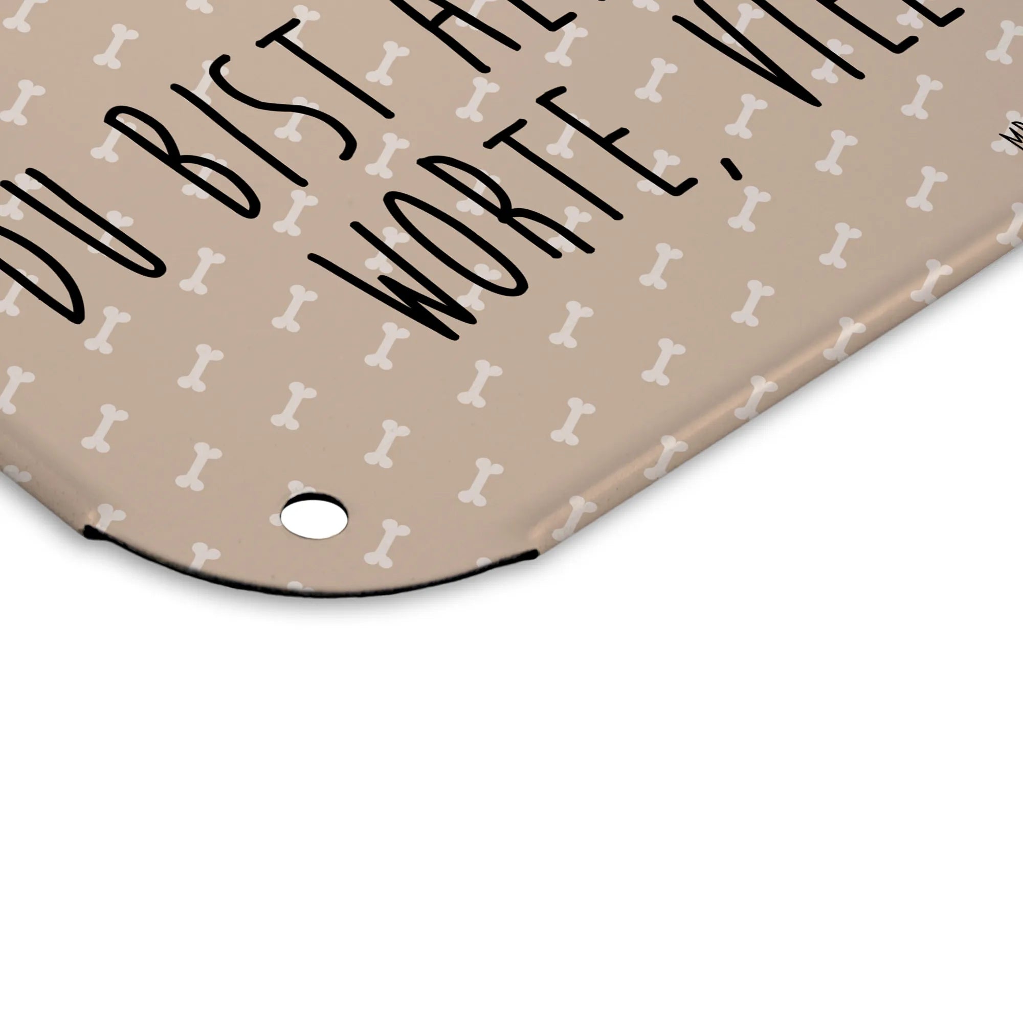 Der Slogan 'Du bist alles für mich. Wenig Worte, viel Bedeutung.' macht dieses Schild zu einer wunderschönen Dekoration, die jeder Hundebesitzer mit Stolz präsentieren möchte. Es eignet sich nicht nur hervorragend als Türschild oder Wandschild, sondern entfaltet seine volle Wirkung auch in der Wohnung oder im Büro. Die edle seidenmatte Oberfläche und das hochwertige Stahlblech sorgen für eine lange Lebensdauer und einen stilvollen Look.