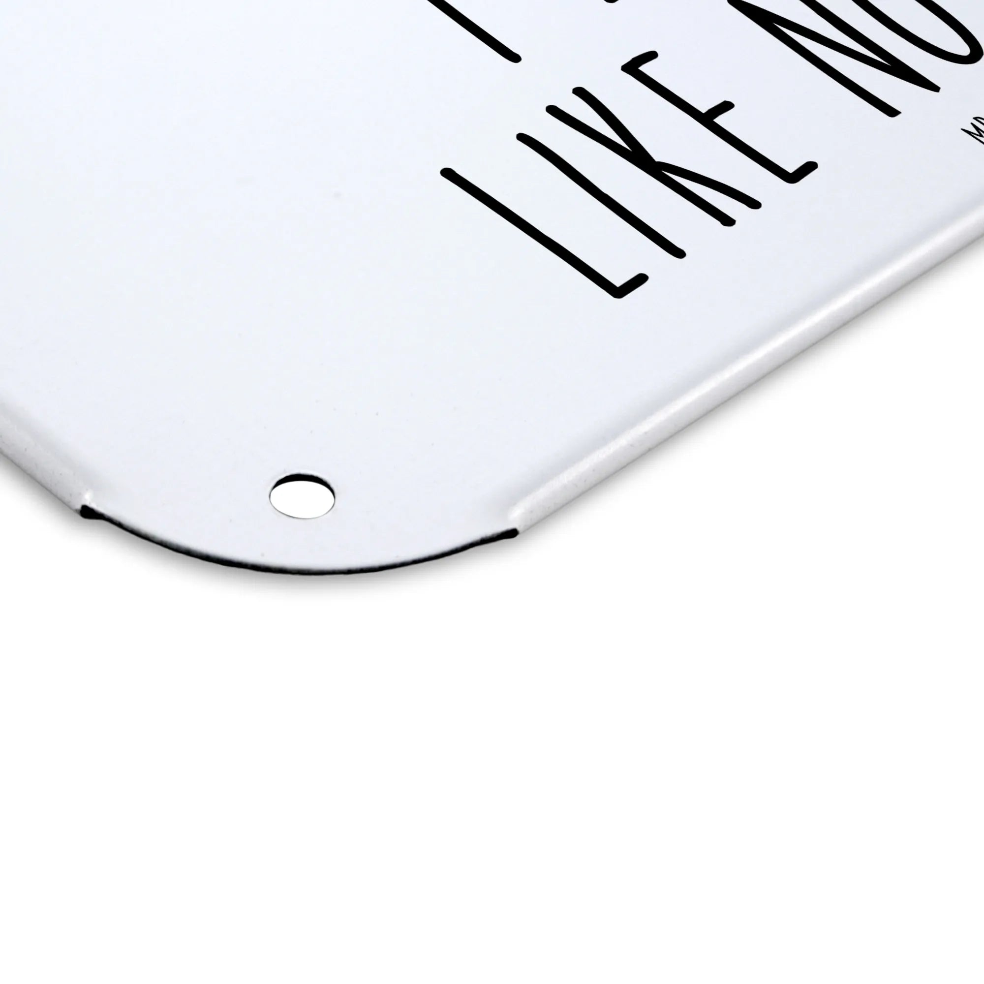 Das Blechschild ist für den Innenbereich konzipiert und hat 4 praktische Bohrungen zur optimalen Befestigung. Egal ob im Wohnzimmer, Schlafzimmer oder Flur - dieses Schild zaubert jedem Betrachter ein Lächeln ins Gesicht. Darüber hinaus ist es leicht abwischbar, sodass du immer eine saubere und schöne Dekoration hast.