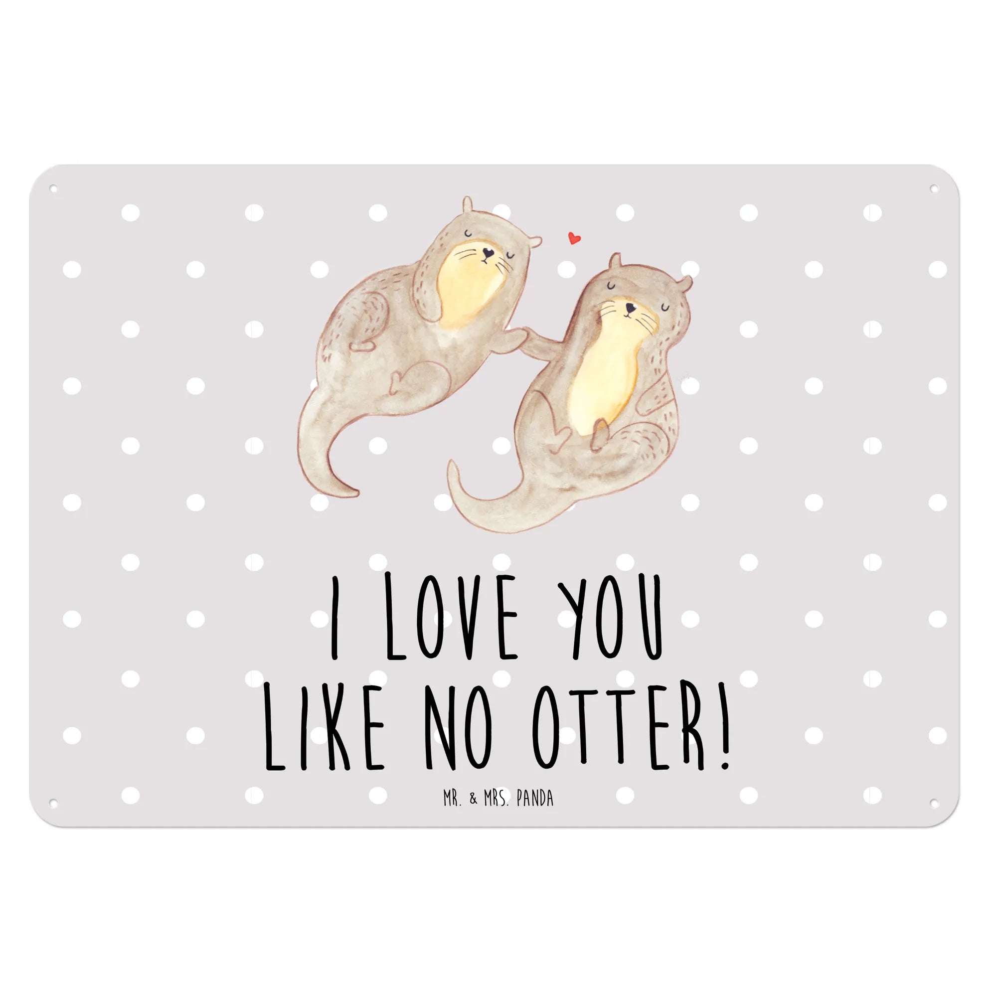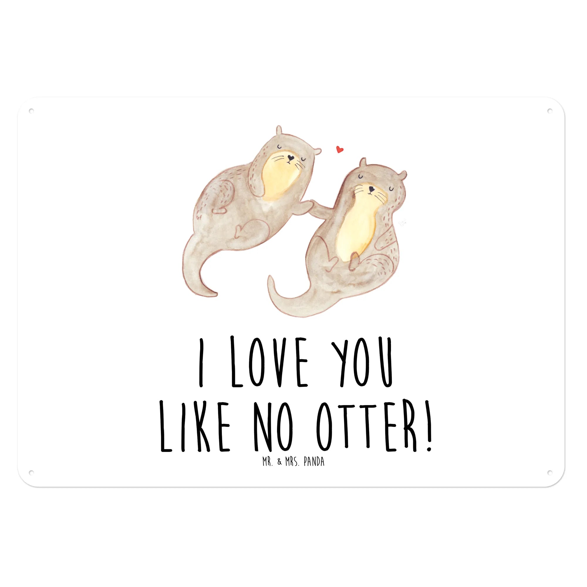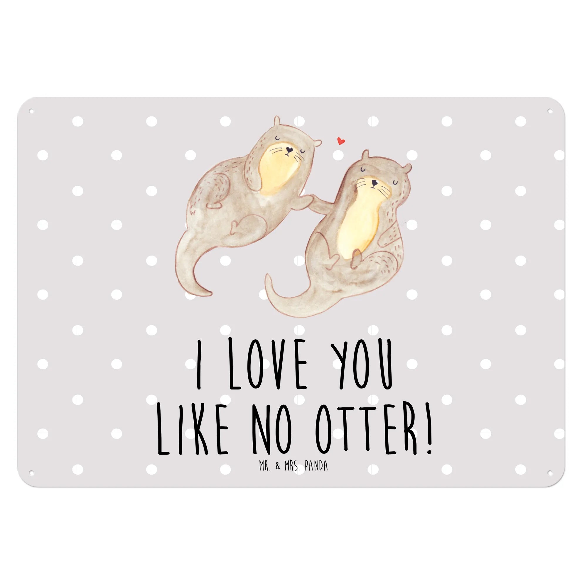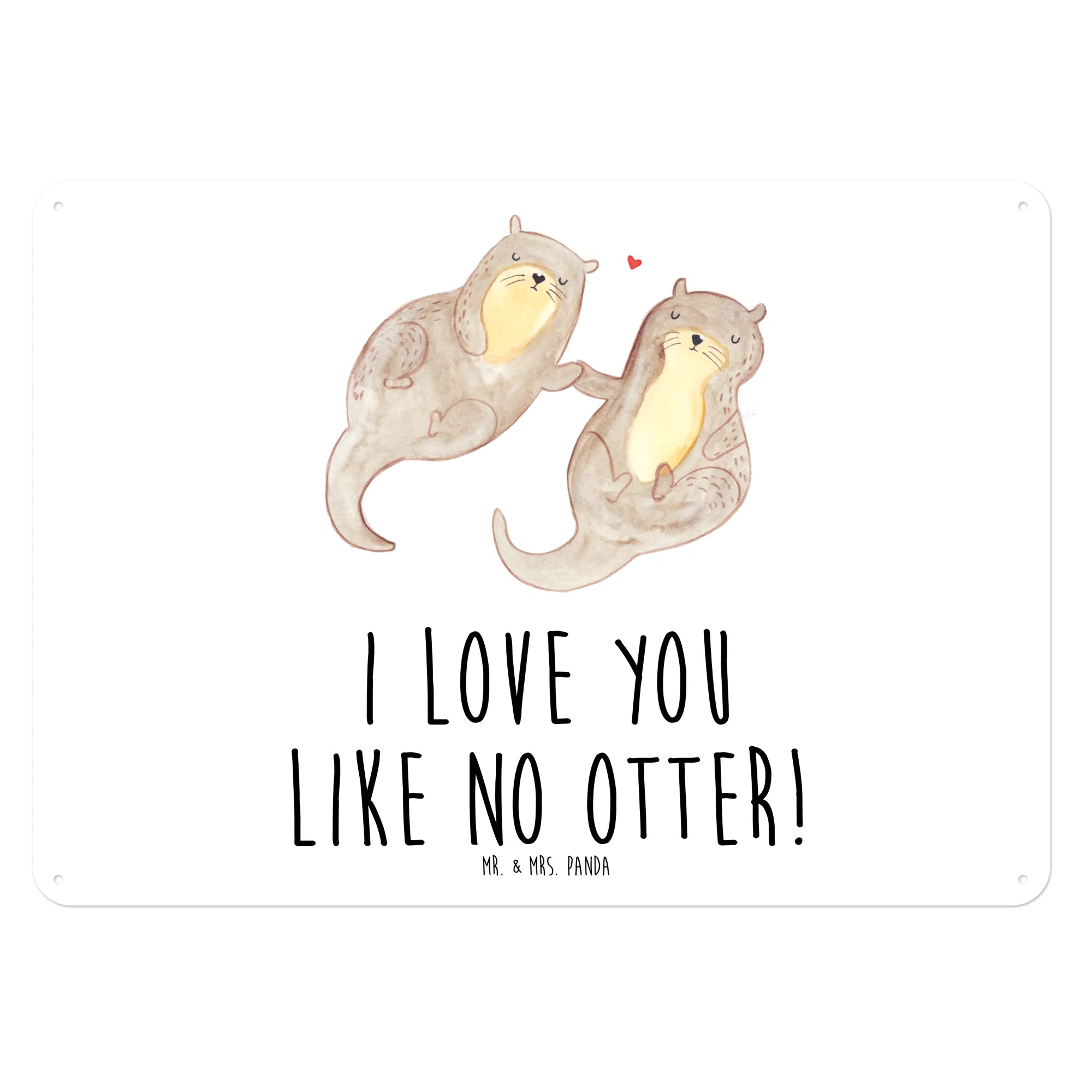Das wunderschöne Blechschild mit dem niedlichen Motiv "Otter händchenhaltend" aus der Otter-Kollektion von Mr. & Mrs. Panda ist das perfekte Geschenk für alle Otter-Liebhaber!