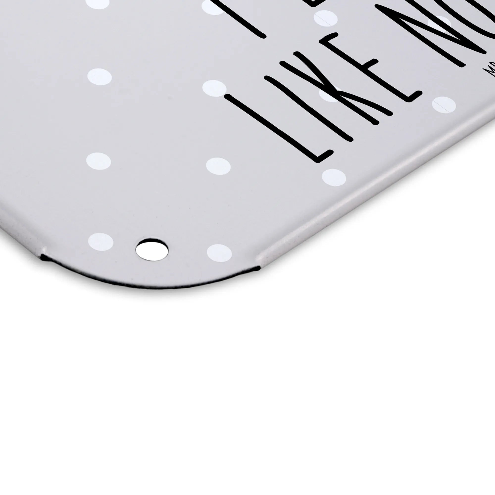 Das perfekte Stück für deine Wohnung: unser hochwertiges Blechschild von Mr. & Mrs. Panda! Mit den eindrucksvollen Maßen 146 mm x 148 mm x 105 mm, strahlt dieses Schild eine besondere Eleganz aus. Das edle Stahlblech ist doppelt beschichtet, sodass es langlebig und resistent gegen Verfärbungen bleibt. Der kreative Druck mit süßen Motiven und griffigen Sprüchen bringt Freude in jeden Raum und eignet sich hervorragend als Geschenkoption. Die seidenmatte Oberfläche wertet nicht nur das Schild selbst auf, sondern macht es auch zu einem zeitlosen Accessoire. Ob an der Wand oder der Tür - die Anbringung ist dank der 4 bereits vorgebohrten Löcher besonders einfach. Kanten und Ecken sind abgerundet und bilden somit ein sicheres Design für dein Zuhause. Dieses Blechschild passt perfekt in jeden Innenraum und lässt sich mühelos mit einem feuchten Tuch reinigen. Verfügbar in verschiedenen Größen, um sich harmonisch in dein Ambiente einzufügen.