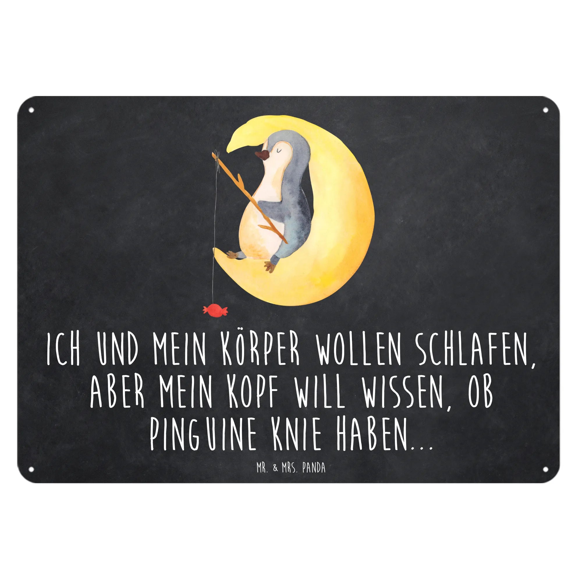 Das Blechschild 'Pinguin Mond' von Mr. & Mrs. Panda ist das perfekte Geschenk für alle, die eine liebevolle und humorvolle Note in ihrem Zuhause haben möchten. Mit dem süßen Motiv eines Pinguins, der es sich auf einer Mondsichel gemütlich gemacht hat und nach Sternen angelt, sorgt das Schild nicht nur für Augenblicke des Schmunzelns, sondern auch für eine entspannte Atmosphäre. Insbesondere für Schlafräume oder Gästezimmer ist dieses Blechschild eine wunderbare Dekoration, die mit dem Spruch 'Ich und mein Körper wollen schlafen, aber mein Kopf will wissen, ob Pinguine Knie haben...' einen witzigen und nachdenklichen Akzent setzt.