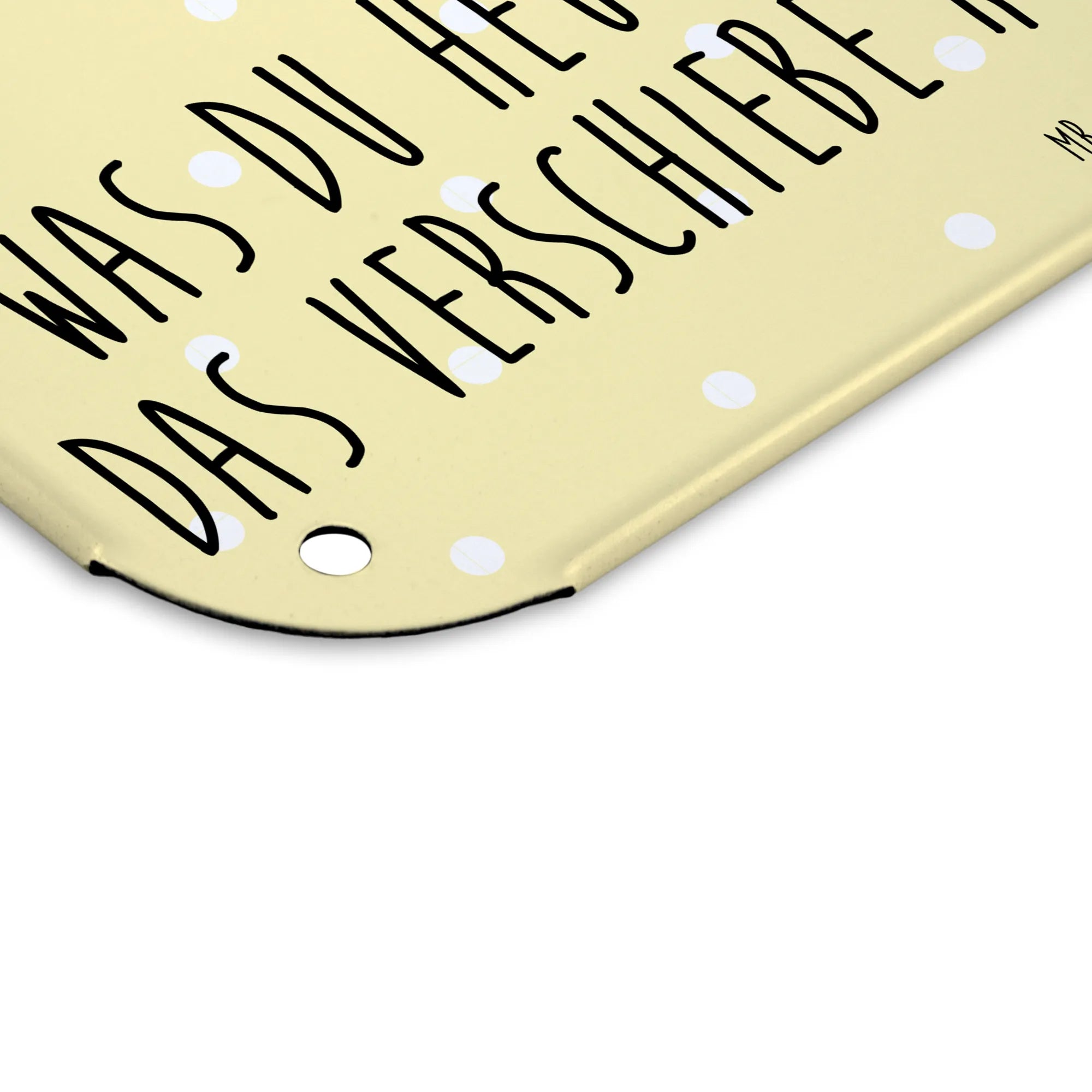 Dieses edle Blechschild von Mr. & Mrs. Panda ist nicht nur eine Dekoration, sondern auch ein Statement! Mit den Maßen 146 mm x 297 mm x 210 mm lässt es sich wunderbar an jeder Wand oder Tür anbringen und bringt ein Lächeln in jeden Raum. Das Schild ist aus hochwertigem Stahlblech hergestellt, was für eine lange Haltbarkeit sorgt. Der Druck ist nicht nur wunderschön anzusehen, sondern auch ultra langlebig in seidenmatter Qualität. Durch die abgerundeten Ecken und gefalzten Kanten ist es nicht nur schön, sondern auch sicher. Mit praktischen 4 Bohrungen ausgestattet, kannst du es komfortabel anbringen. Dieses Stück ist ideal als Geschenk für deine Liebsten oder einfach zur Verschönerung deines Zuhauses. Leichte Reinigung – einfach abwischen mit einem feuchten Tuch. Mach dein Zuhause noch einladender mit diesem besonderen Stück von Mr. & Mrs. Panda!