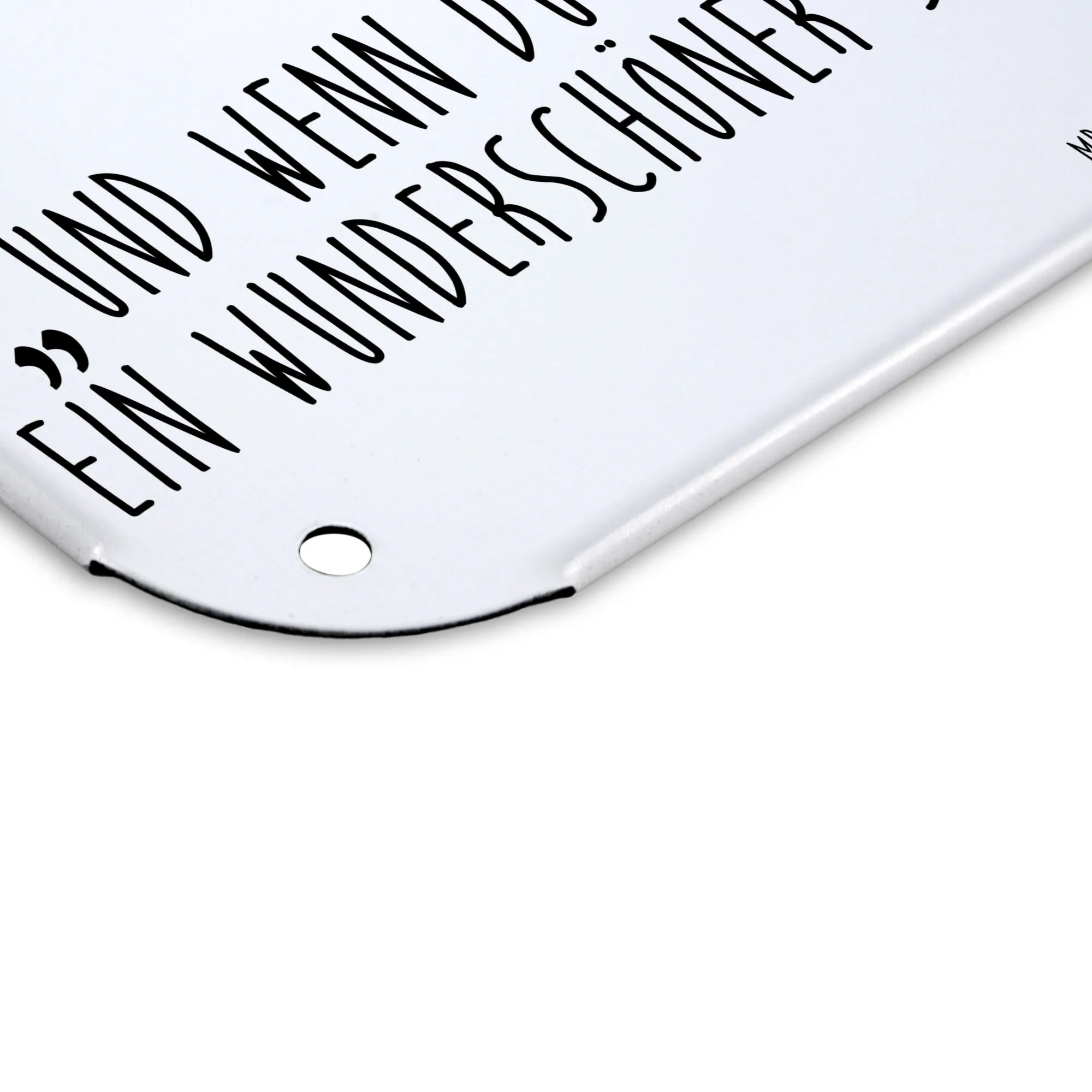 Mach dein Zuhause zu einem noch schöneren Ort mit dem Blechschild von Mr. & Mrs. Panda! Mit den Maßen 146 mm x 297 mm x 210 mm ist es der perfekte Akzent für deine Wand oder Tür. Hergestellt aus feinstem Stahlblech, überzeugt es mit einem hochwertigen, seidenmatten Druck, der die bunten Motive auf wunderschöne Weise zur Geltung bringt. Die abgerundeten Ecken und gefalzten Kanten runden das Gesamtbild ab und bieten zugleich Sicherheitsaspekte. Eine unkomplizierte Montage ist dank der 4 Bohrungen gegeben. Ob du es als persönliche Dekoration verwenden möchtest oder als originelles Geschenk für Freunde – mit diesem Schild bringst du Freude und Stil in dein Zuhause. Pflege ist kinderleicht – einfach mit einem feuchten Tuch abwischen und schon strahlt es wieder!