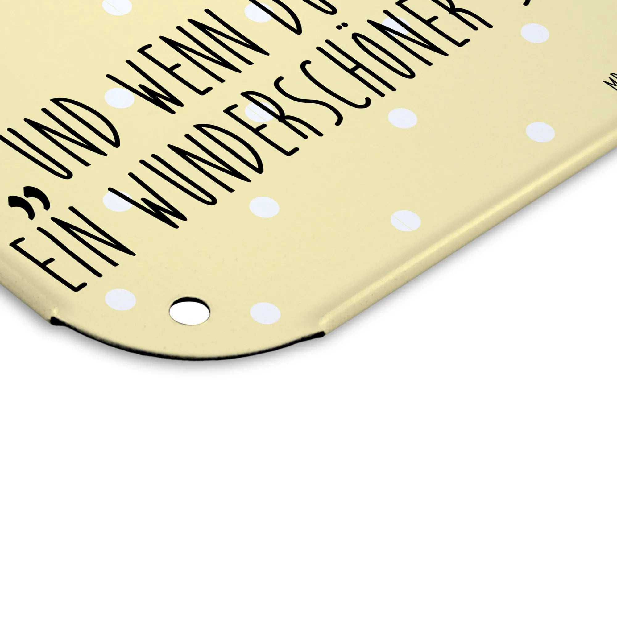 Unsere edlen Blechschild-Wanddekoration von Mr. & Mrs. Panda bietet eine wunderbare Möglichkeit, deinem Wohnraum eine persönliche Note zu verleihen. Mit großzügigen Abmessungen von 146 mm x 420 mm x 297 mm ist dieses Schild aus robustem Stahlblech gefertigt und garantiert Langlebigkeit, während die edlen Drucke für Aufsehen sorgen. Die fröhlichen Sprüche und süßen Motive bringen gute Laune in jeden Raum und sind ideal für Wände und Türen. Darüber hinaus eignet sich das Schild hervorragend als Geschenk für Freunde und Familie. Die seidenmatte Oberfläche und die perfekten Kanten bieten einen eleganten, zeitlosen Look und laden zum Staunen ein. Außerdem sind 4 Bohrungen für eine einfache Montage vorhanden – ganz gleich, ob du es in Küche, Wohnzimmer oder Flur aufhängen möchtest. Das Schild kann ganz einfach mit einem feuchten Tuch gereinigt werden und verfügt über abgerundete Ecken für mehr Sicherheit. Lass dieses Blechkunstwerk dein Zuhause verschönern!