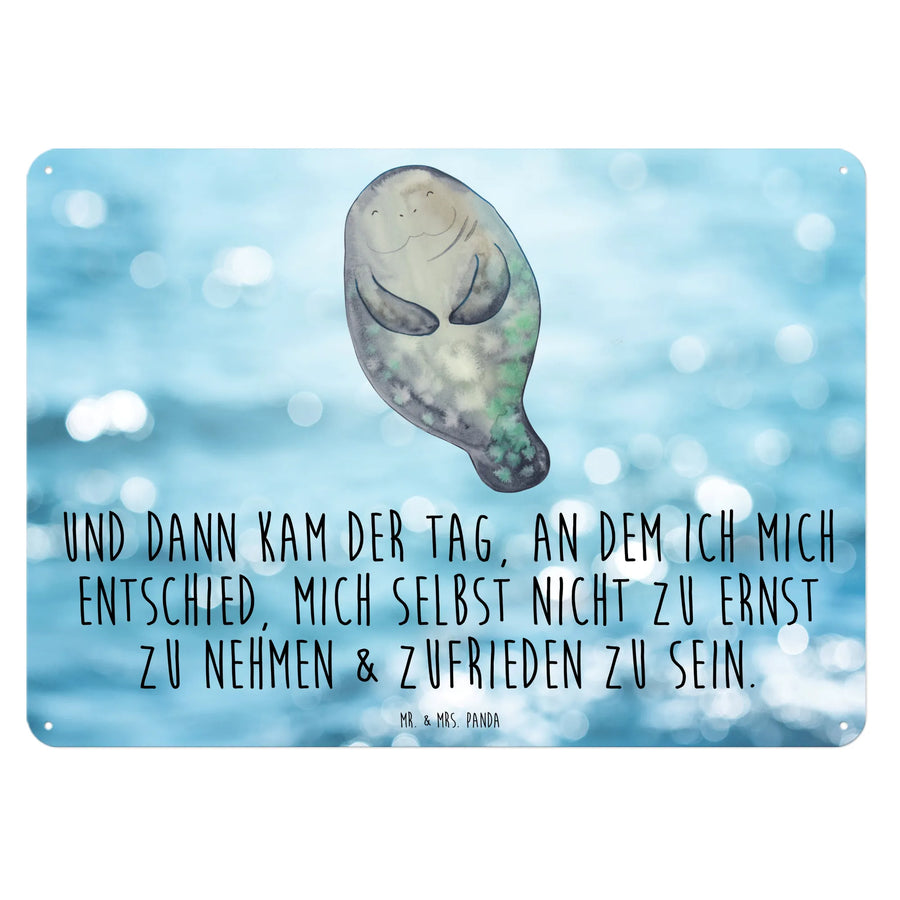 Entdecke das perfekte Geschenk für alle Meerestiere-Fans mit unserem liebevoll gestalteten Blechschild "Seekuh happy" aus der Kollektion von Mr. & Mrs. Panda!