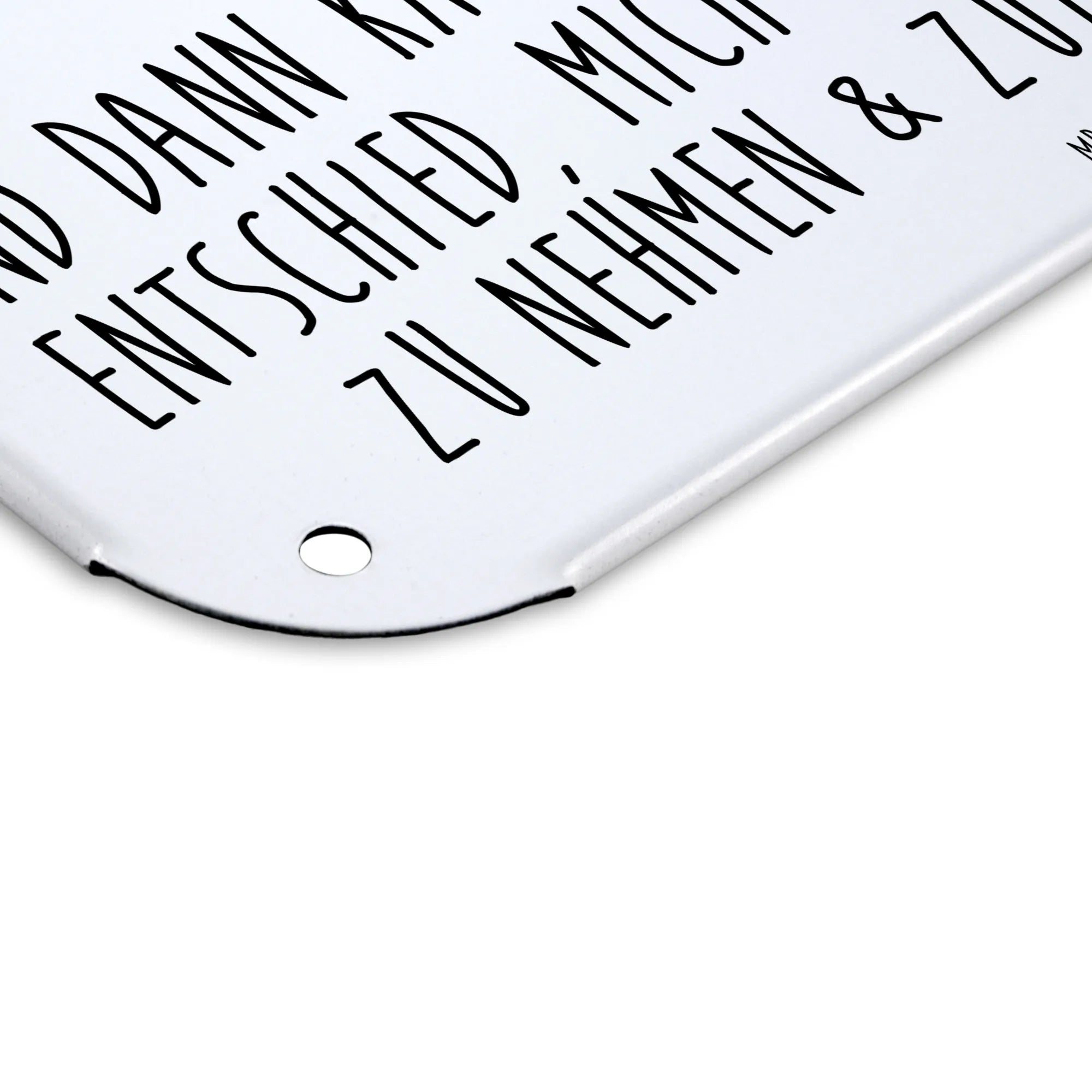 Das perfekte Stück für deine Wohnung: unser hochwertiges Blechschild von Mr. & Mrs. Panda! Mit den eindrucksvollen Maßen 146 mm x 148 mm x 105 mm, strahlt dieses Schild eine besondere Eleganz aus. Das edle Stahlblech ist doppelt beschichtet, sodass es langlebig und resistent gegen Verfärbungen bleibt. Der kreative Druck mit süßen Motiven und griffigen Sprüchen bringt Freude in jeden Raum und eignet sich hervorragend als Geschenkoption. Die seidenmatte Oberfläche wertet nicht nur das Schild selbst auf, sondern macht es auch zu einem zeitlosen Accessoire. Ob an der Wand oder der Tür - die Anbringung ist dank der 4 bereits vorgebohrten Löcher besonders einfach. Kanten und Ecken sind abgerundet und bilden somit ein sicheres Design für dein Zuhause. Dieses Blechschild passt perfekt in jeden Innenraum und lässt sich mühelos mit einem feuchten Tuch reinigen. Verfügbar in verschiedenen Größen, um sich harmonisch in dein Ambiente einzufügen.