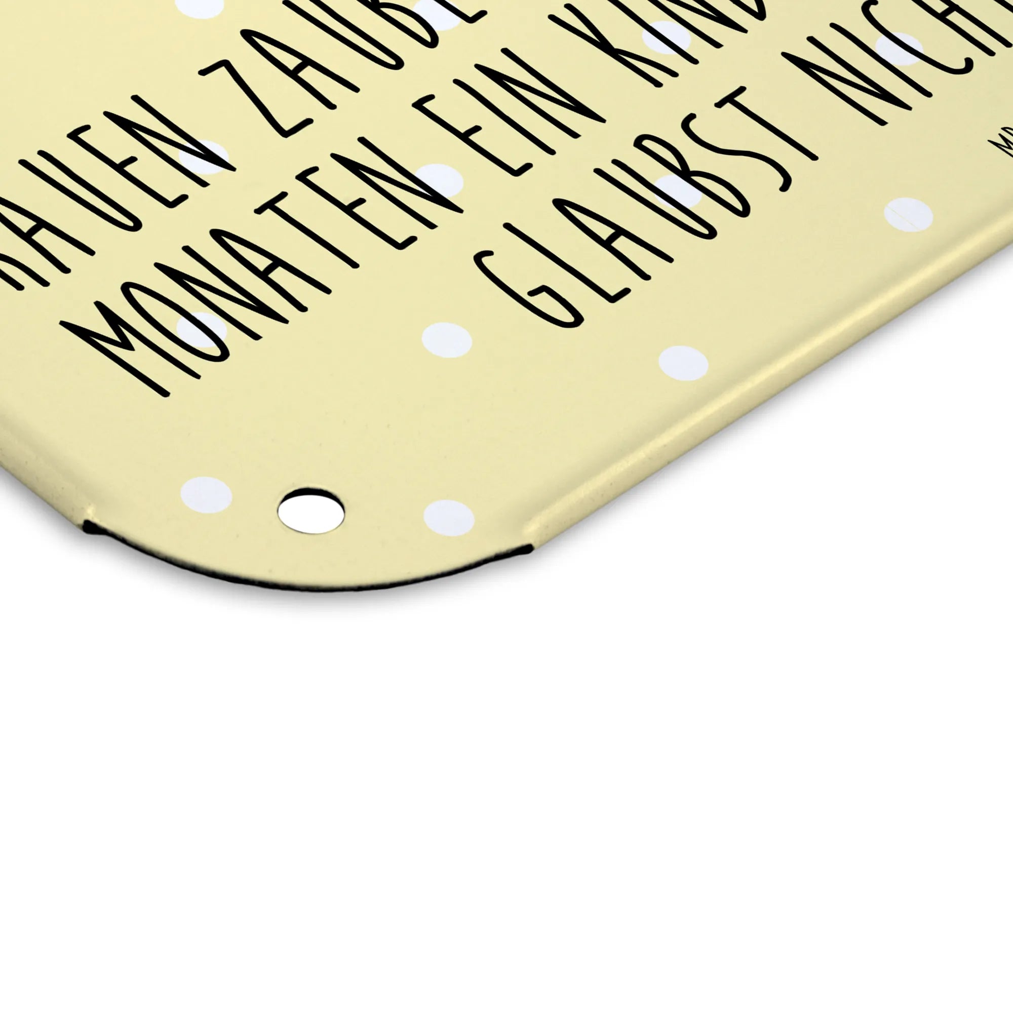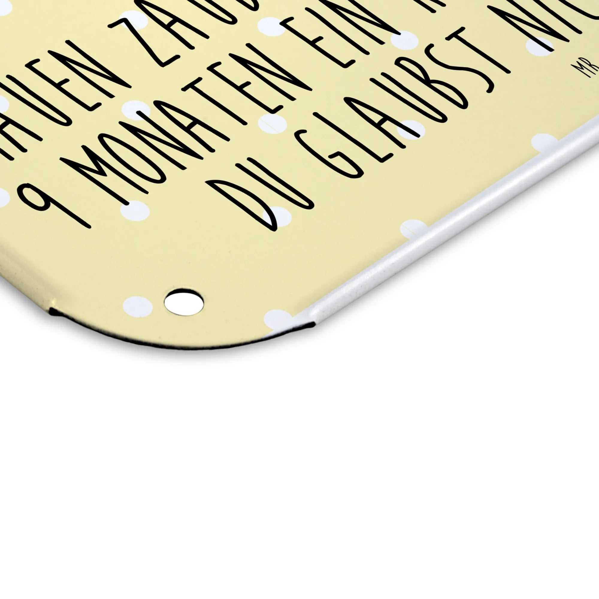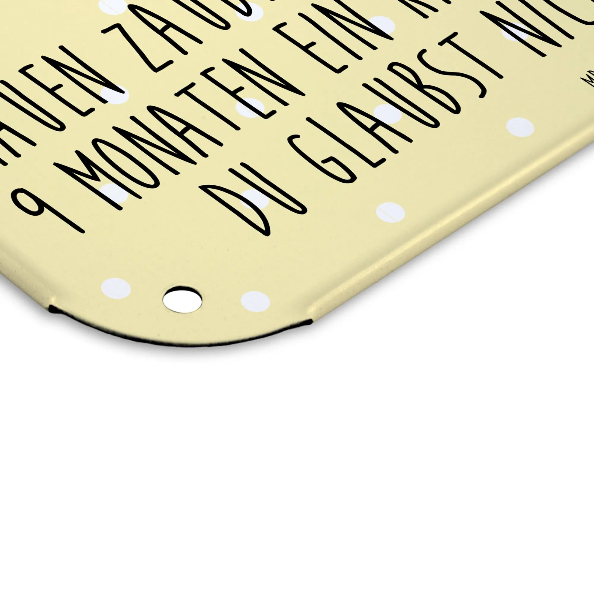 Es ist das optimale Geschenk für Babypartys oder als Aufmerksamkeiten zur Geburt. Durch den humorvollen Spruch und das süße Design bringt es Freude in jedes Zuhause und ist ein schönes Andenken an eine der aufregendsten Phasen im Leben. Also, wenn du auf der Suche nach einem ganz besonderen Geschenk zur Geburt, Schwangerschaft oder einfach nur zur Verschönerung von Wänden bist, dann ist dieses Blechschild der perfekte Begleiter. Ein Stück Lebensfreude, das sich jeder werdende oder frischgebackene Elternteil in die Wohnung hängen möchte!