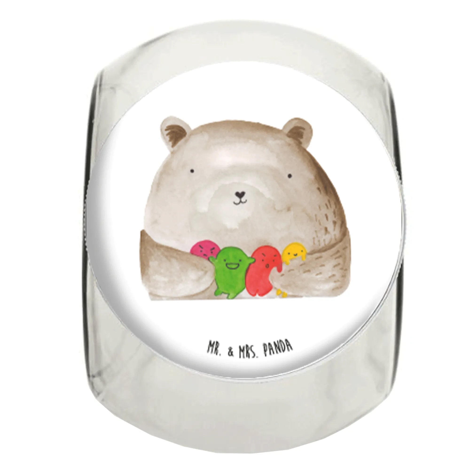 Entdecke das wunderschöne Bonbonglas mit dem bezaubernden Motiv "Bär Gefühl" von Mr. & Mrs. Panda! Dieses Glas ist nicht nur ein praktischer Küchenhelfer, sondern auch ein echter Hingucker in deiner Wohnung. Der niedliche Bär, der viele bunte Kugeln in seinen Händen hält, drückt seine tiefsten Gefühle aus – von strahlender Freude bis hin zu süßer Melancholie.