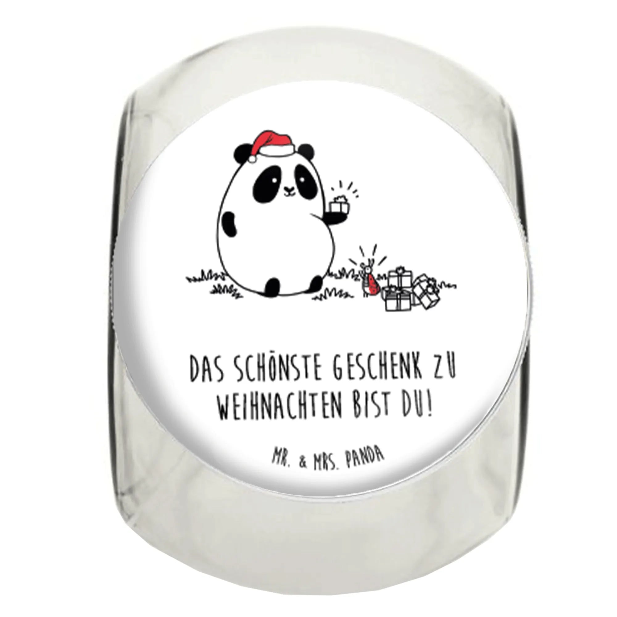Der Aufdruck mit dem Motiv "Easy & Peasy Weihnachtsgeschenk" zeigt einen süßen, zufriedenen Panda, der zwischen Geschenken sitzt und von seinem besten Freund, einem Marienkäfer, beschenkt wird. Der fröhnliche Spruch "Das schönste Geschenk zu Weihnachten bist du!" macht diesen Vorratsbehälter zu einer besonderen Mitbringsel-Idee für die Weihnachtszeit. Die liebevoll handgezeichneten Illustrationen von Mrs. Panda bringen beim Anblick sicherlich ein Lächeln auf jedes Gesicht.