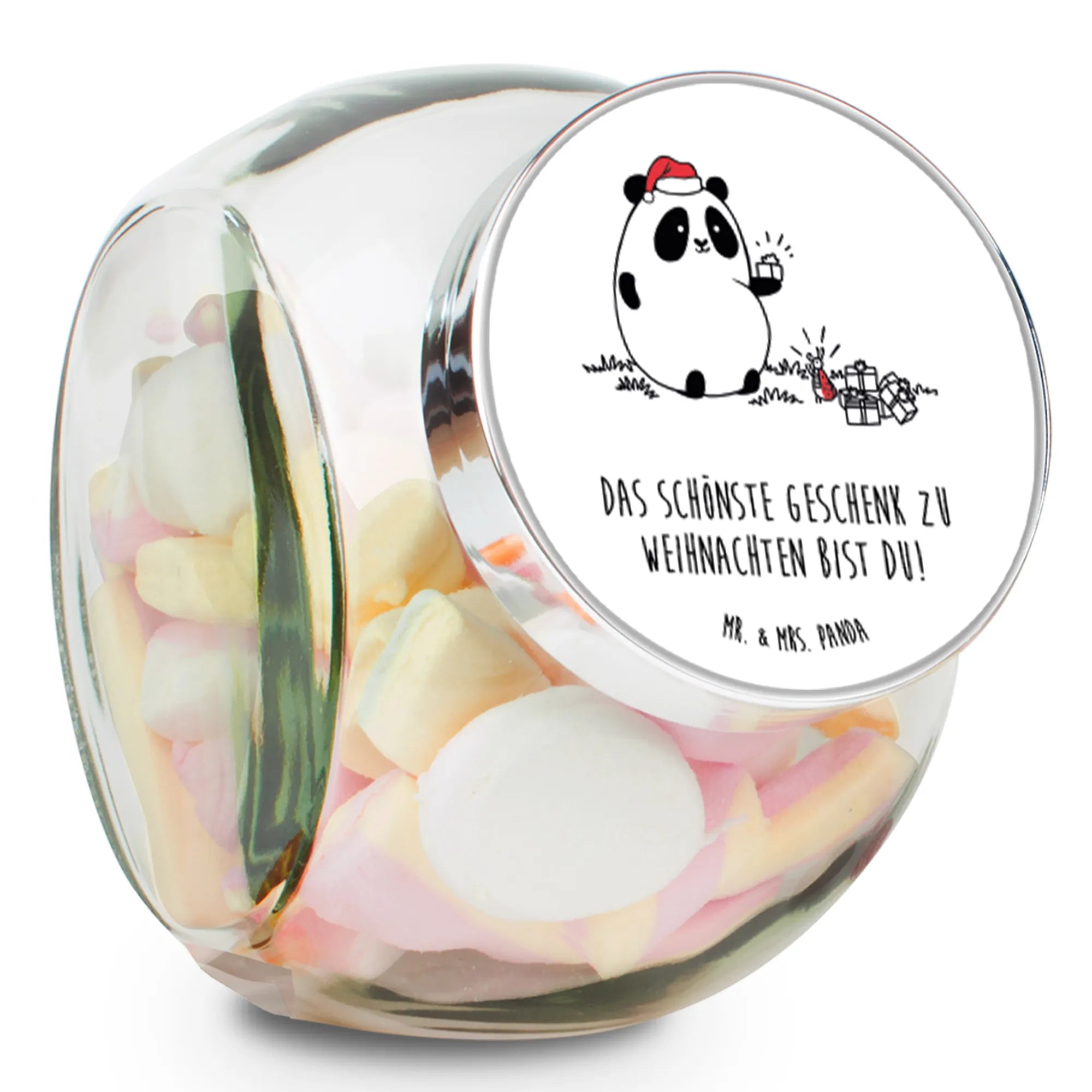 Dieses Bonbonglas von Mr. & Mrs. Panda verleiht deinem Zuhause eine süße Note! Mit 2000 ml Fassungsvermögen und einem Gewicht von nur 400 g ist es perfekt für die Aufbewahrung deiner Snacks. Das Glas ist mit den wunderschönen Motiven und Sprüchen von Mr. & Mrs. Panda geschmückt, die durch die klare, gewölbte Doming*-Beschichtung besonders strahlen. Der silberne Schraubverschluss sorgt dafür, dass alles frisch bleibt. Die Verwendung ist sowohl schräg als auch stehend möglich, sodass du es flexibel in deiner Küche oder auf dem Tisch einsetzen kannst. Verleihe deinem Raum eine persönliche Note!