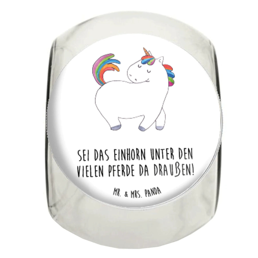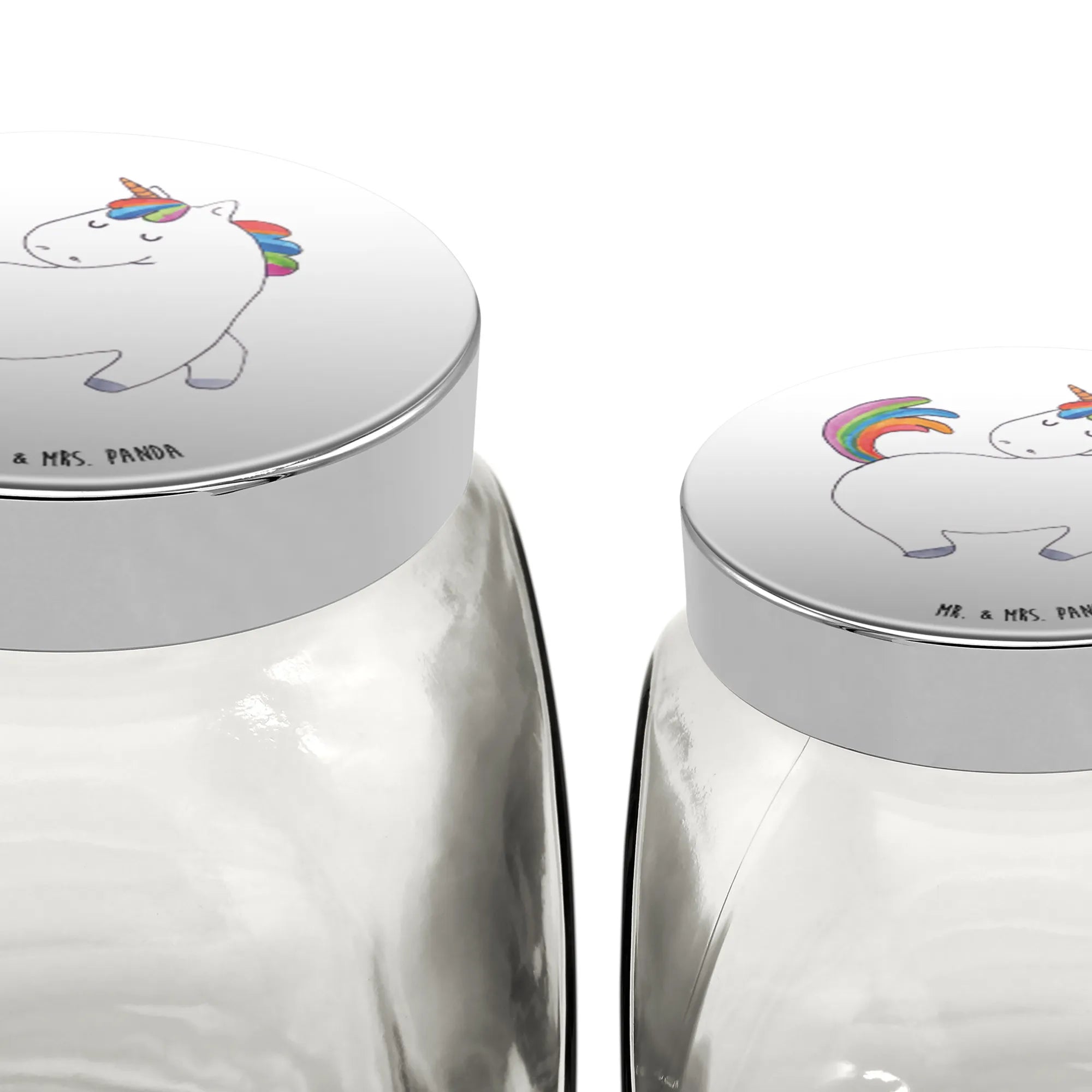 Das wunderschöne Bonbonglas Einhorn stolzierend von Mr. & Mrs. Panda ist nicht nur ein praktischer Küchenhelfer, sondern auch ein zauberhaftes Deko-Element. Ob Bonbons, Kekse, Tee oder Kaffee – dieses Bonbonglas hält stets Frische und Aroma bei!