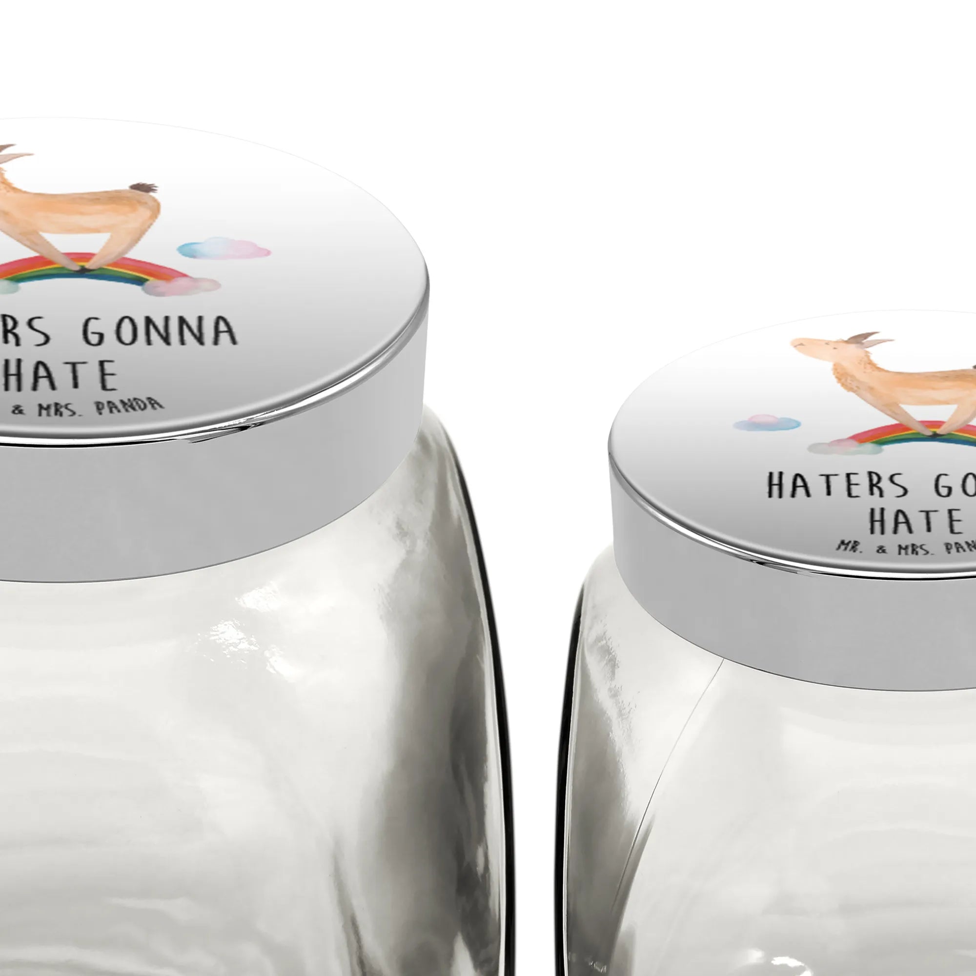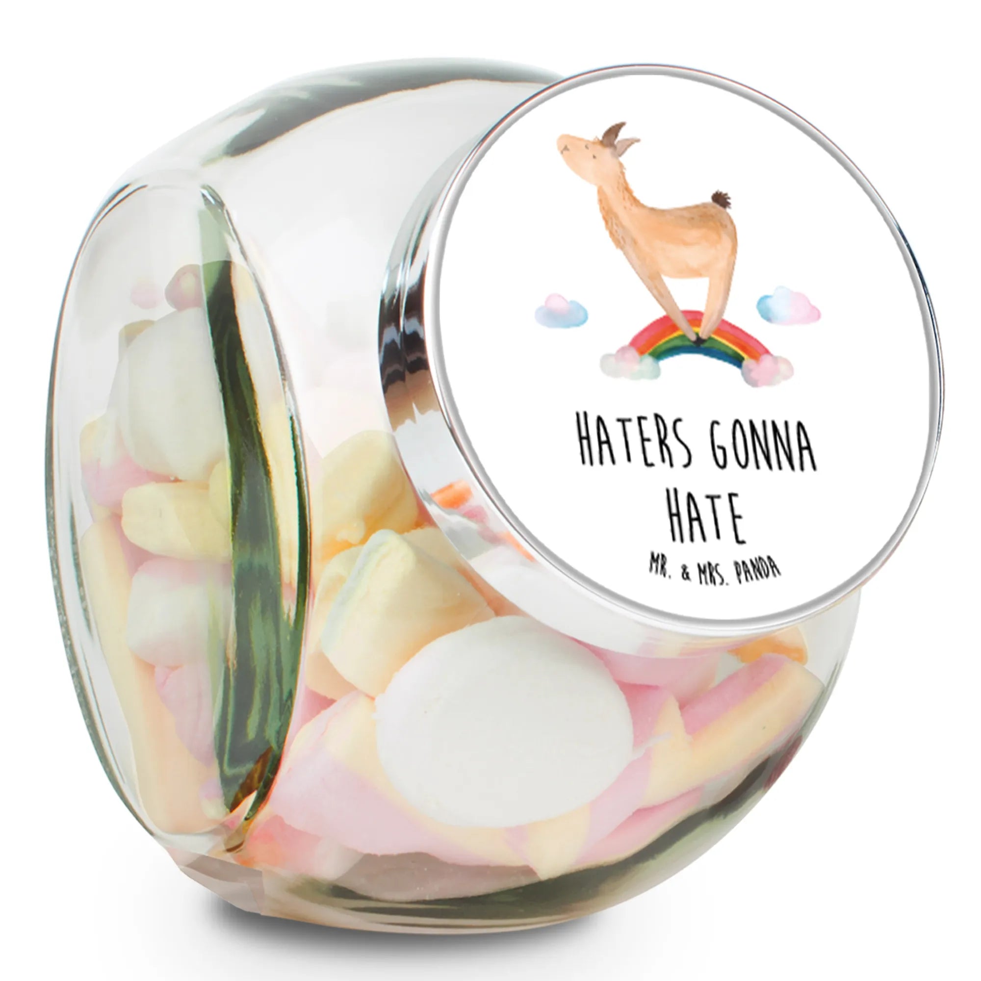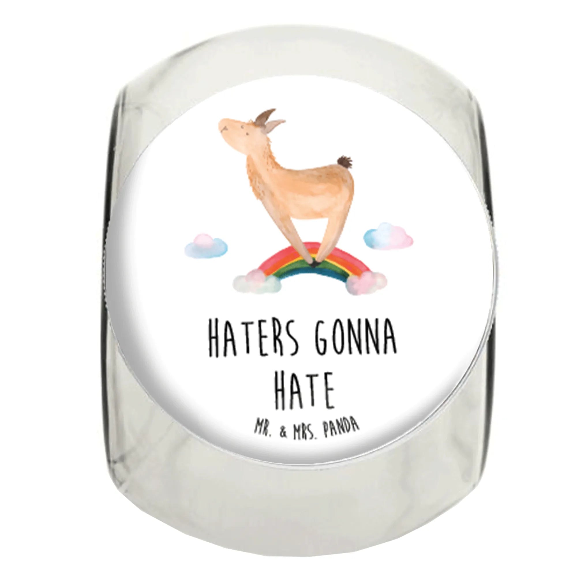 Das süße Lama, das über den Regenbogen hüpft, ist nicht nur ein toller Blickfang, sondern auch ein tolles Statement: "Haters gonna hate". Damit ist das Bonbonglas nicht nur praktisch, sondern auch ein tolles Gesprächsthema und eine witzige Deko für deine Küche oder dein Wohnzimmer.
