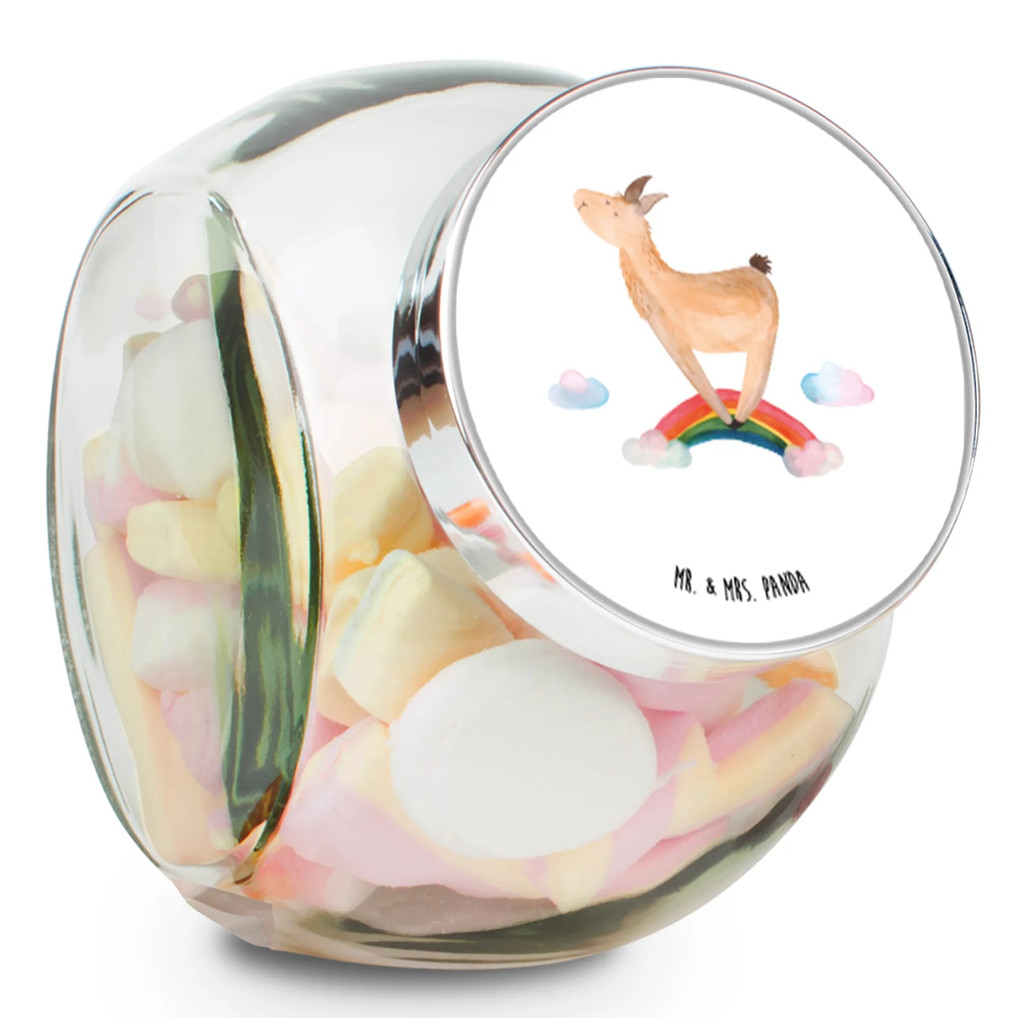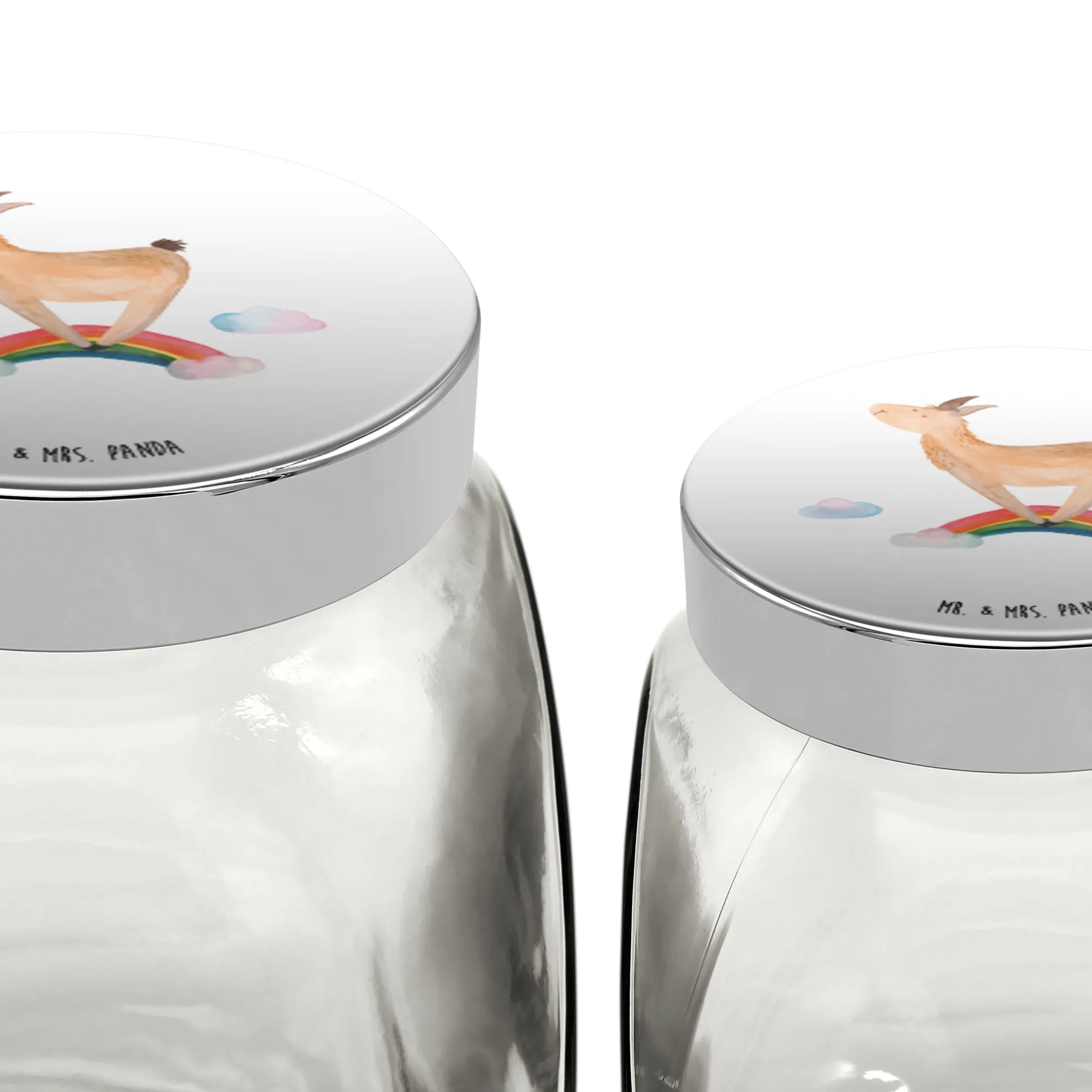 Das wunderschöne Bonbonglas von Mr. & Mrs. Panda mit dem liebevoll gestalteten Lama Regenbogen-Motiv ist das perfekte Geschenk für alle Lama-Fans und Süßigkeitenliebhaber.