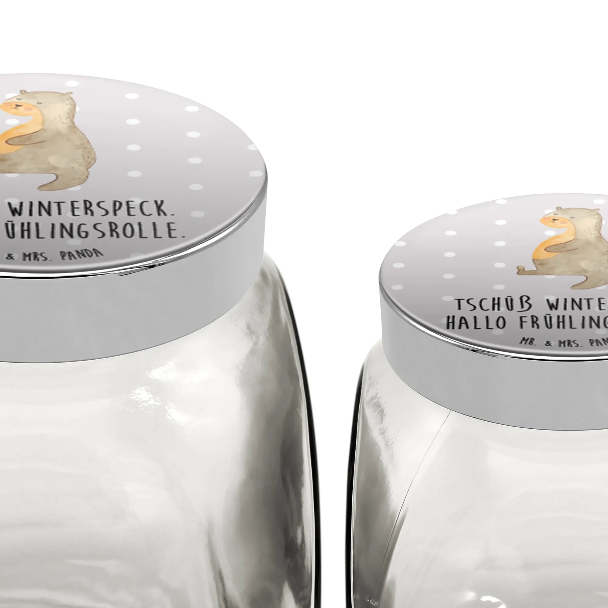 Mit seinem niedlichen Motiv eines zufriedenen Otters und dem witzigen Spruch "Tschüß Winterspeck. Hallo Frühlingsrolle!" zaubert es nicht nur ein Lächeln ins Gesicht, sondern bietet auch einen praktischen Nutzen in der Küche. Dieses Bonbonglas ist multifunktional und ideal für die Aufbewahrung von Süßigkeiten, Keksen, Kaffee, Tee, Müslis, Gewürzen und mehr.