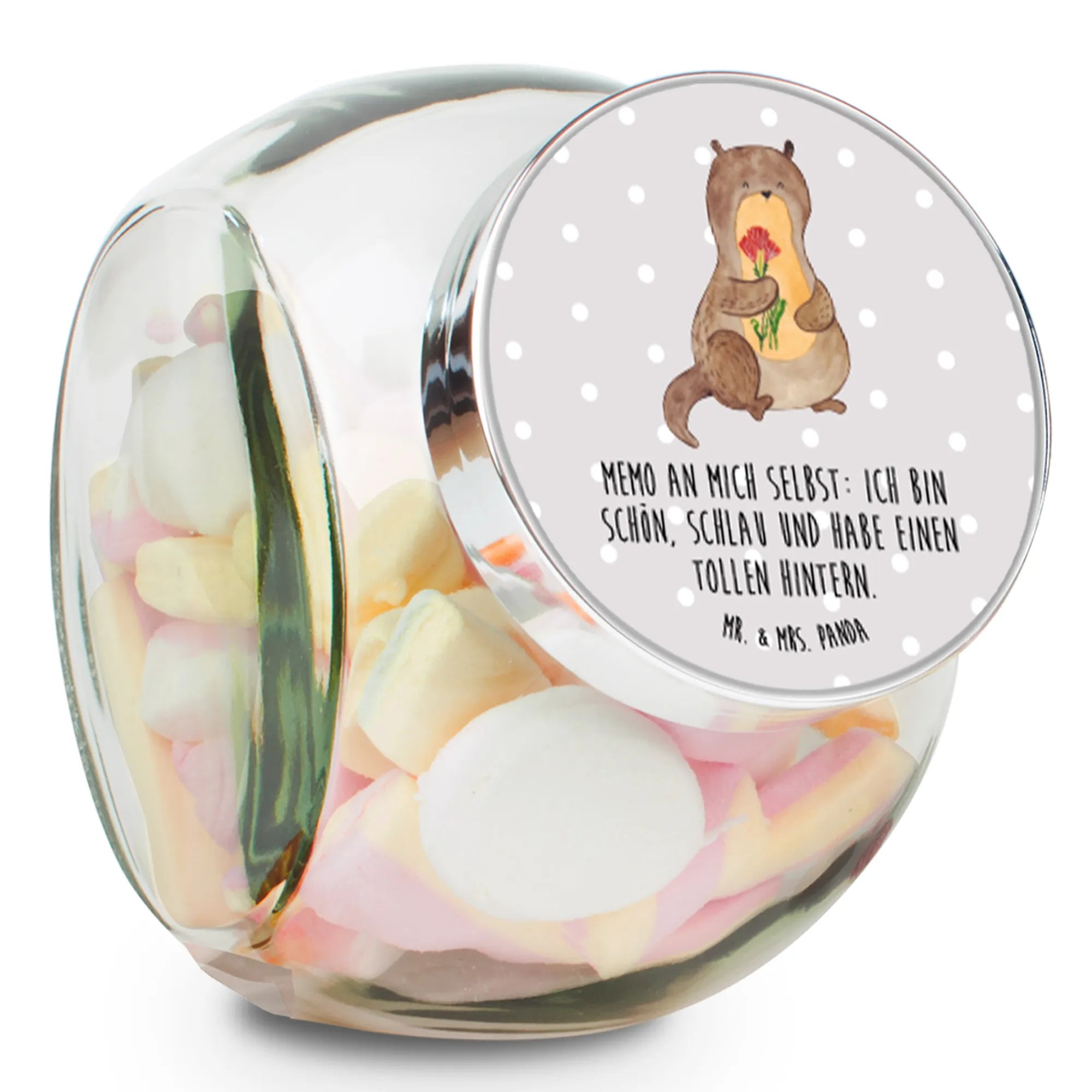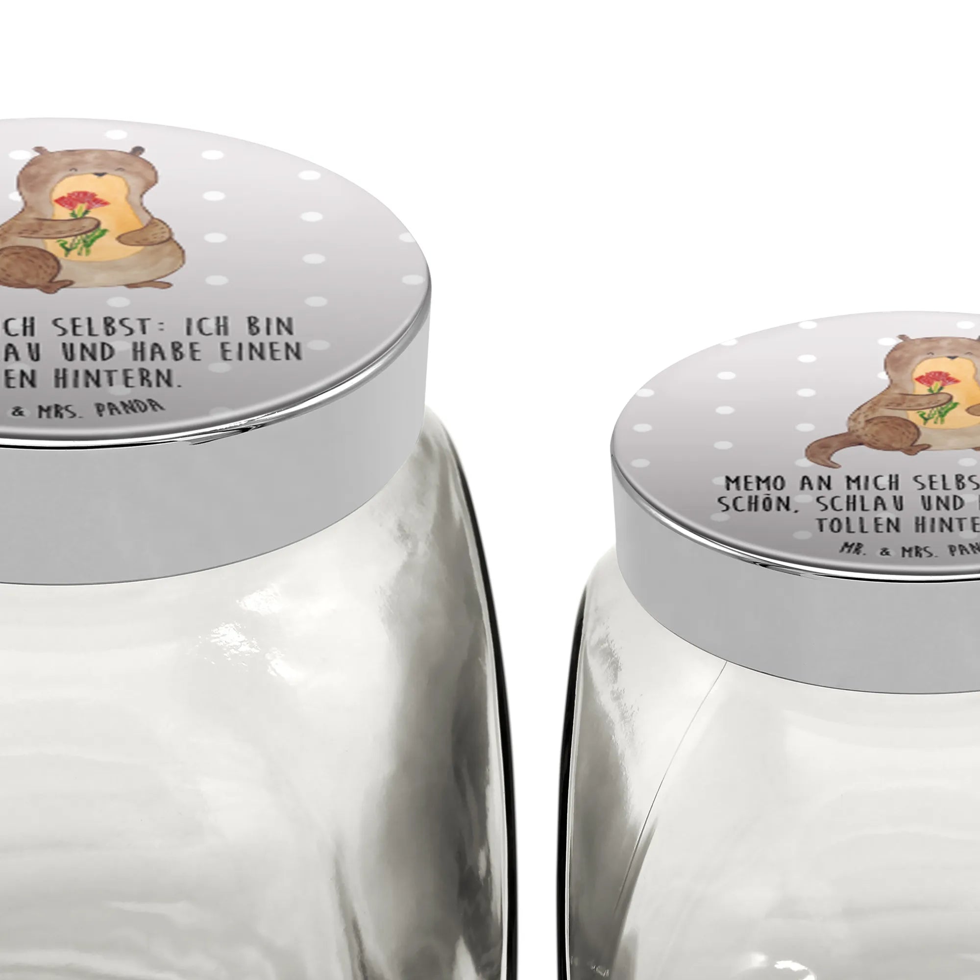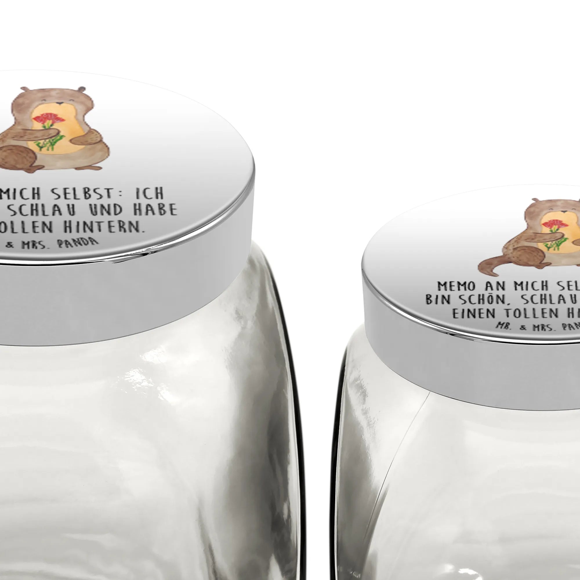 Dieses Bonbonglas bringt Sonnenschein auf dein Regal: Ein niedlicher Otter hält einen kunterbunten Blumenstrauß und schaut dich voller Freude an. Das Motiv „Otter Blumenstrauß“ aus der Otter - Kollektion von Mr. & Mrs. Panda ist liebevoll aquarellgezeichnet und mit dem frechen Spruch „Memo an mich selbst: ich bin schön, schlau und habe einen tollen Hintern.“ versehen. Ein Geschenk, das garantiert ein Lächeln hervorruft.