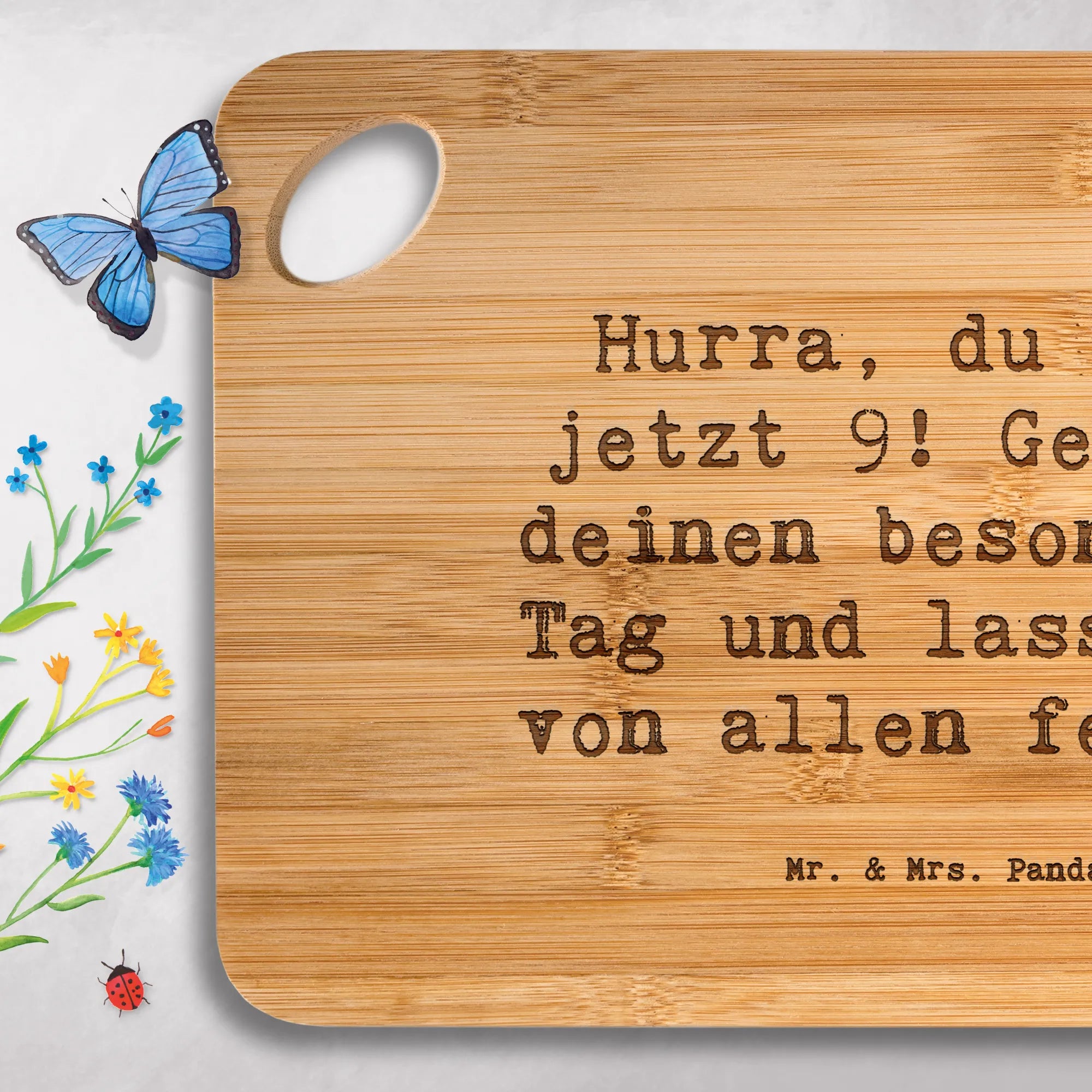 Hurra, du bist jetzt 9! – Mit diesem fröhlichen Schneidebrett aus der Geburtstagskollektion von Mr. & Mrs. Panda schenkst du einem besonderen Menschen jeden Morgen ein Lächeln. Der liebevoll gestaltete Spruch "Hurra, du bist jetzt 9! Genieße deinen besonderen Tag und lass dich von allen feiern!" macht das Brett zu einem herzerwärmenden Geschenk für Kinder, die ihren 9. Geburtstag feiern.