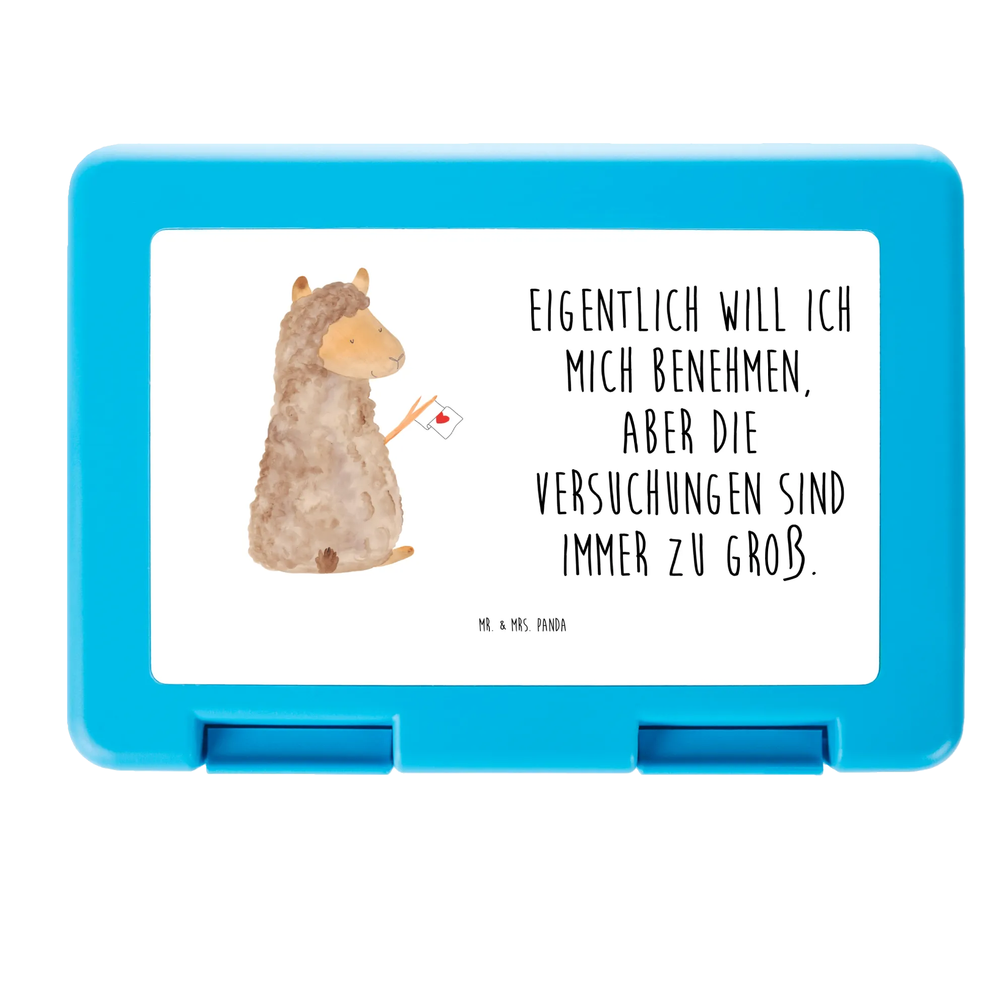 Mit dieser niedlichen Brotdose wird jede Pause zum Vergnügen. Das handgezeichnete Alpaka hält eine Fahne mit Herz, dazu der witzige Spruch: „Eigentlich will ich mich benehmen, aber die Versuchungen sind immer zu groß.“ – ein echtes Lächeln-für-den-Tag-Design von Mr. & Mrs. Panda. Perfekt als Brotdose für Schule, Arbeit oder Picknick.