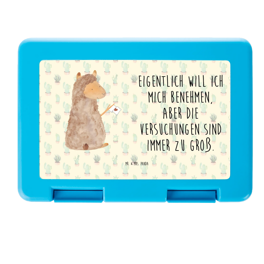 Mit dieser niedlichen Brotdose wird jede Pause zum Vergnügen. Das handgezeichnete Alpaka hält eine Fahne mit Herz, dazu der witzige Spruch: „Eigentlich will ich mich benehmen, aber die Versuchungen sind immer zu groß.“ – ein echtes Lächeln-für-den-Tag-Design von Mr. & Mrs. Panda. Perfekt als Brotdose für Schule, Arbeit oder Picknick.