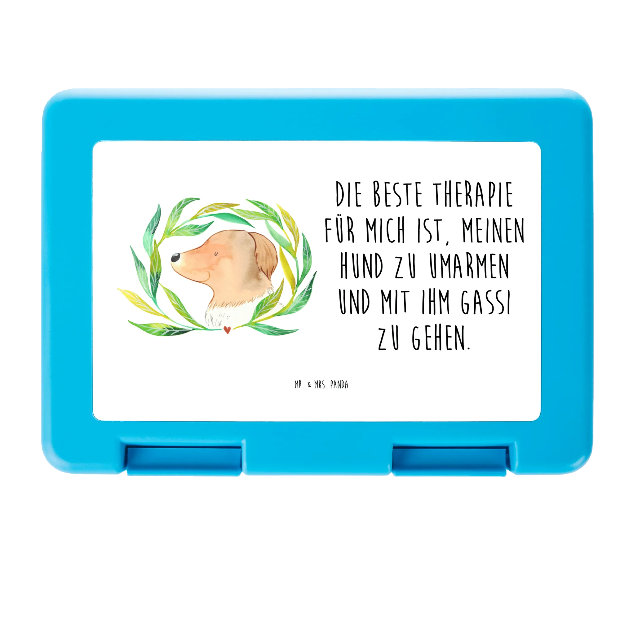Unsere wunderschöne Brotbox mit dem niedlichen Motiv "Hund Ranke" aus der Hunde Kollektion von Mr. & Mrs. Panda ist das perfekte Geschenk für alle Hundeliebhaber! Ob für die Schule, bei der Arbeit oder für ein Picknick im Park, diese praktische Brotdose kombiniert Funktionalität mit einem liebevollen Design, das Tierfreunde begeistert. Mit der charmanten Darstellung eines Hundes, der eine Blume in der Hand hält, ist sie nicht nur nützlich, sondern bringt auch ein Lächeln ins Gesicht. Zudem ist sie mit dem bezaubernden Spruch "Die beste Therapie für mich ist, meinen Hund zu umarmen und mit ihm Gassi zu gehen" versehen, der die unbeschwerte Freude und die Liebe zu unseren vierbeinigen Freunden perfekt widerspiegelt.