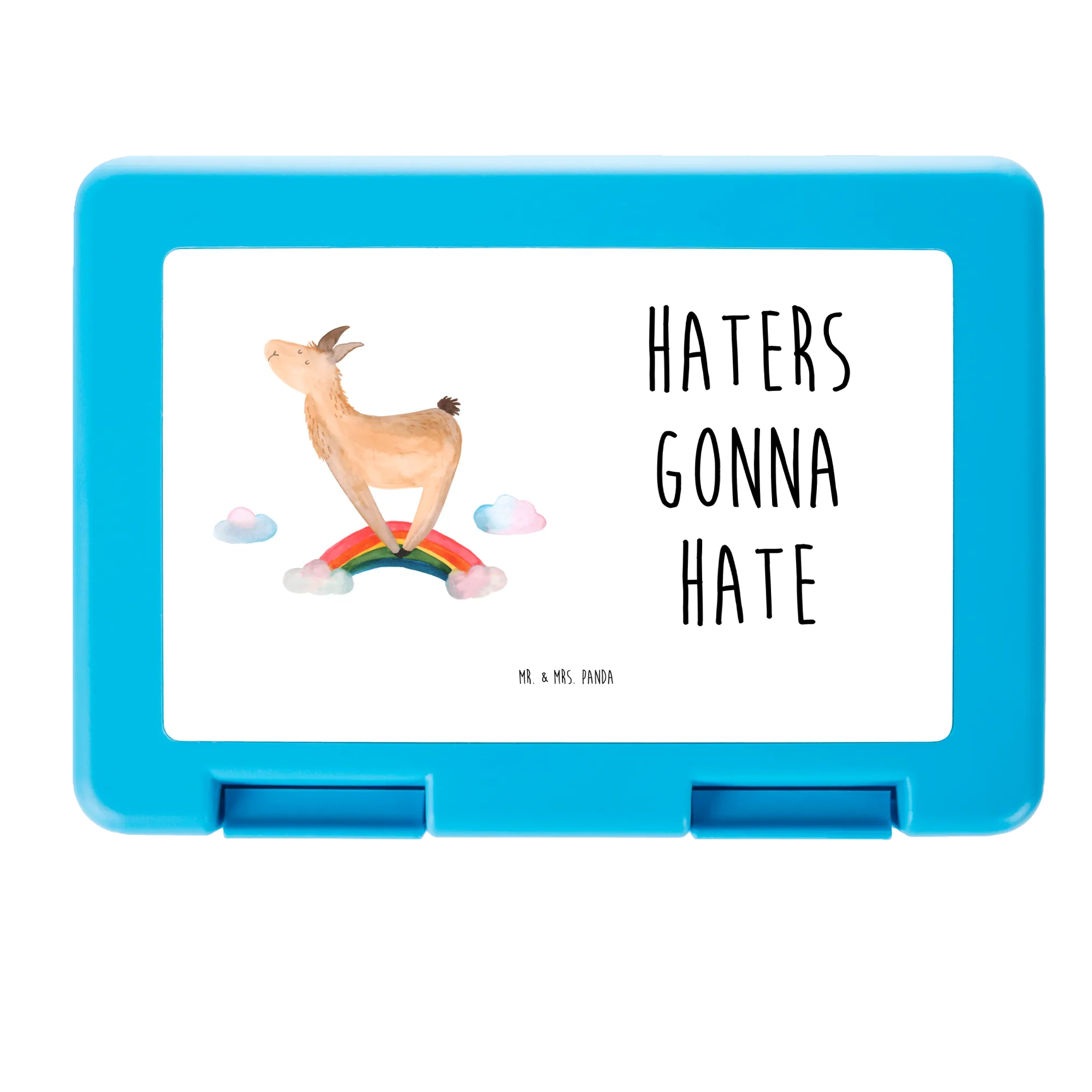 Diese wundervolle Brotbox von Mr. & Mrs. Panda ist nicht nur funktional, sondern auch ein absoluter Hingucker! Bedruckt mit einem bezaubernden Lama-Motiv im Regenbogen-Look, sorgt sie für gute Laune schon beim Frühstück oder dem Pausenbrot. Mit der Aufschrift 'Haters gonna hate' bringt sie einen Hauch von Humor in den Schul- und Arbeitsalltag.