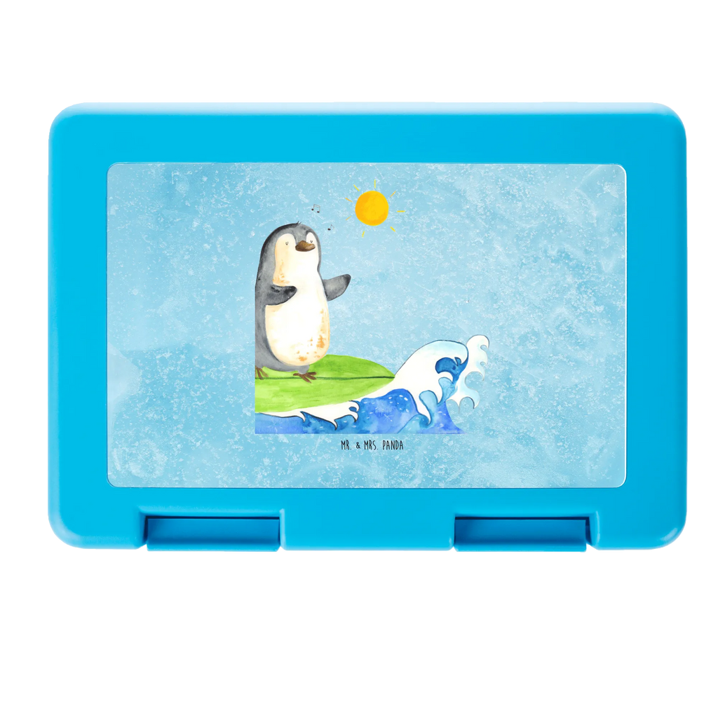 Mr. & Mrs. Panda Brotdose „Pinguin Surfer“ – Ein kleiner Sommertraum für die Pause. Der fröhliche Pinguin auf dem Surfbrett reitet über eisblaue Wellen und bringt gute Laune in jede Brotzeit. Das Motiv stammt aus der liebevoll gestalteten Pinguin - Kollektion und wurde mit viel Herz handgezeichnet.