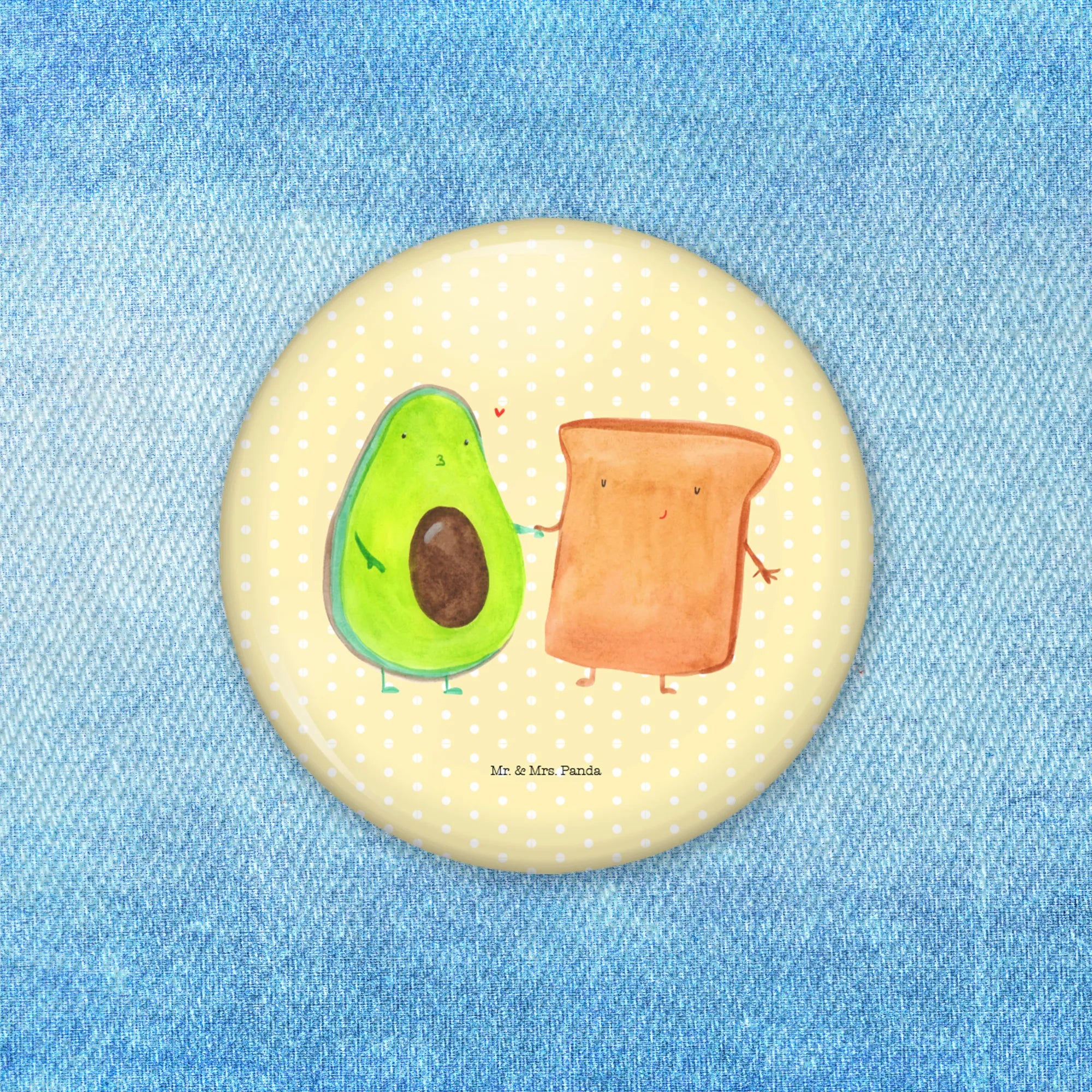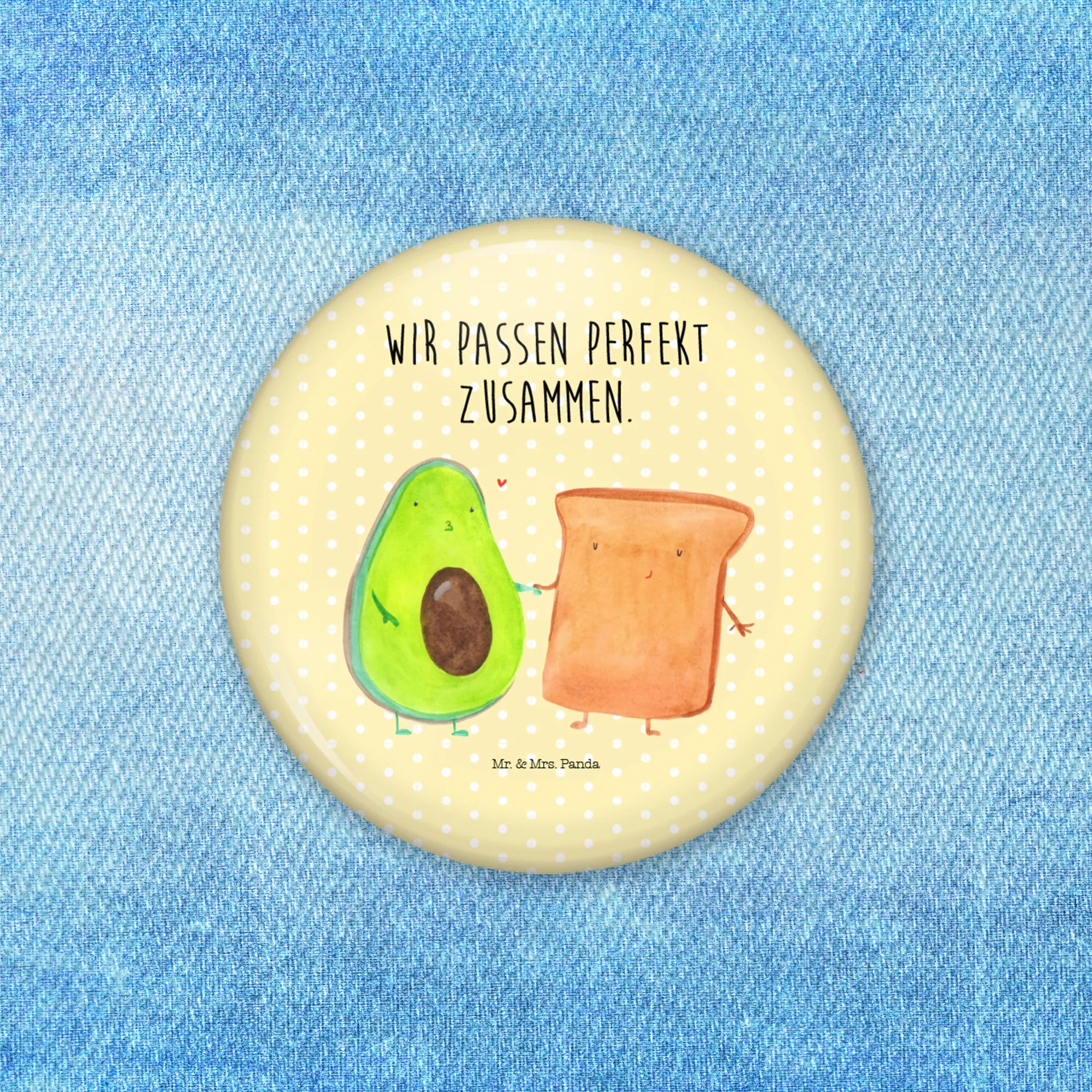 Der 50mm Button mit dem süßen Motiv Avocado + Toast von Mr. & Mrs. Panda ist nicht nur ein absolutes Must-Have für Avocado-Liebhaber, sondern auch das perfekte Geschenk für Dein Liebespaar oder den besten Freund! 🌟 Die kleine, niedliche Avocado und der charmante Toast, die sich verliebt an den Händen halten, bringen nicht nur ein Lächeln auf die Gesichter, sondern symbolisieren auch die perfekte Verbindung zwischen zwei Menschen. Egal ob für eine Verlobungsparty, zur Hochzeit oder einfach nur als süße Geste für Deinen Partner oder Deine Partnerin – dieser Button ist eine wunderbare Möglichkeit, Deine Zuneigung auszudrücken.