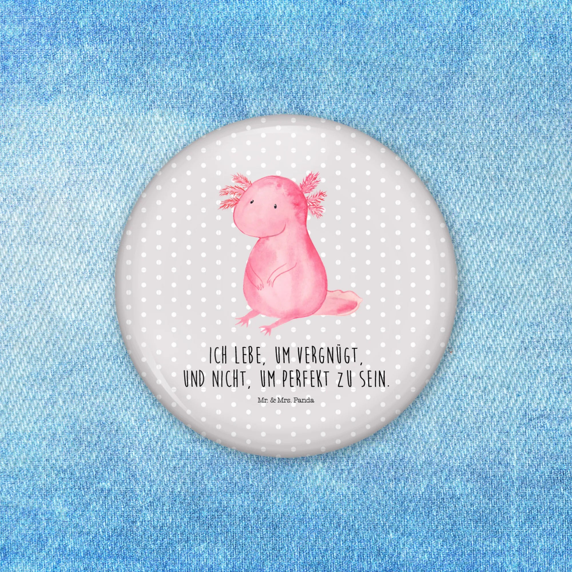 Mach das Leben deiner Lieben bunter und glücklicher mit diesem wunderbaren Axolotl Button von Mr. & Mrs. Panda – ein Geschenk, das von Herzen kommt.