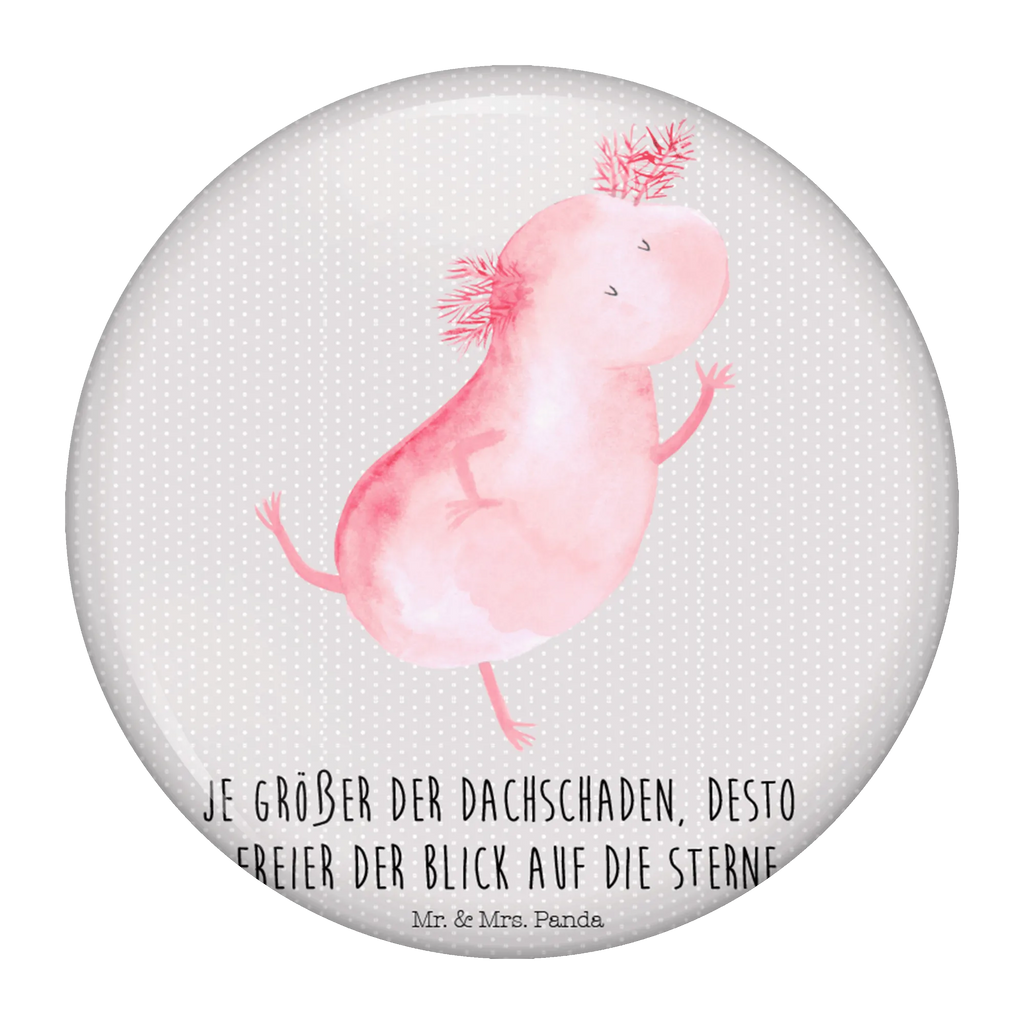 Der 50mm Button mit dem fröhlichen Motif "Axolotl tanzt" aus der Axolotl Kollektion von Mr. & Mrs. Panda ist das perfekte Geschenk für alle, die das Leben lieben und ein wenig verrückt sind. 🎉 Dieser niedliche Anstecker, mit einem lächelnden Axolotl, bringt sofort Freude und eine gute Laune in jeden Alltag. Die farbenfrohe Illustration dieses einzigartigen Schwanzlurchs erinnert uns daran, dass das Leben mehr ist als nur ernst zu sein.