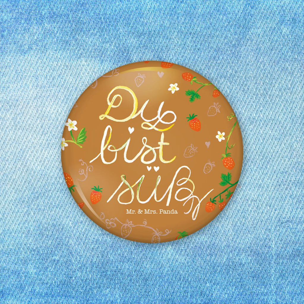 Der 50mm Button "Erdbeeren - Du bist süß" aus der Wild & Free-Kollektion von Mr. & Mrs. Panda ist nicht nur ein einfacher Anstecker, sondern ein charmantes Accessoire, das jedem Outfit das gewisse Etwas verleiht. Dieser süße Button eignet sich perfekt als Geschenk für Deine beste Freundin oder Deinen Partner an besonderen Anlässen wie dem Jahrestag oder einfach, um mal wieder ein Kompliment zu verteilen.