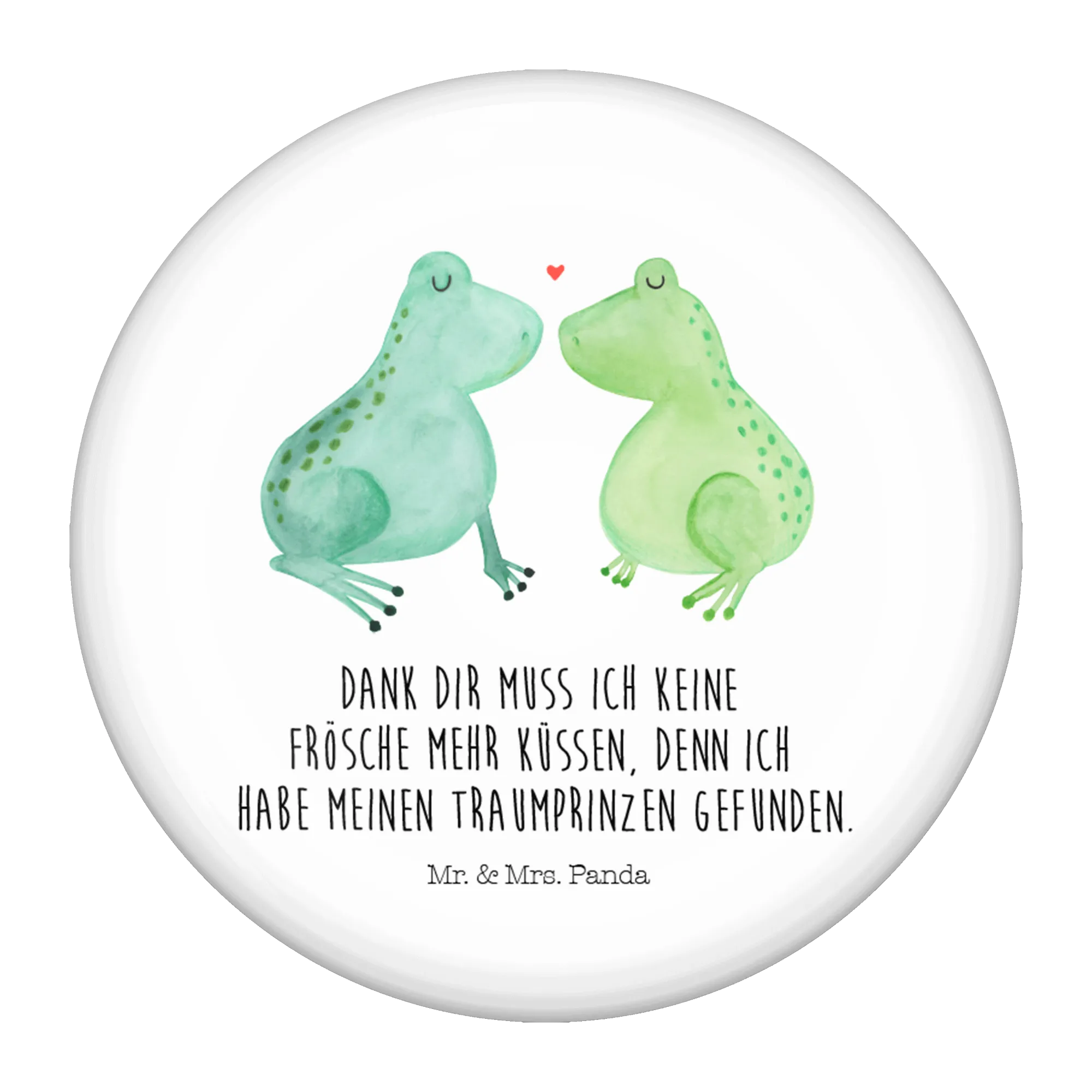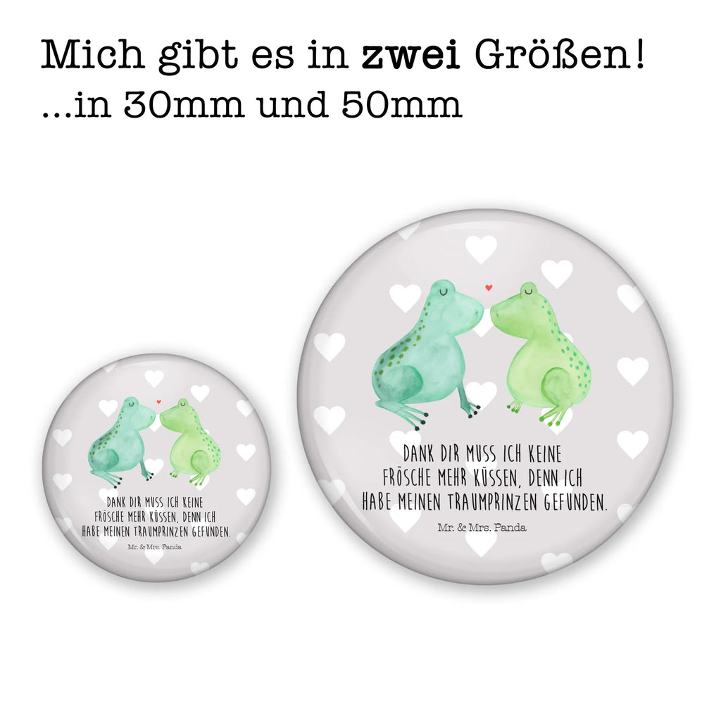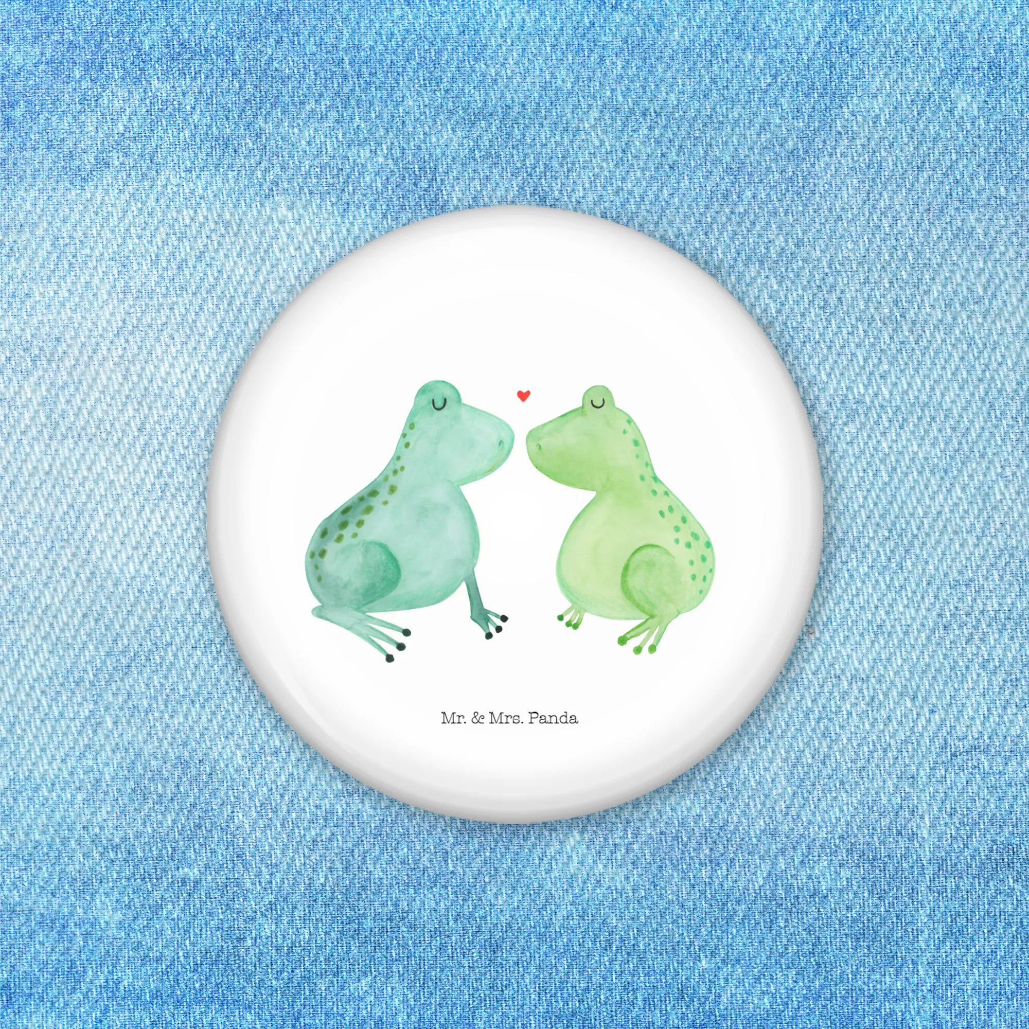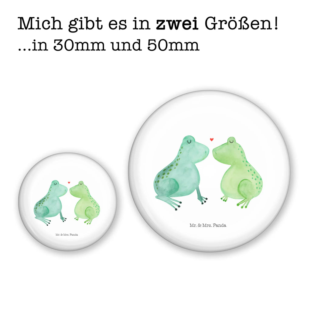 Bist du auf der Suche nach dem perfekten Geschenk, das Liebe, Freude und ein bisschen Magie ausstrahlt? Dann ist unser 50mm Button mit dem süßen Motiv "Frosch Liebe" aus der schönen Liebe Kollektion von Mr. & Mrs. Panda genau das Richtige für dich! Dieser zauberhafte Button zeigt zwei niedliche Frösche, die sich verliebt gegenüberstehen, während über ihren Köpfen ein rotes Herz schwebt. Damit spricht er alle Verliebten, frisch Verlobten und Hochzeitspaare an. Egal ob zum Jahrestag, Hochzeitstag oder einfach nur als kleines Liebesgeschenk – dieser Button ist ein wahrer Liebesbeweis!
