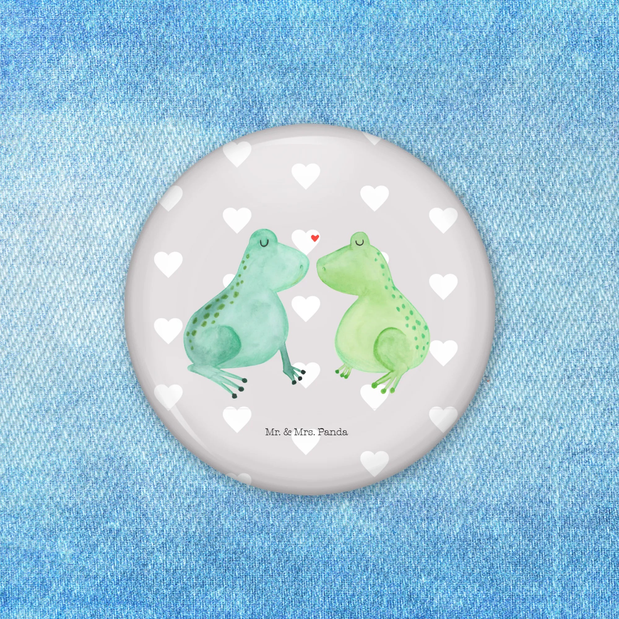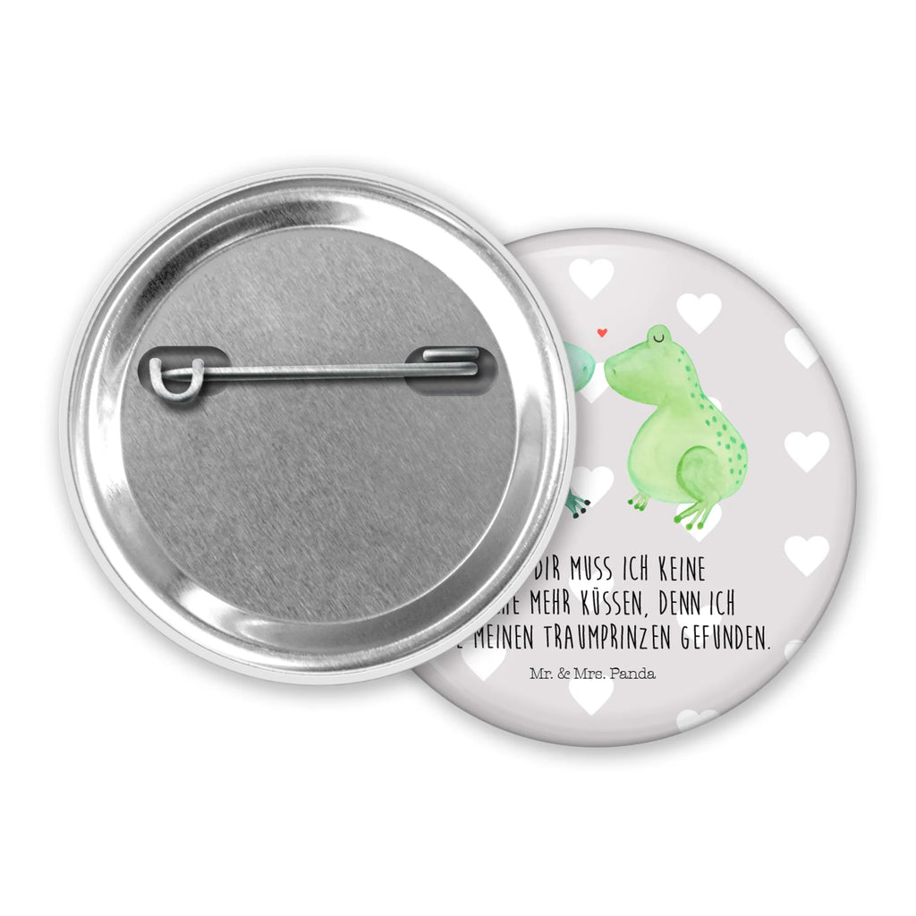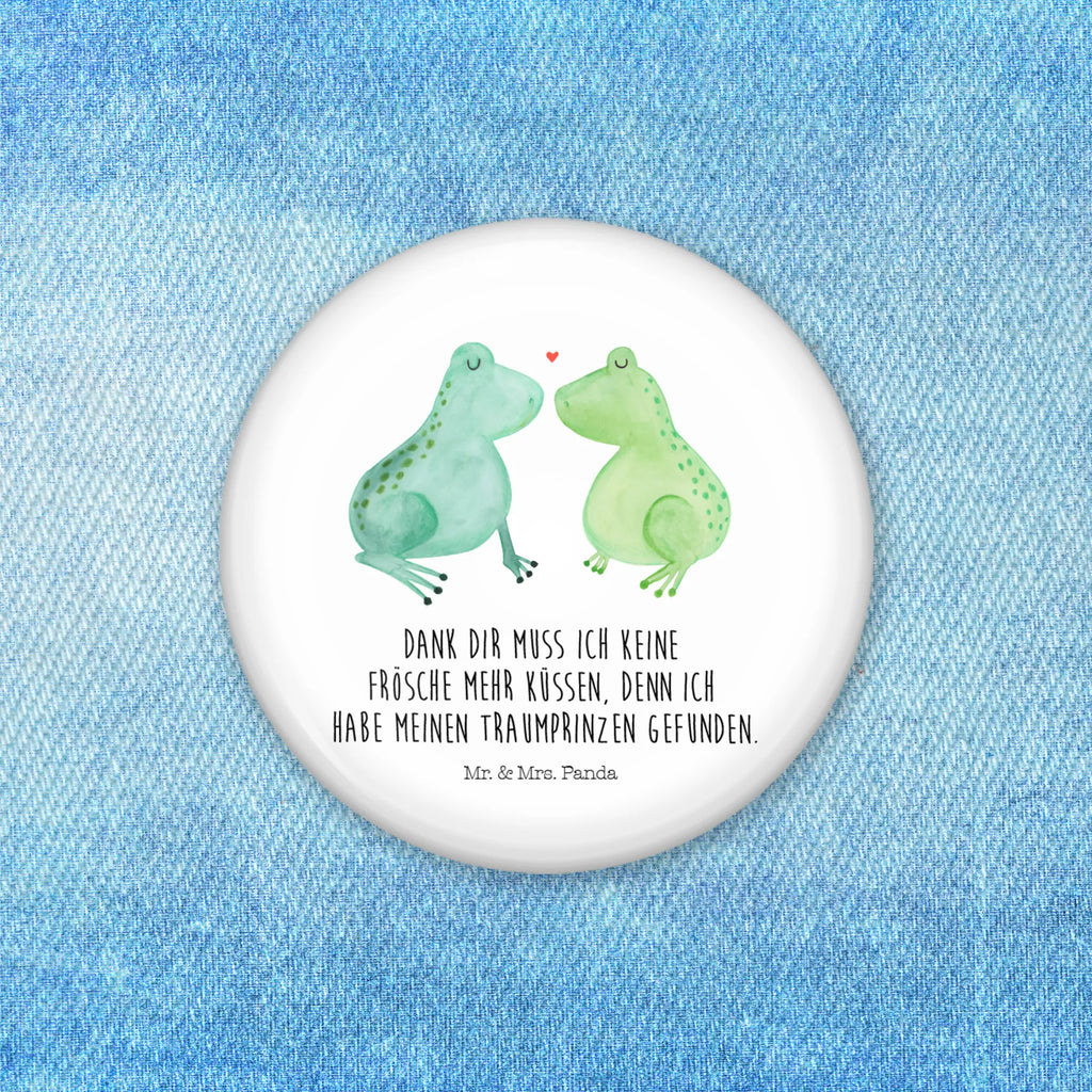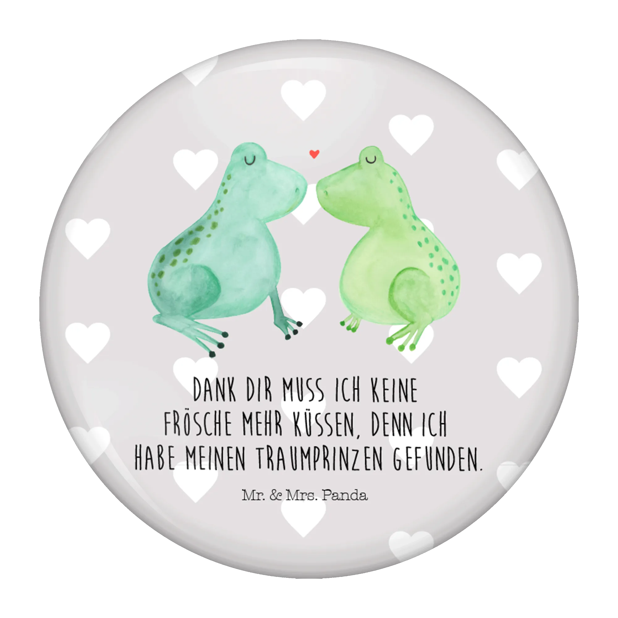 Bist du auf der Suche nach dem perfekten Geschenk, das Liebe, Freude und ein bisschen Magie ausstrahlt? Dann ist unser 50mm Button mit dem süßen Motiv "Frosch Liebe" aus der schönen Liebe Kollektion von Mr. & Mrs. Panda genau das Richtige für dich! Dieser zauberhafte Button zeigt zwei niedliche Frösche, die sich verliebt gegenüberstehen, während über ihren Köpfen ein rotes Herz schwebt. Damit spricht er alle Verliebten, frisch Verlobten und Hochzeitspaare an. Egal ob zum Jahrestag, Hochzeitstag oder einfach nur als kleines Liebesgeschenk – dieser Button ist ein wahrer Liebesbeweis!