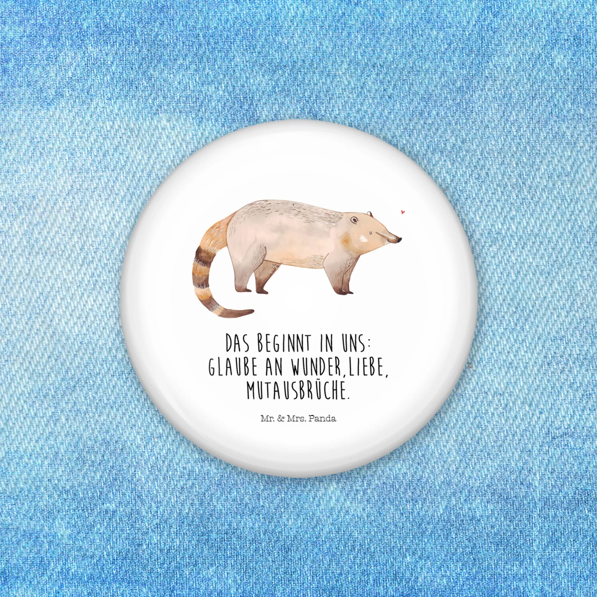 Entdecke unseren bezaubernden 50mm Button mit dem süßen Nasenbär-Motiv aus der Small World Kollektion von Mr. & Mrs. Panda! 🌟 Dieser Anstecker ist nicht nur ein hübsches Accessoire, sondern auch ein perfektes Geschenk für Tierliebhaber und Freunde der guten Laune.