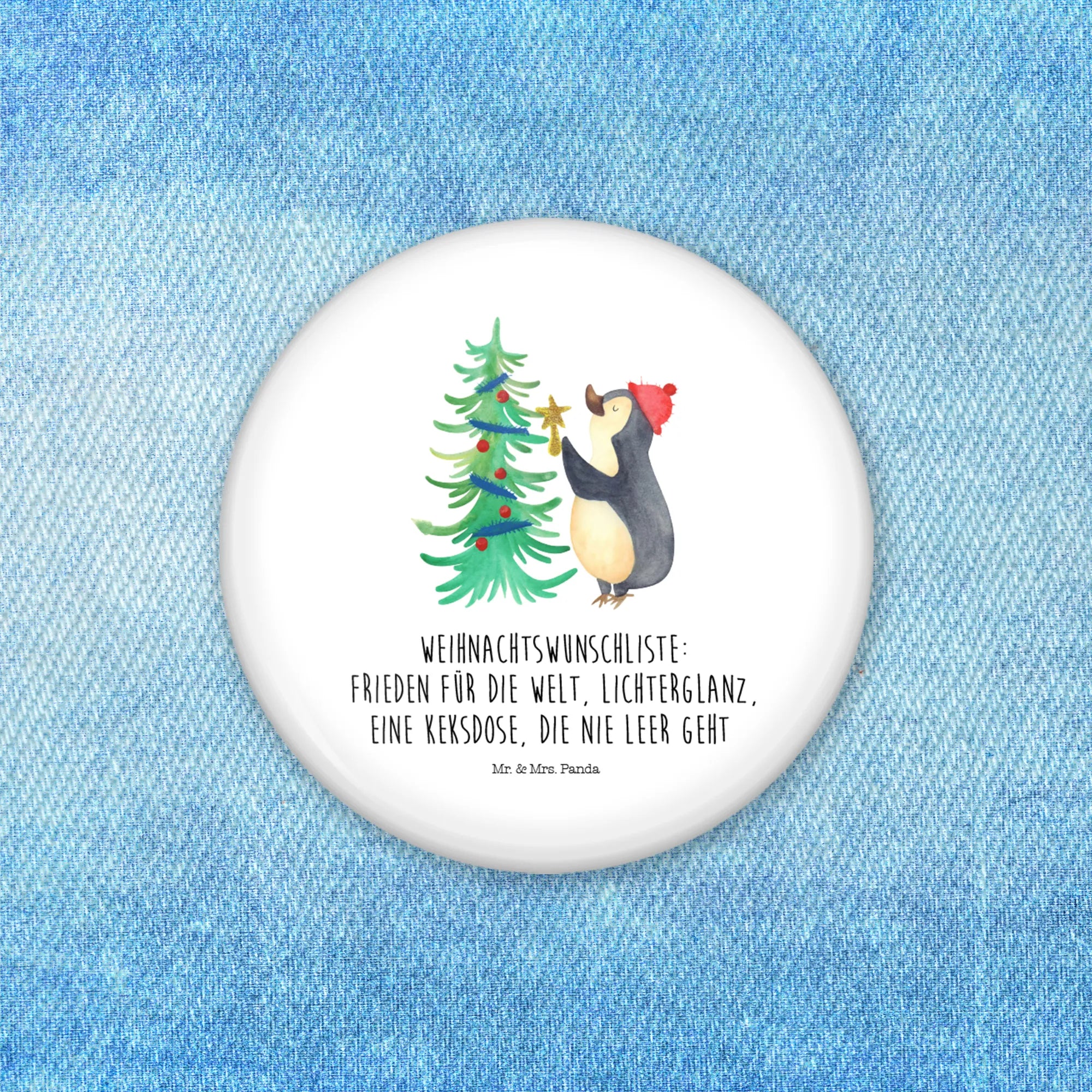 Mit dem Motto "Weihnachtswunschliste: Frieden für die Welt, Lichterglanz und eine Keksdose, die niemals leer geht" bringt unser Button nicht nur Freude, sondern auch eine positive Botschaft mit sich. Ideal für den Nikolaus, den Advent oder als kleine Aufmerksamkeit zu Heiligabend. Die Kombination aus Pinguin und Weihnachtsbaum macht ihn zu einem zauberhaften Teil deiner Weihnachtsdeko oder sorgt für fröhliche Akzente auf jeder Weihnachtsfeier.