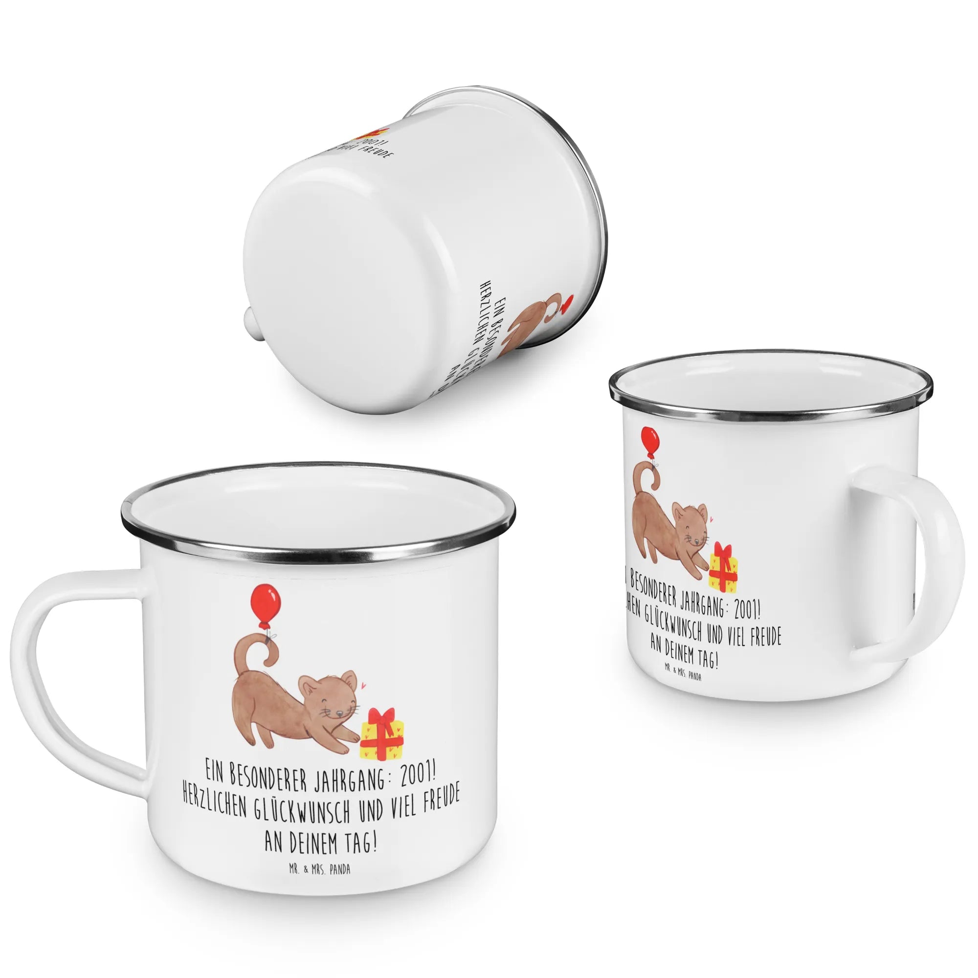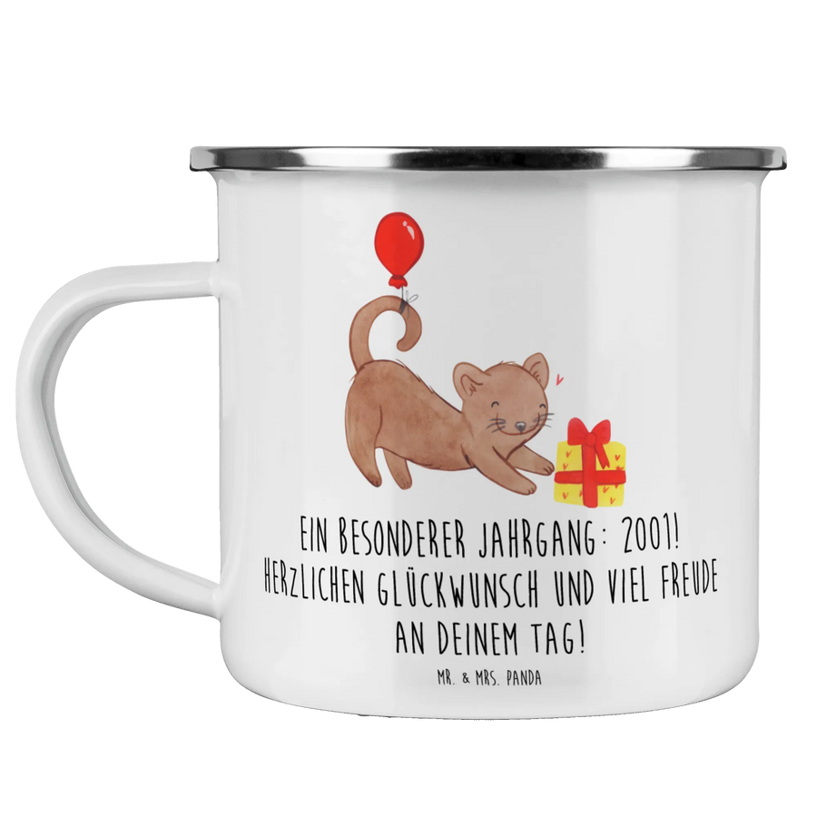 Die perfekte Camping Emaille Tasse von Mr. & Mrs. Panda ist das ideale Geschenk für alle, die im Jahr 2001 das Licht der Welt erblickt haben. Ob zum Geburtstag oder einfach so, diese Tasse zaubert jedem ein Lächeln ins Gesicht.