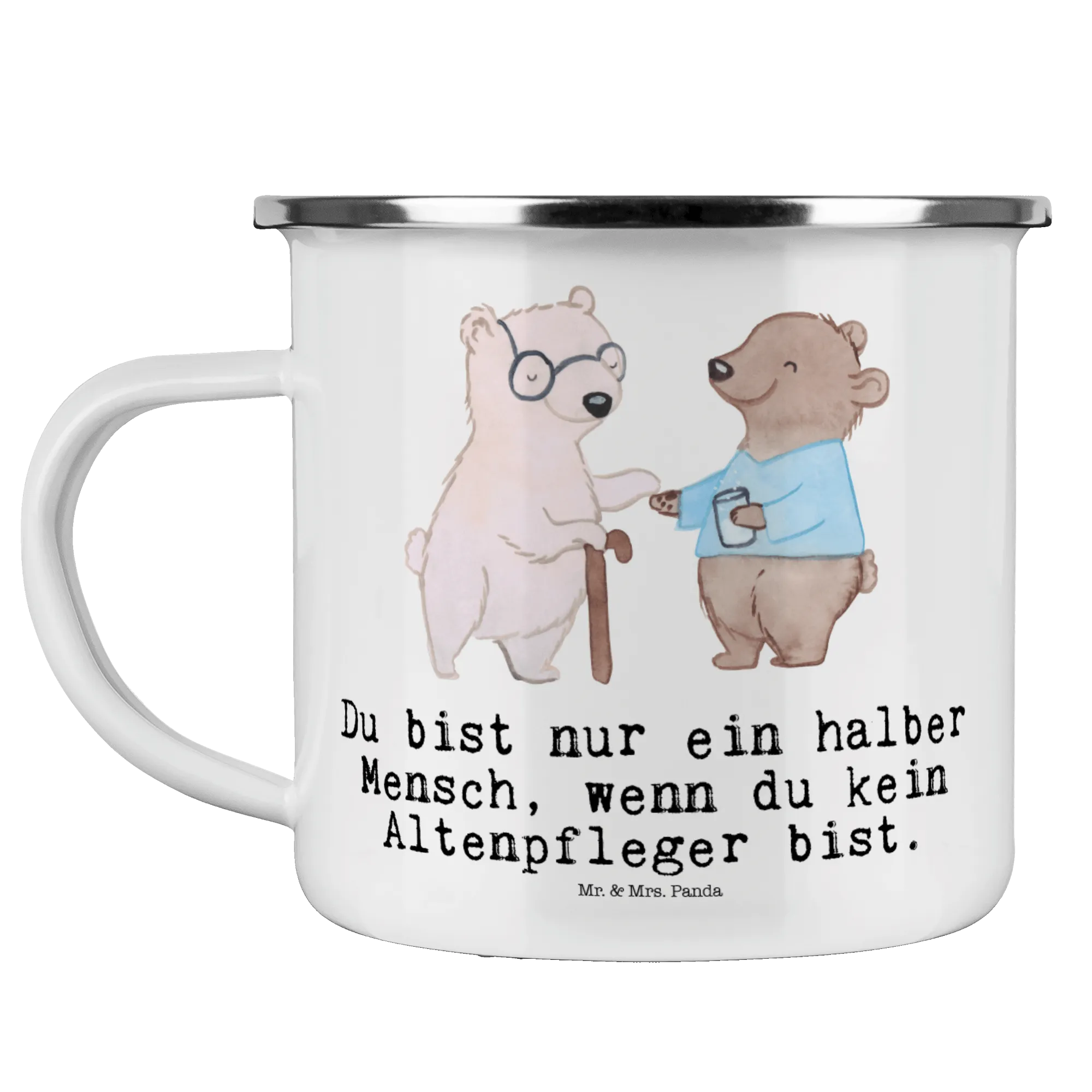 Die wunderschöne Camping Emaille Tasse "Altenpfleger mit Herz" von Mr. & Mrs. Panda ist das ideale Geschenk für alle Pflegekräfte, die ihre Arbeit mit viel Hingabe und Liebe ausüben. Egal ob als kleines Dankeschön zum Berufsabschied, zur Eröffnung eines Altenheims oder einfach um einem alten Kollegen eine Freude zu machen – diese Tasse bringt ein Lächeln auf die Gesichter der Altenpfleger und zeigt, wie wertvoll ihre Arbeit ist!