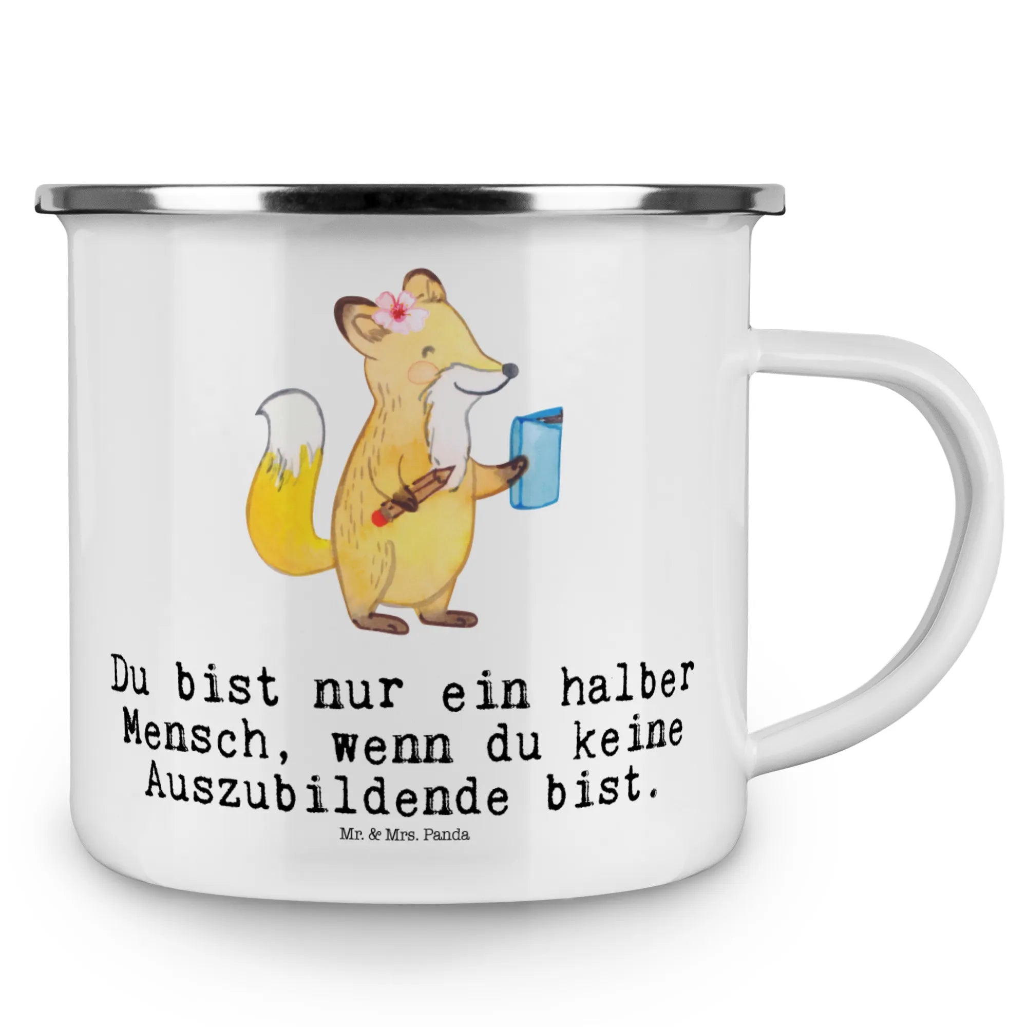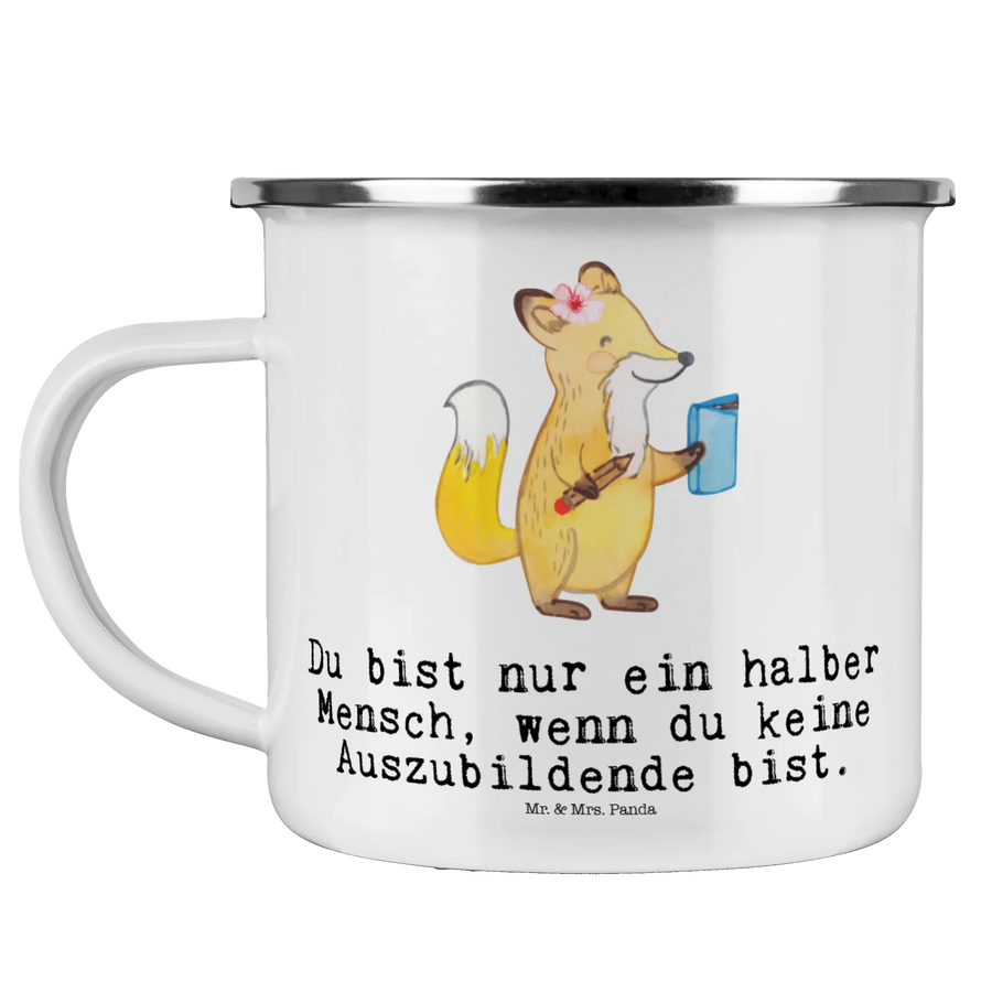 Die Camping Emaille Tasse "Auszubildende mit Herz" von Mr. & Mrs. Panda ist das perfekte Geschenk für alle, die eine Ausbildung beginnen oder gerade erfolgreich abgeschlossen haben! ❤️ Mit einem liebevollen Motiv und dem witzigen Spruch "Du bist nur ein halber Mensch, wenn du keine Auszubildende bist" bringt diese Tasse nicht nur Freude, sondern ist auch ein echter Glücksbringer zur Ausbildung.