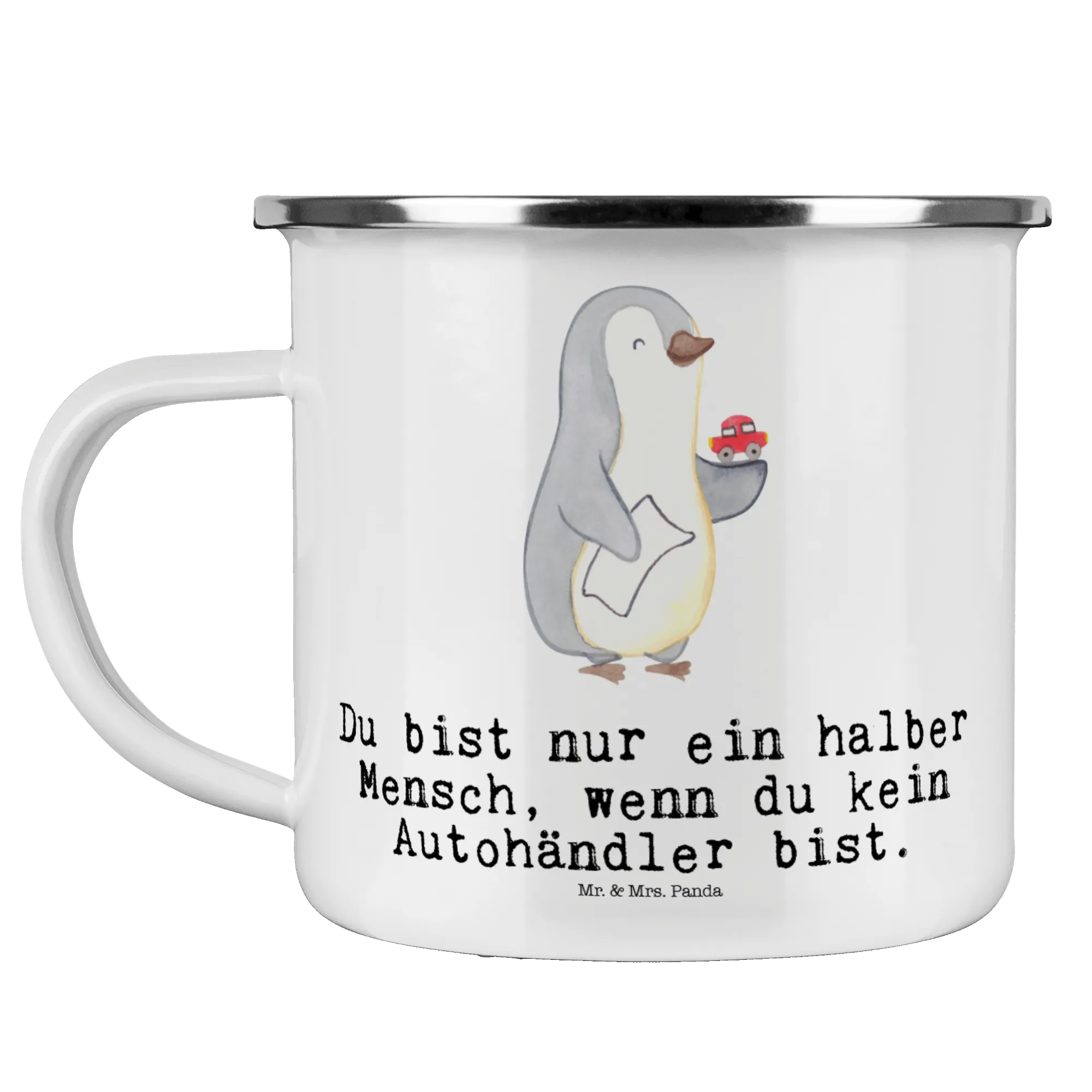 Die wunderschöne Camping Emaille Tasse "Autohändler mit Herz" von Mr. & Mrs. Panda ist das perfekte Geschenk für alle, die im Automobilhandel tätig sind oder einfach einen Autohändler in ihrem Leben haben, den sie schätzen. Diese beständige und charmante Tasse eignet sich nicht nur für das Camping, sondern auch für jede Outdoor-Aktivität, bei der eine verlässliche und stilvolle Trinkmöglichkeit gefragt ist. Mit einem Fassungsvermögen von 300 ml und einem tollen Motiv, das einen Pinguin zeigt, der mit einem Spielzeugauto in der Hand lässig daherkommt, hast du hier ein Geschenk, das Herzen höher schlagen lässt.